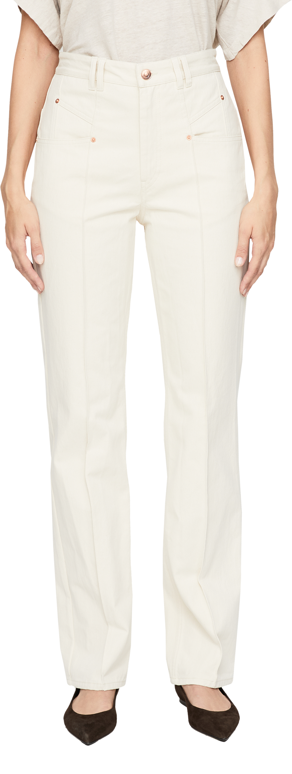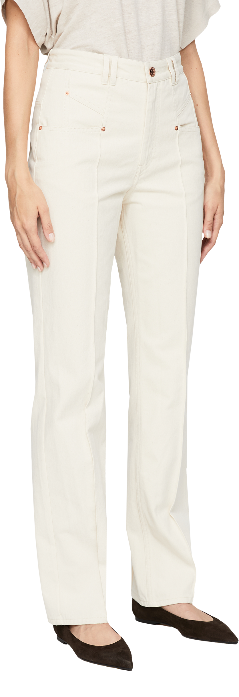 Die Stoffhose 'Lirokae' in Crème von Isabel Marant wurde aus Baumwolle gefertigt und besticht durch die schmale Silhouette. Der angesetzte Bund mit Schlaufe und Doppelschlaufe, die gravierte Knopfleiste und der verdeckte Reißverschluss vollenden dieses edle Modell.