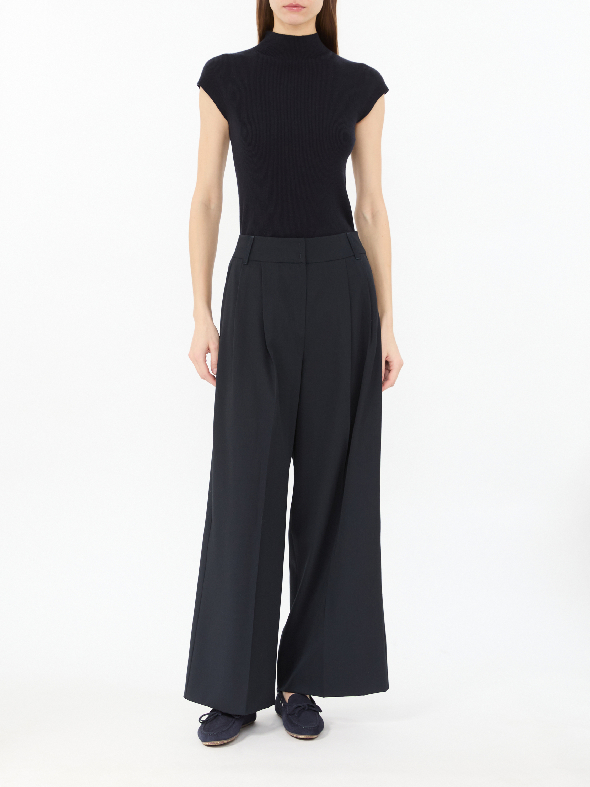 Die Stoffhose 'Nichols' in Blau von 'S Max Mara wurde aus Schurwolle gefertigt und besticht durch das weite Bein. Die Bügelfalten und die hohe Leibhöhe zeichnen dieses zeitlose Design aus. Die angenehme Haptik vollenden dieses Modell.