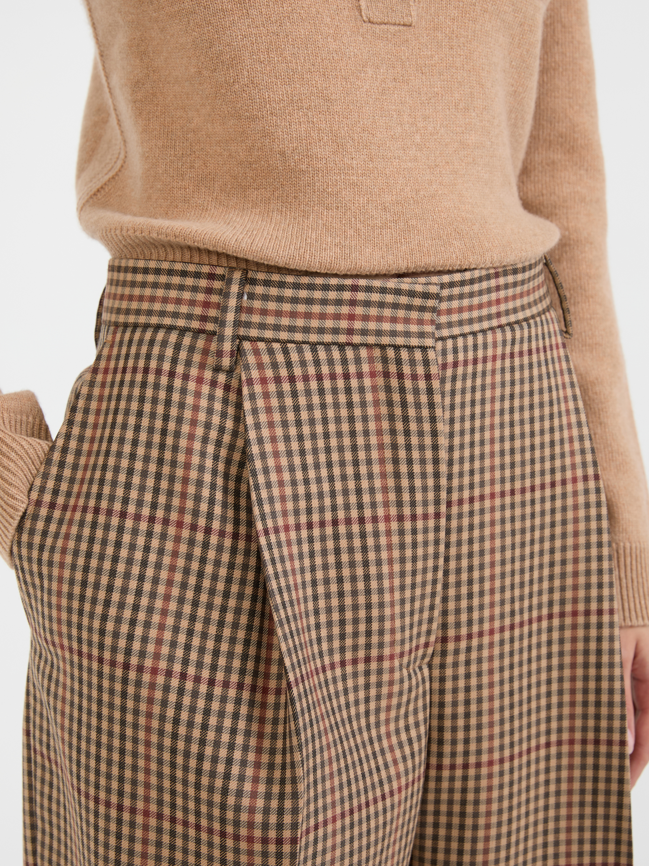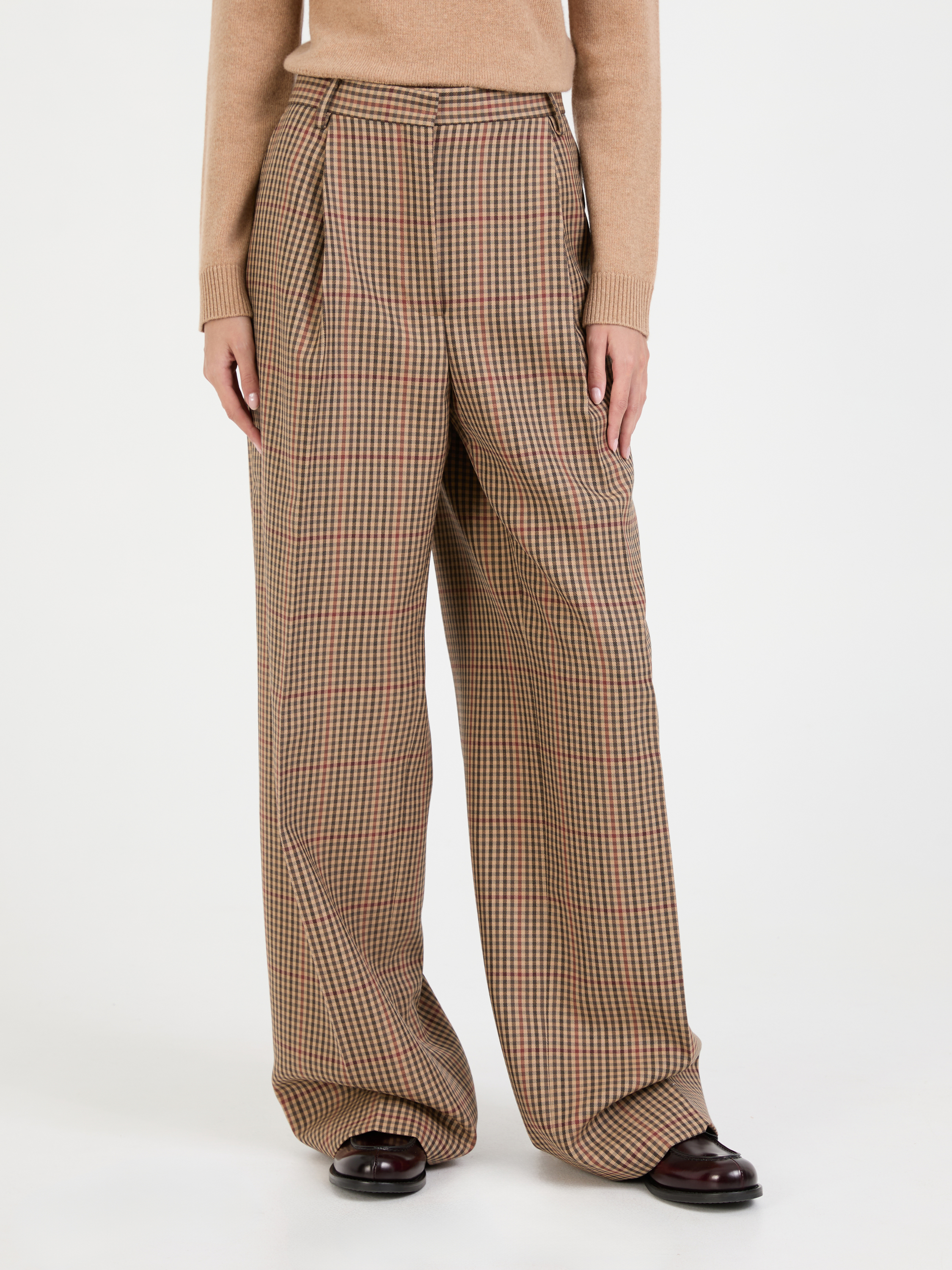 Die Stoffhose 'Porter' in Braun von Dries van Noten wurde aus hochwertiger Wolle gefertigt und besticht durch das klassische Karomuster. Das Modell wird durch die hohe Leibhöhe und den weiten Schnitt perfektioniert, während Bundfalten den Look stilvoll abrunden.