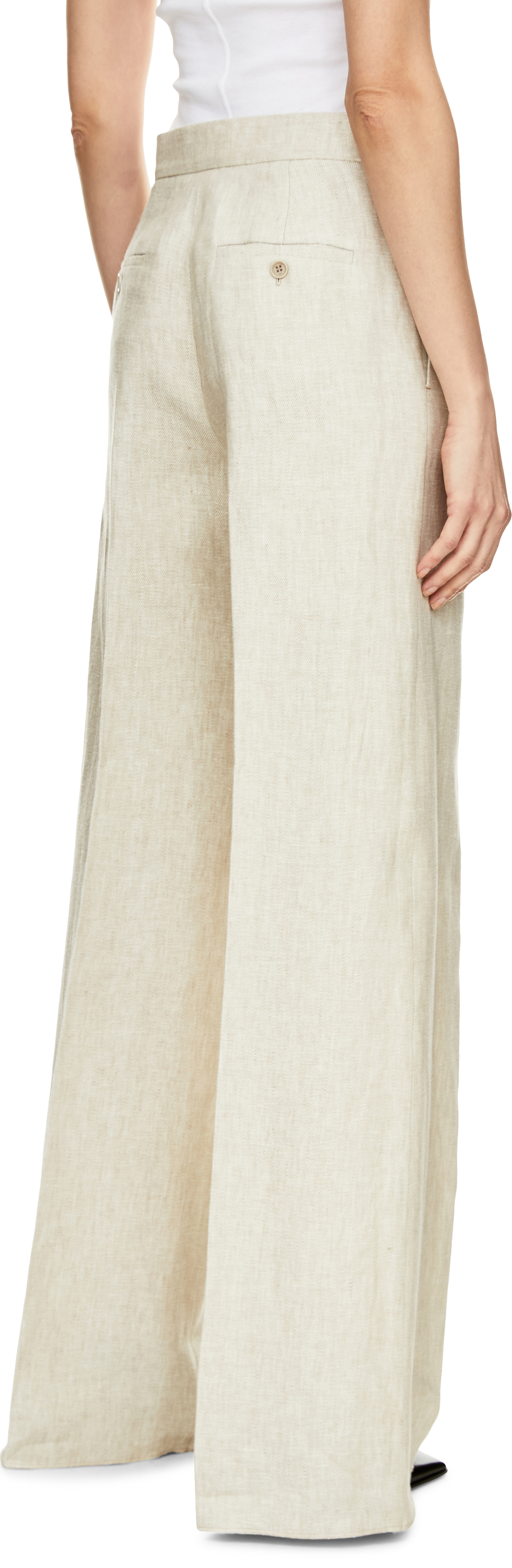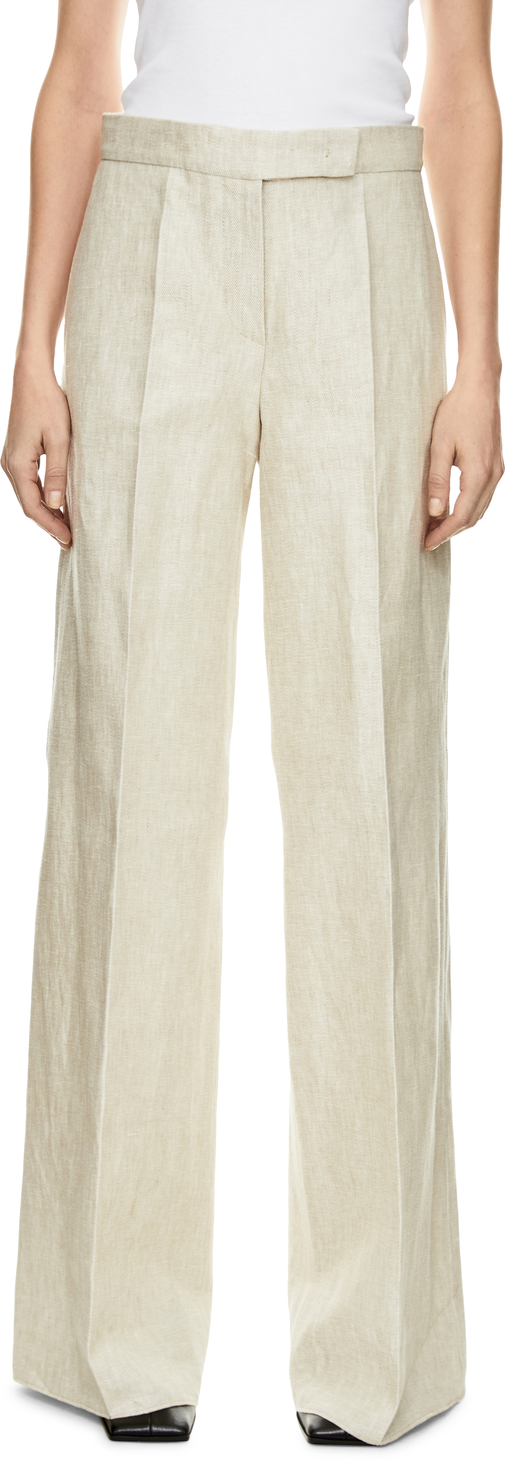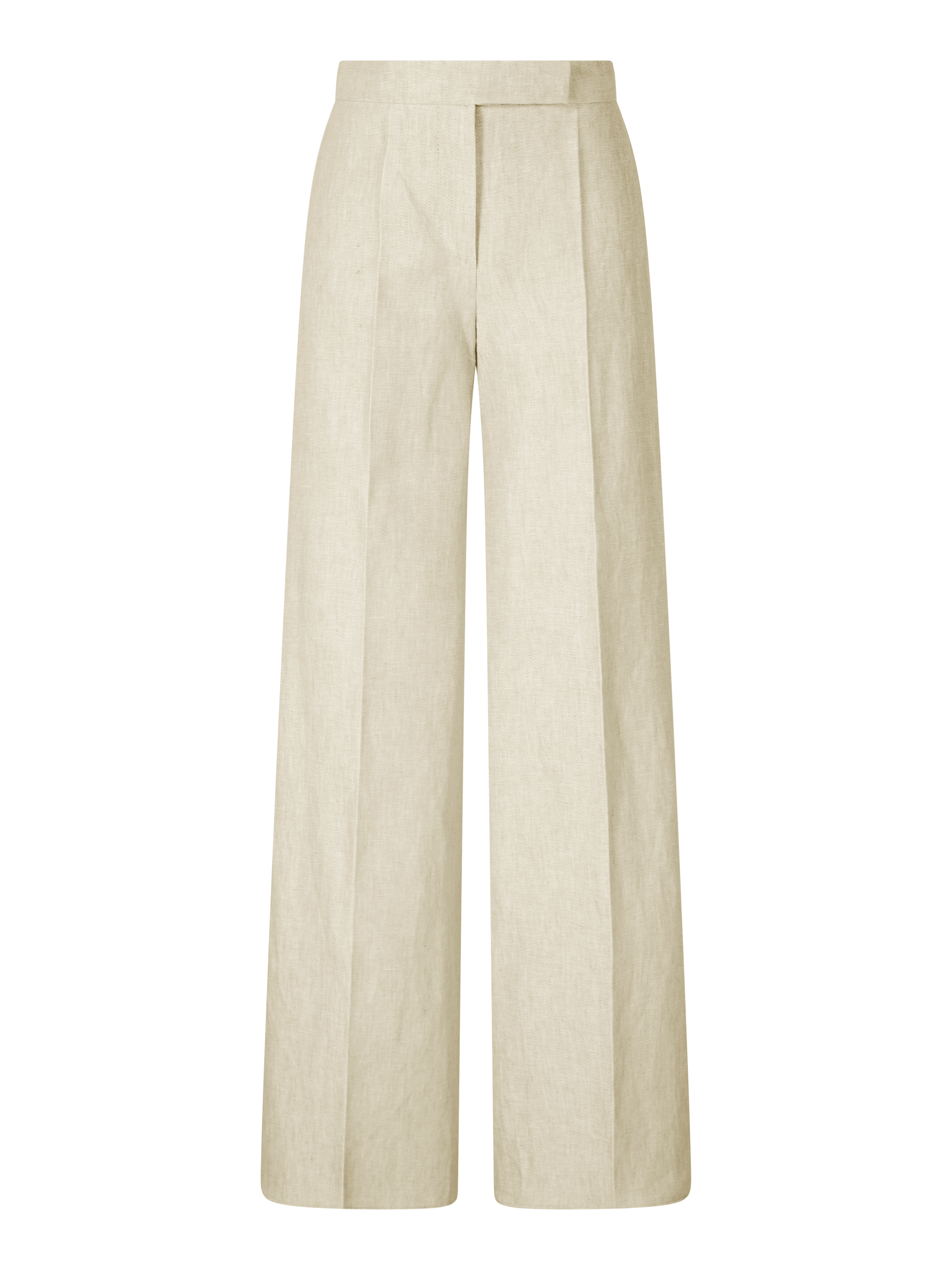 Die Hose 'Ginnico' in Beige von Max Mara wurde aus hochwertigem Leinen gefertigt und besticht durch die weite Passform. Vordere Bundfalten akzentuieren die fließende Silhouette und verleihen dem Modell Eleganz und Bewegung. Die rückseitigen Paspeltaschen und der verdeckte Verschluss runden das edle Design ab und sorgen für einen perfekten Sitz.
