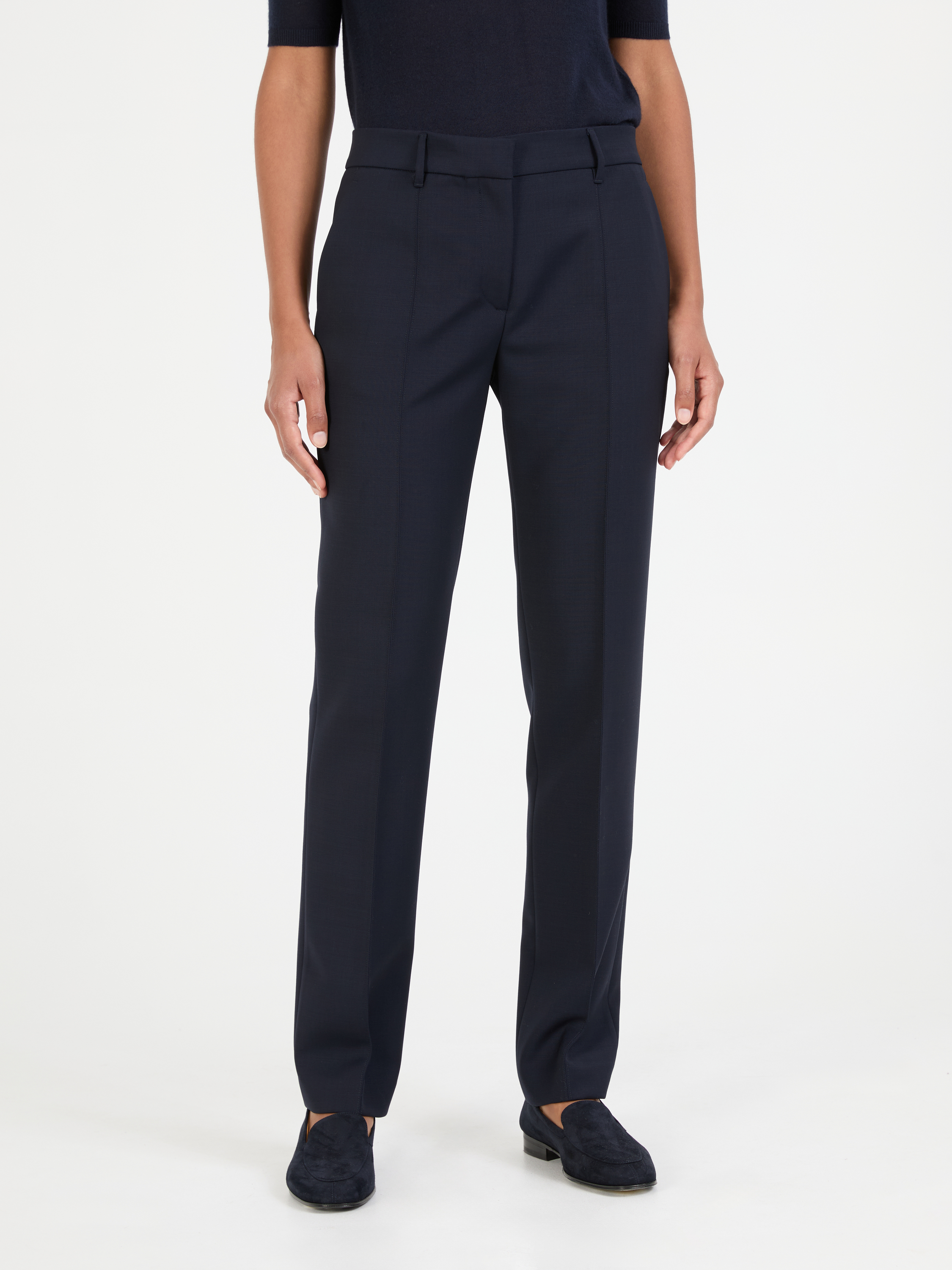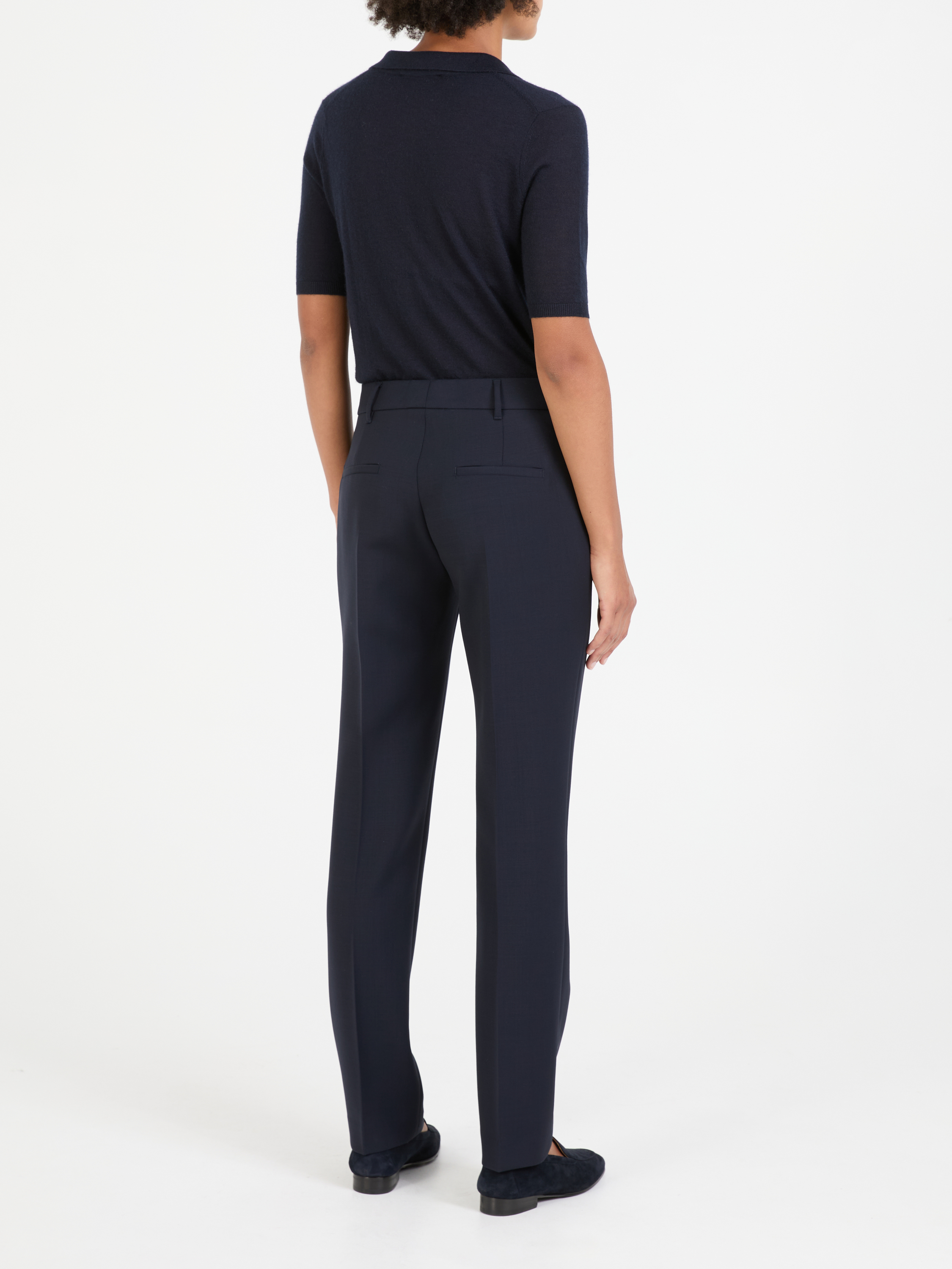 Die klassische Hose 'Francisco' in Marineblau von Gabriela Hearst wurde aus reiner Wolle gefertigt. Die schmale Silhouette, die rückseitigen Paspeltaschen und die liebevoll gesteppten Biesennähte runden das Design stilvoll ab.