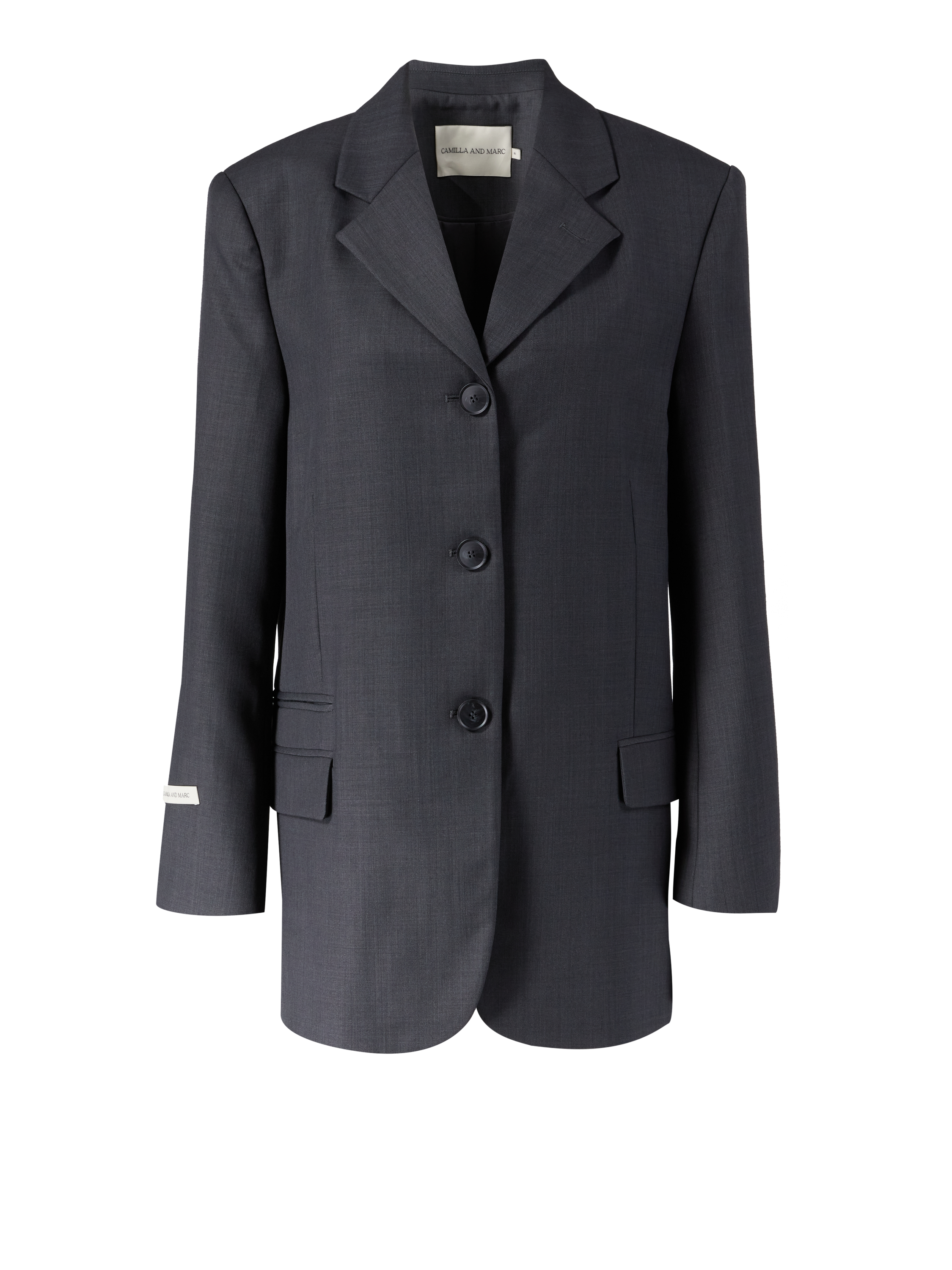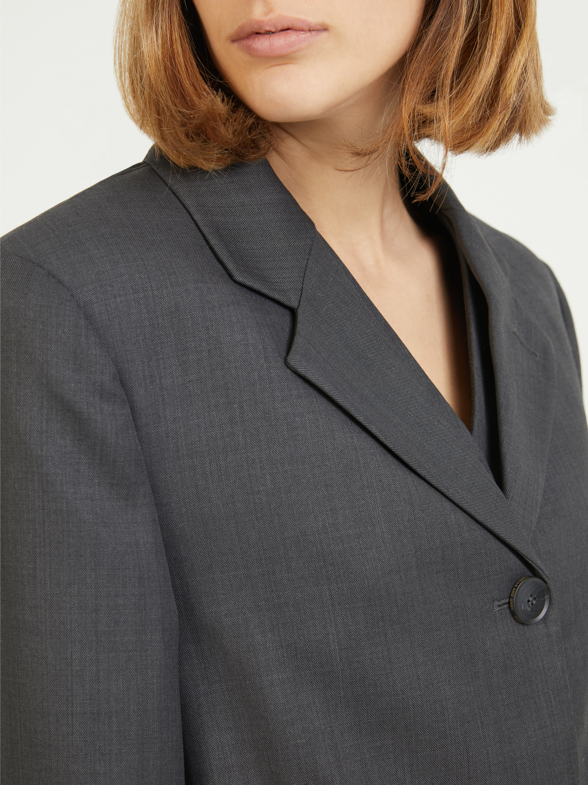 Der Blazer 'Atlanta' in Anthrazit von CAMILLA AND MARC wurde aus einem hochwertigen Materialgemisch gefertigt und besticht durch ein strukturiertes Kreuzschraffur-Gewebe. Die markante Schulterpartie, die einreihige Knopfleiste und der Revers zeichnen dieses Modell aus.