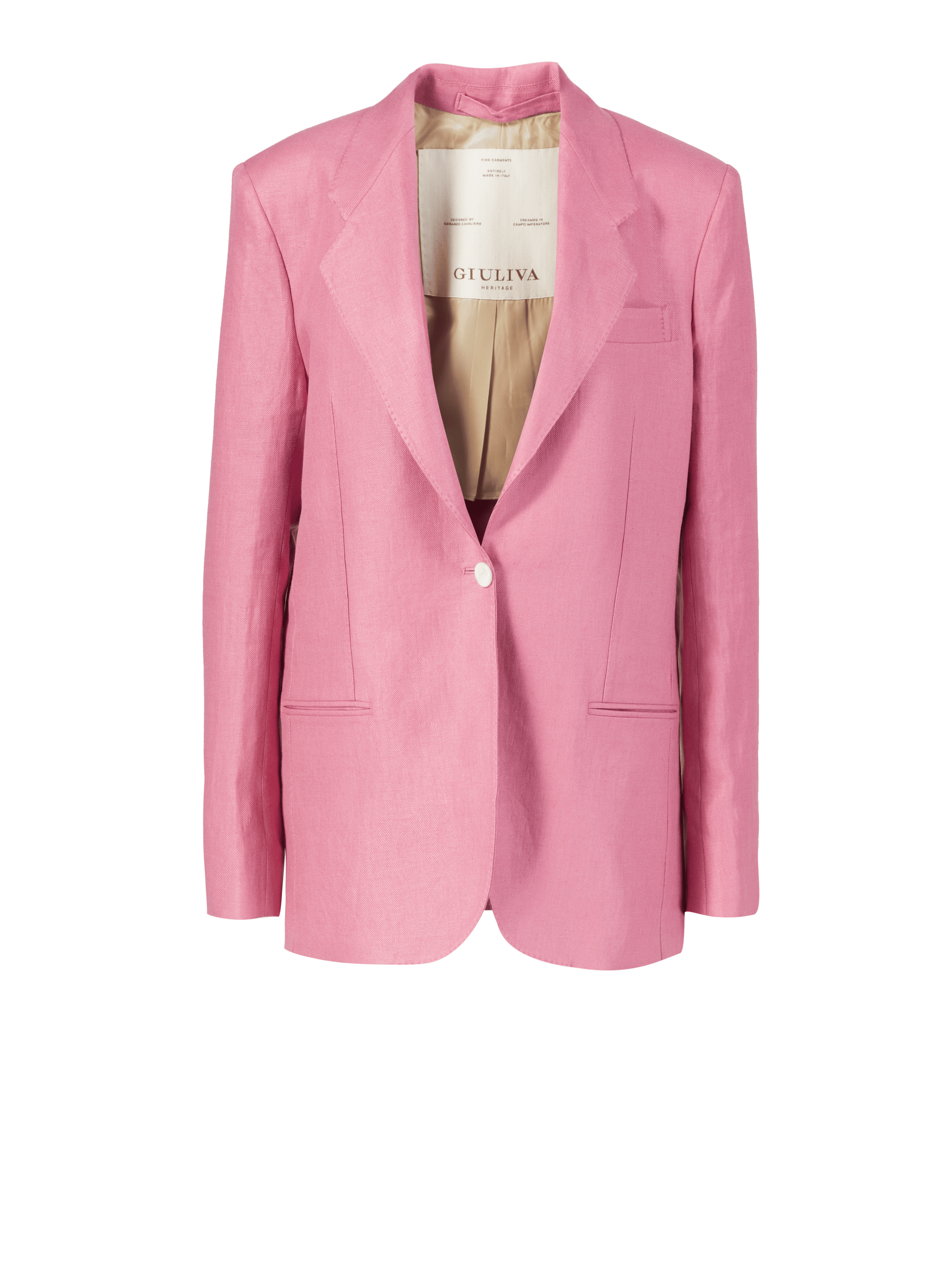 Der Blazer 'Angiolina' in Altrosa von GIULIVA HERITAGE wurde aus reinem Leinen gefertigt und besticht durch eine lockere Passform. Der Reverskragen mit Schneiderhandkante und die Paspeltaschen vollenden dieses Modell.
