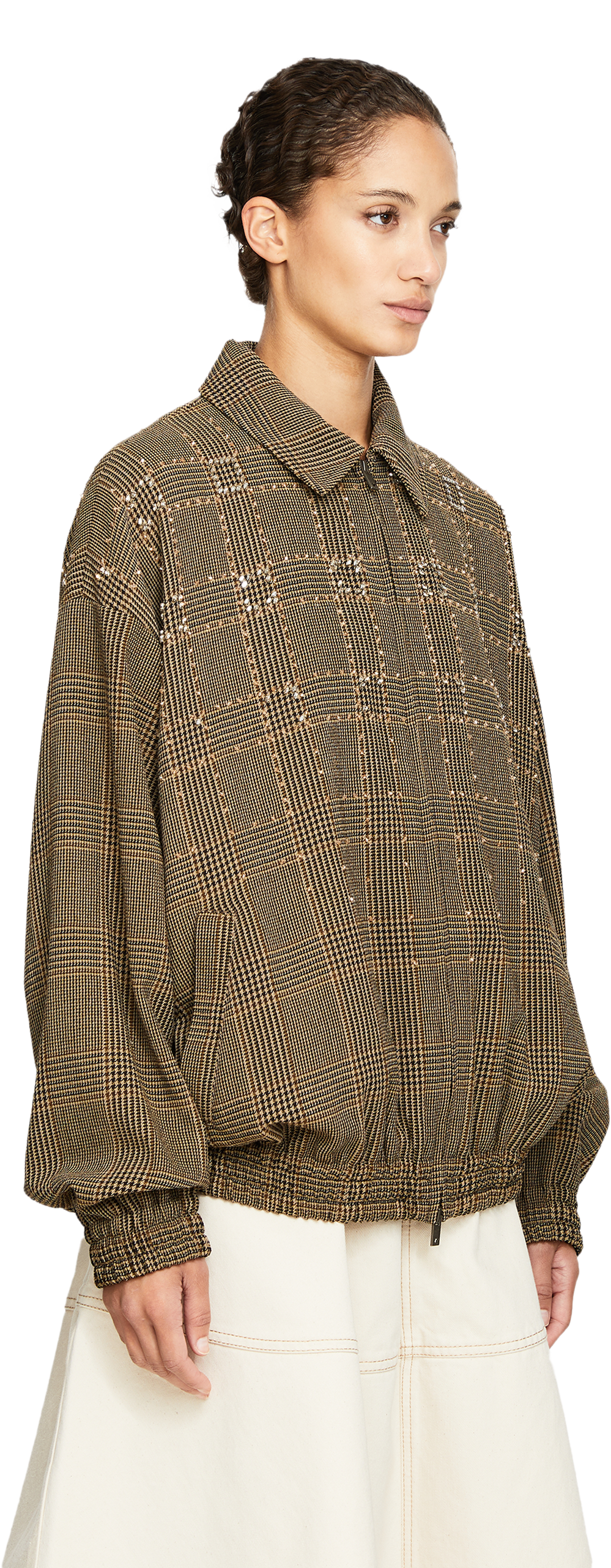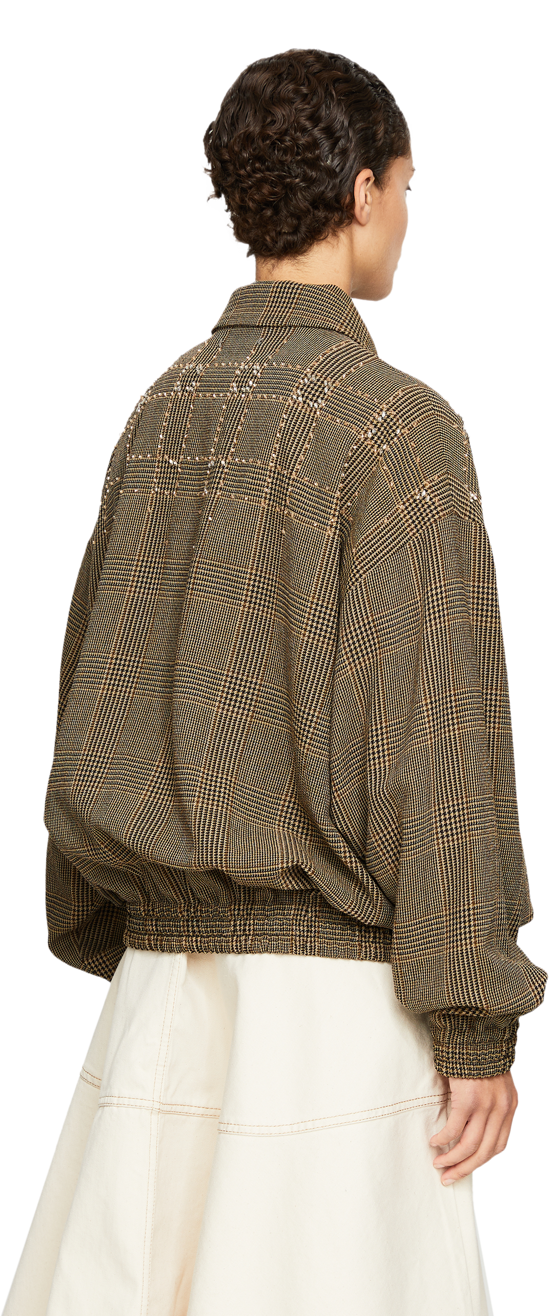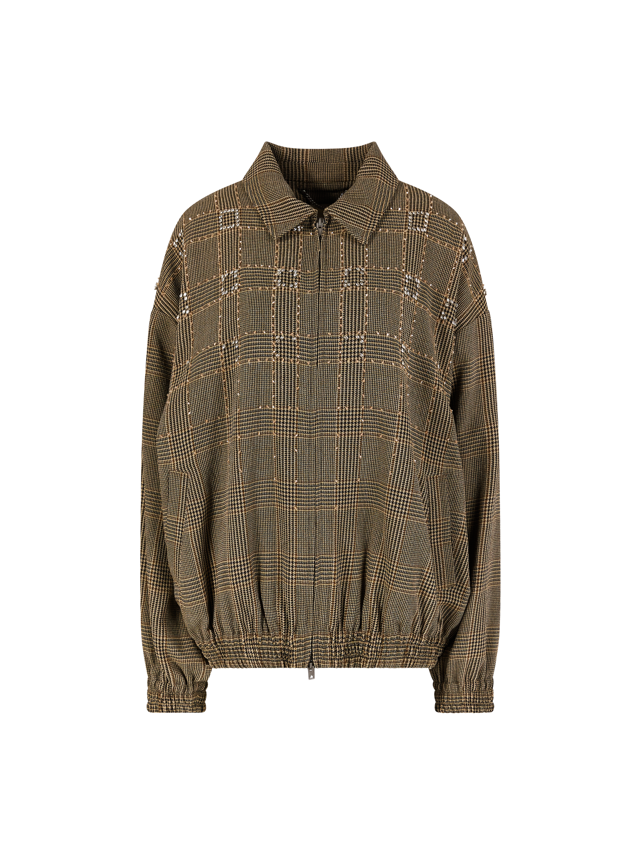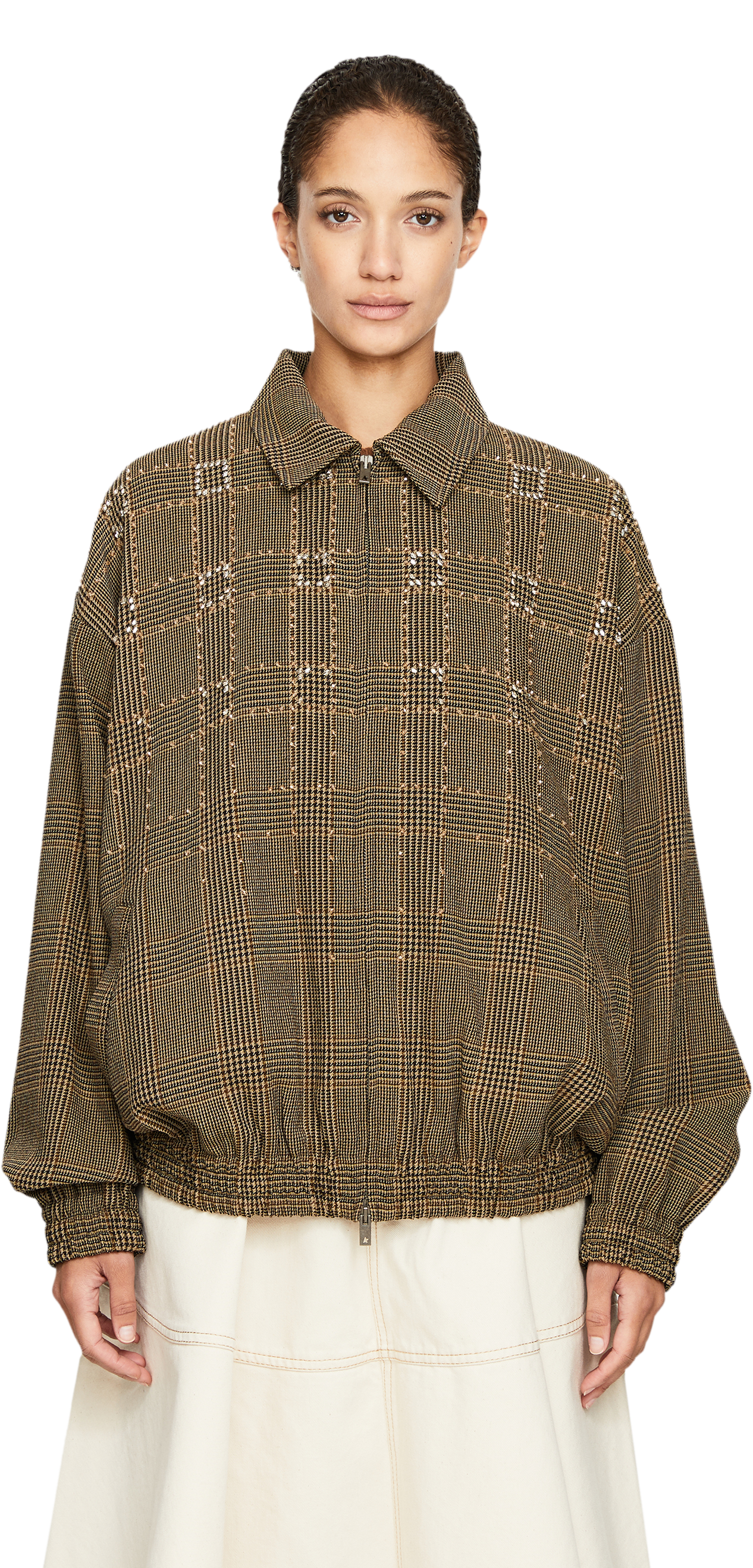 Diese Jacke in Braun von Golden Goose wurde aus hochwertiger Schurwolle gefertigt und besticht durch das klassische Karomuster in Kombination mit funkelnden Strasstein-Akzenten. Der Oversized Fit sowie die elastischen Säume mit Raffungen unterstreichen den modernen Charakter des Modells.