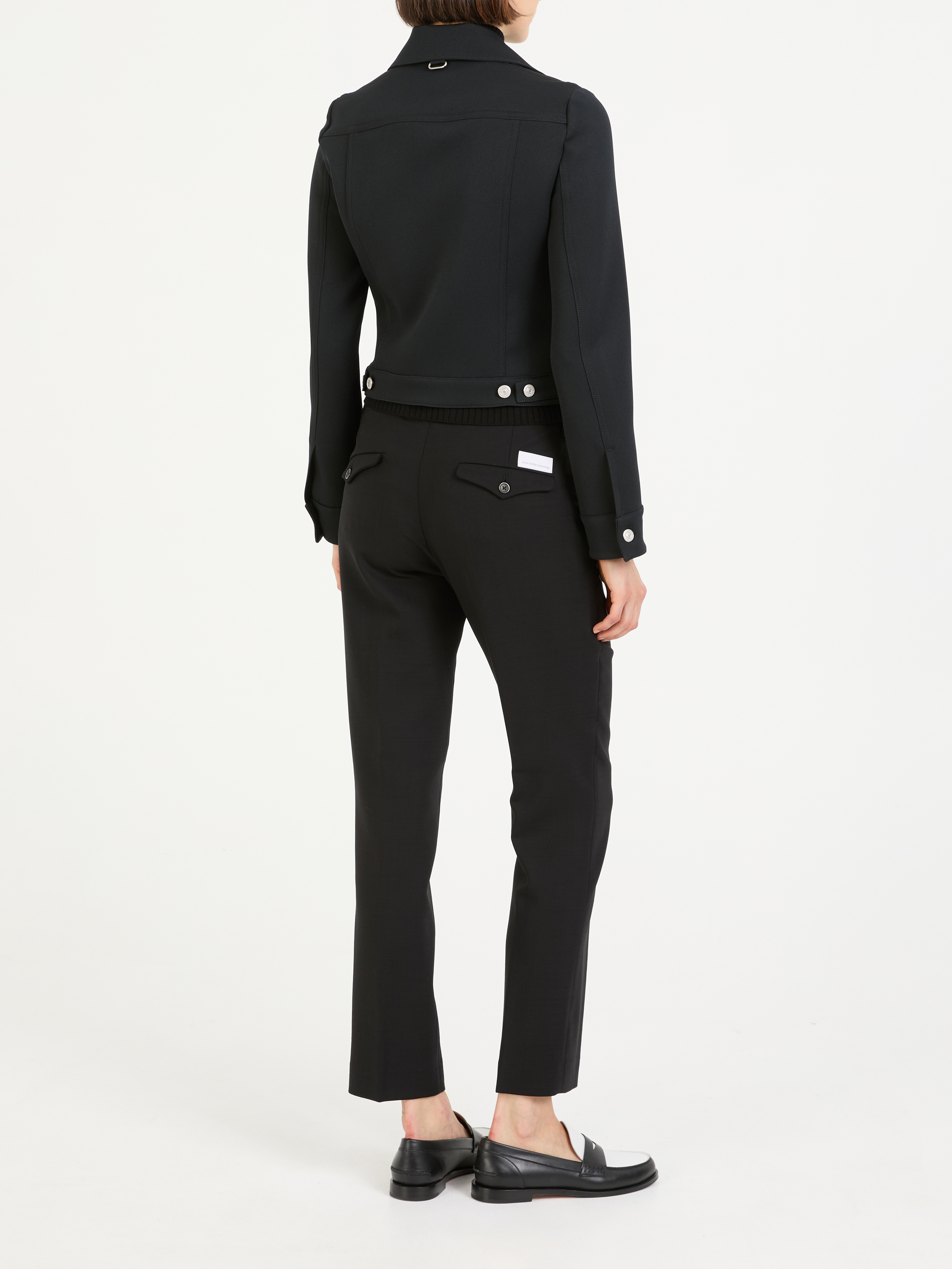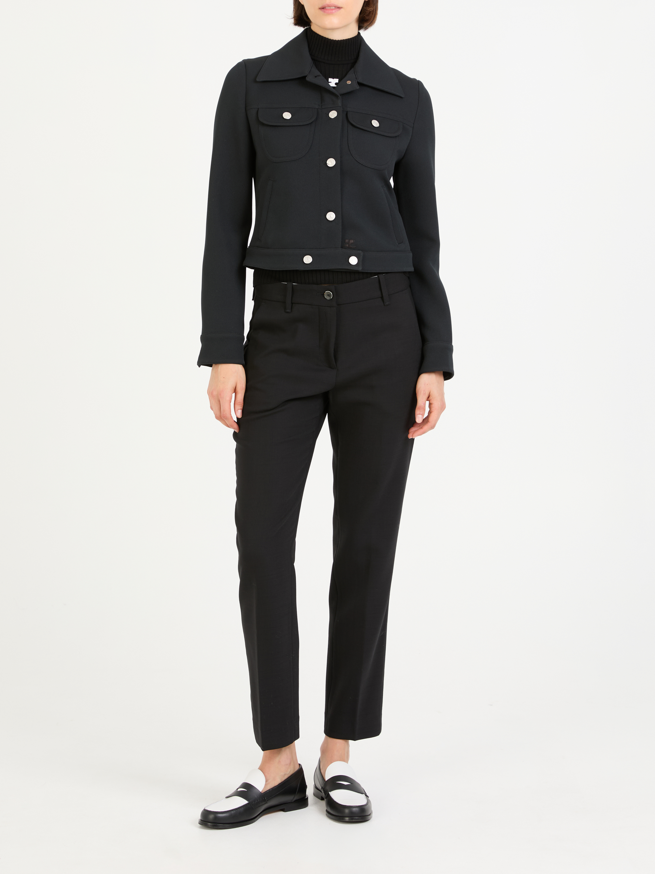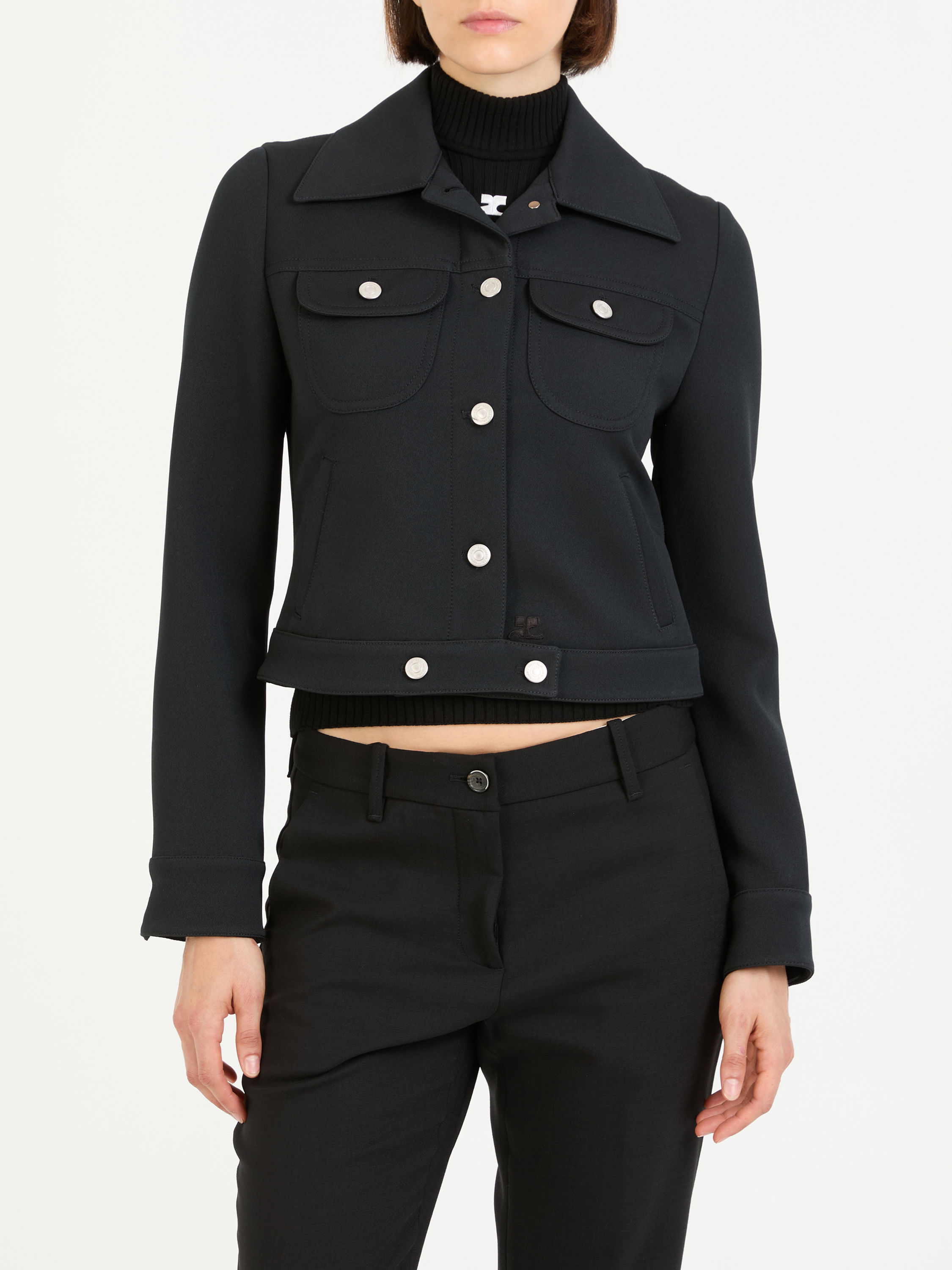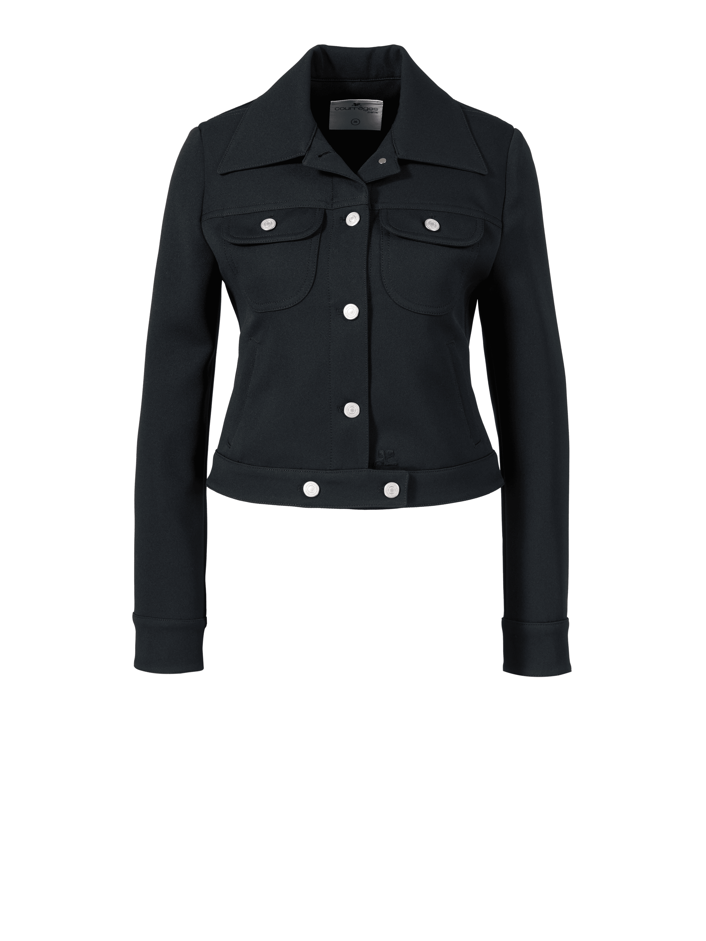 Diese Trucker-Jacke in Schwarz von courrèges wurde aus Twill gefertigt und besticht durch das klassische Design. Zwei abgerundete Brusttaschen und zwei paspelierte Seitentaschen zeichnen dieses Modell aus.