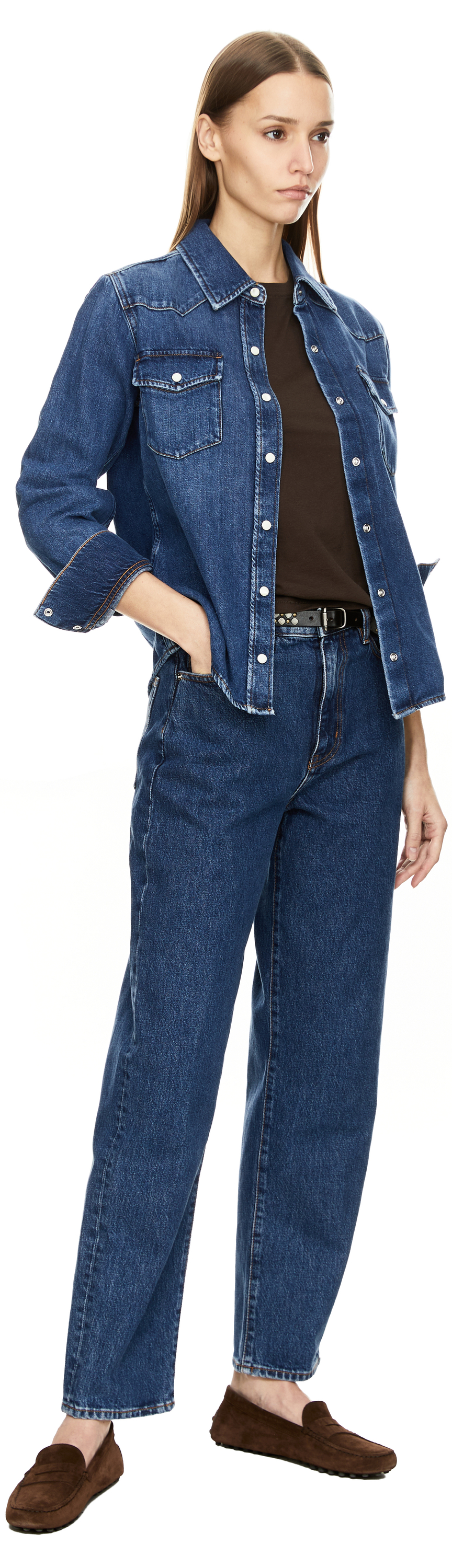 Das Model ist 175 cm groß und trägt Größe 27.