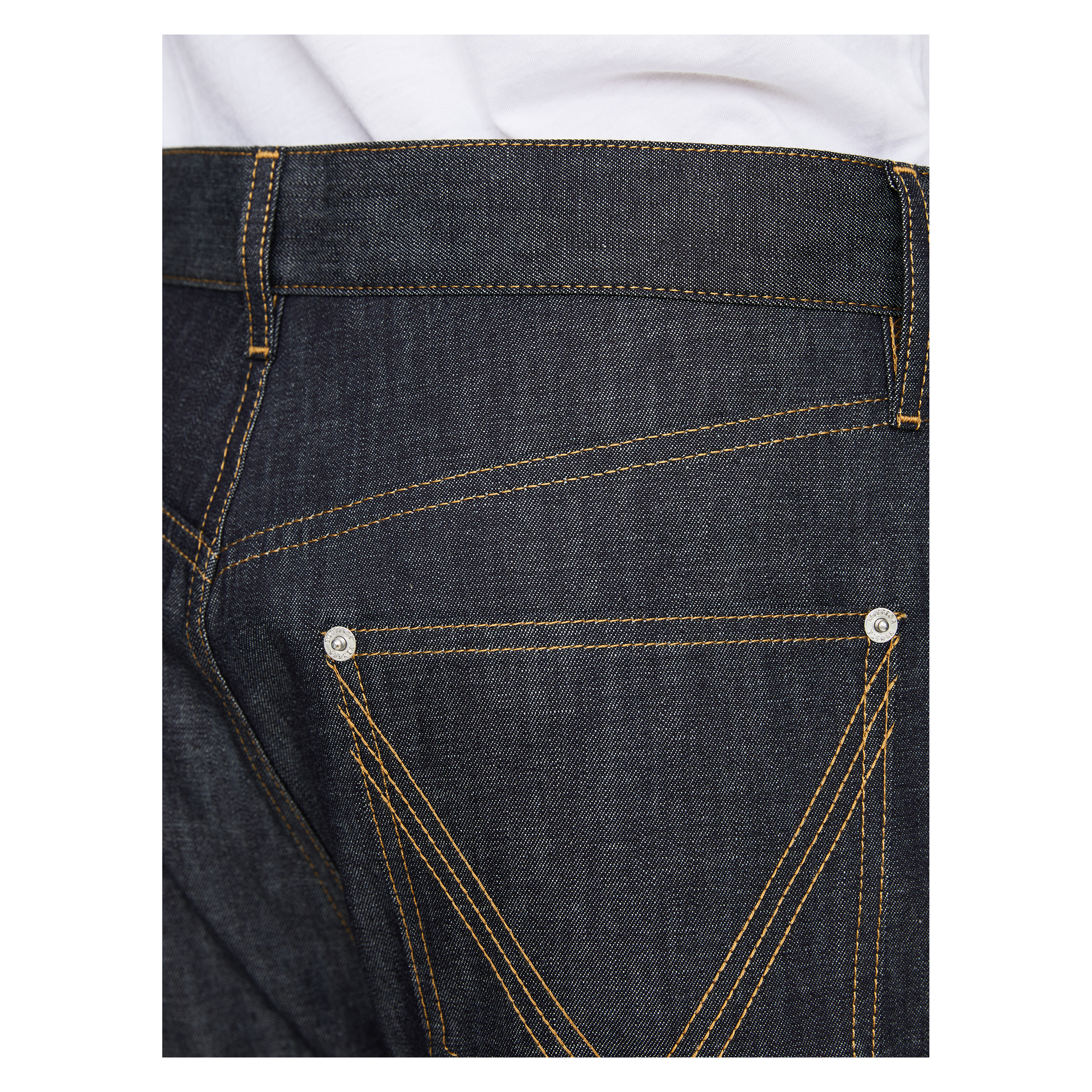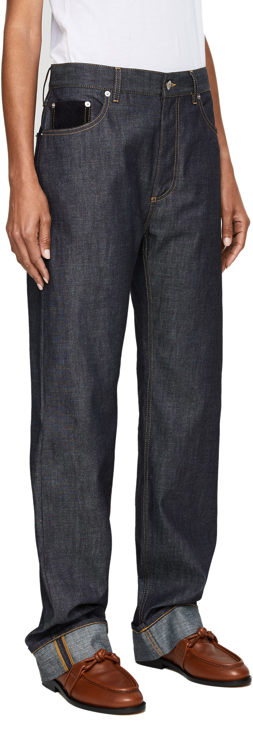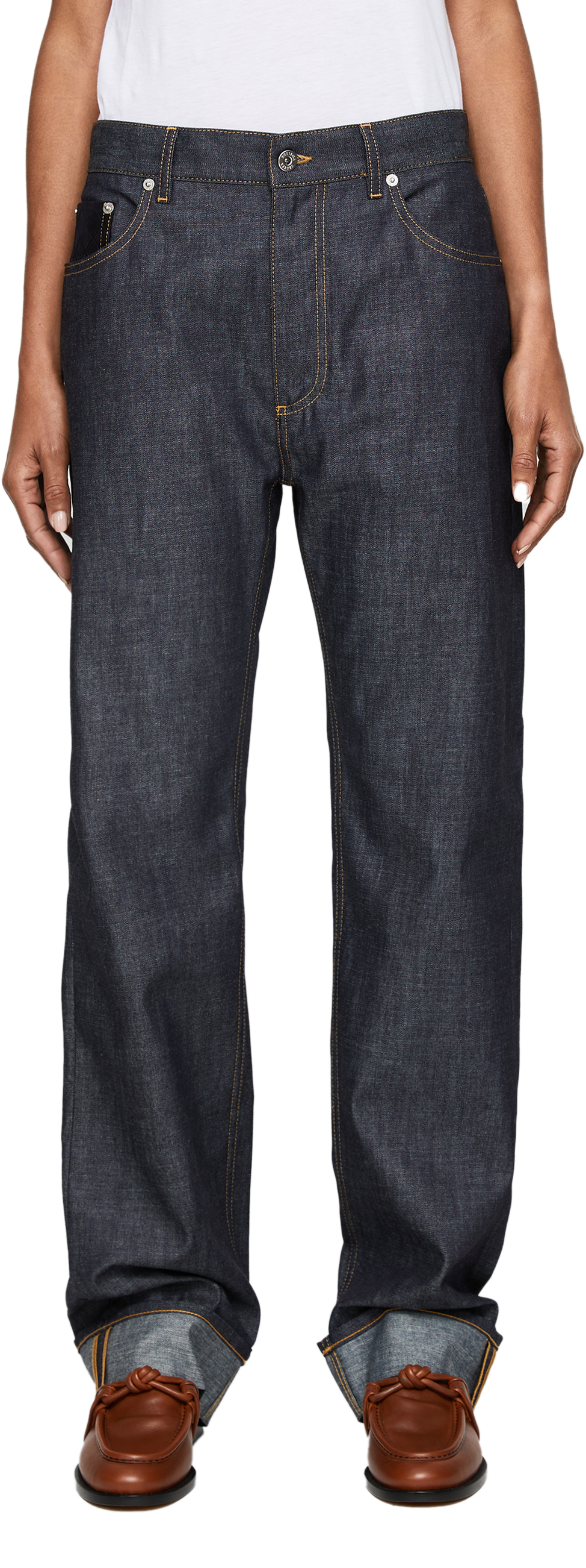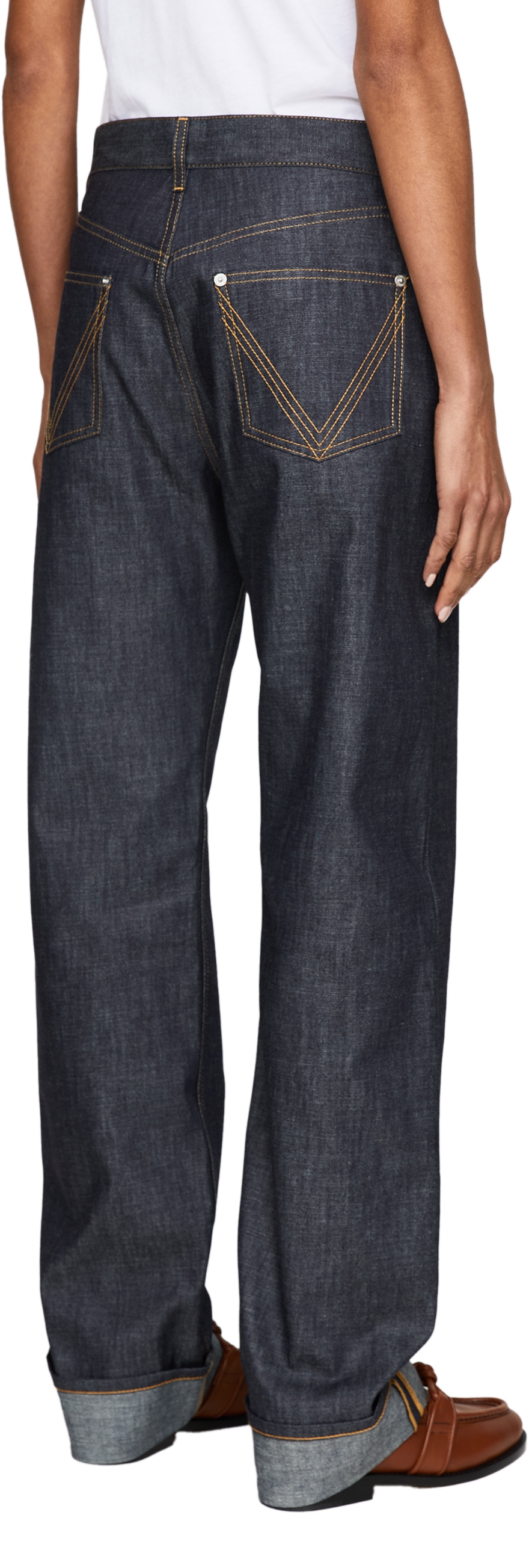 Diese Jeans in Dunkelblau von Bottega Veneta wurde aus reiner Baumwolle gefertigt und besticht durch die gerade Passform. Der umgeschlagene Saum und das vorderseitige Lederpatch vollenden dieses moderne Modell.