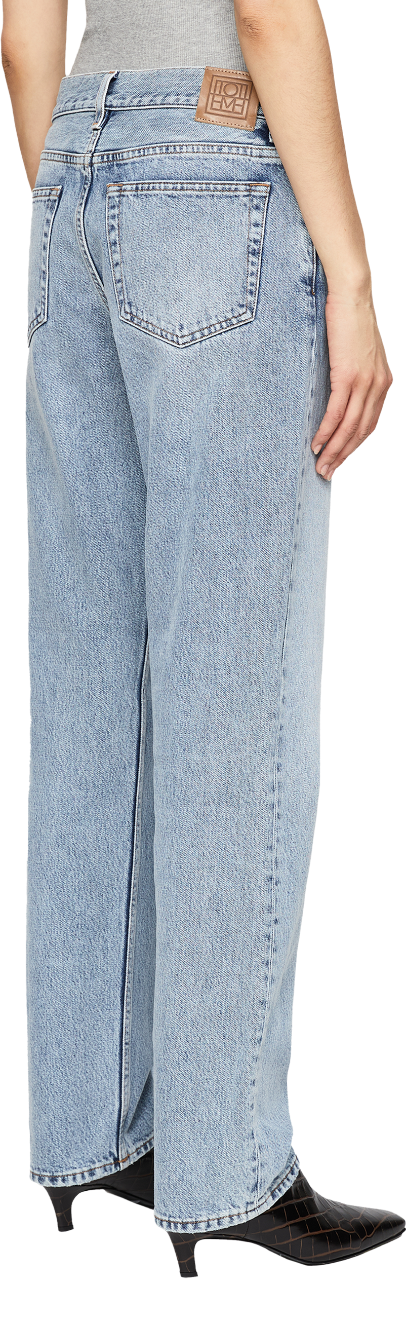 Diese Jeans in Hellblau von TOTEME wurde aus hochwertiger Bio-Baumwolle gefertigt und besticht durch die fließende Silhouette. Die kontrastierenden Nähte in Kombination mit dem rückseitigen Logo-Patch machen dieses Design zu einem stilvollen Hingucker.
