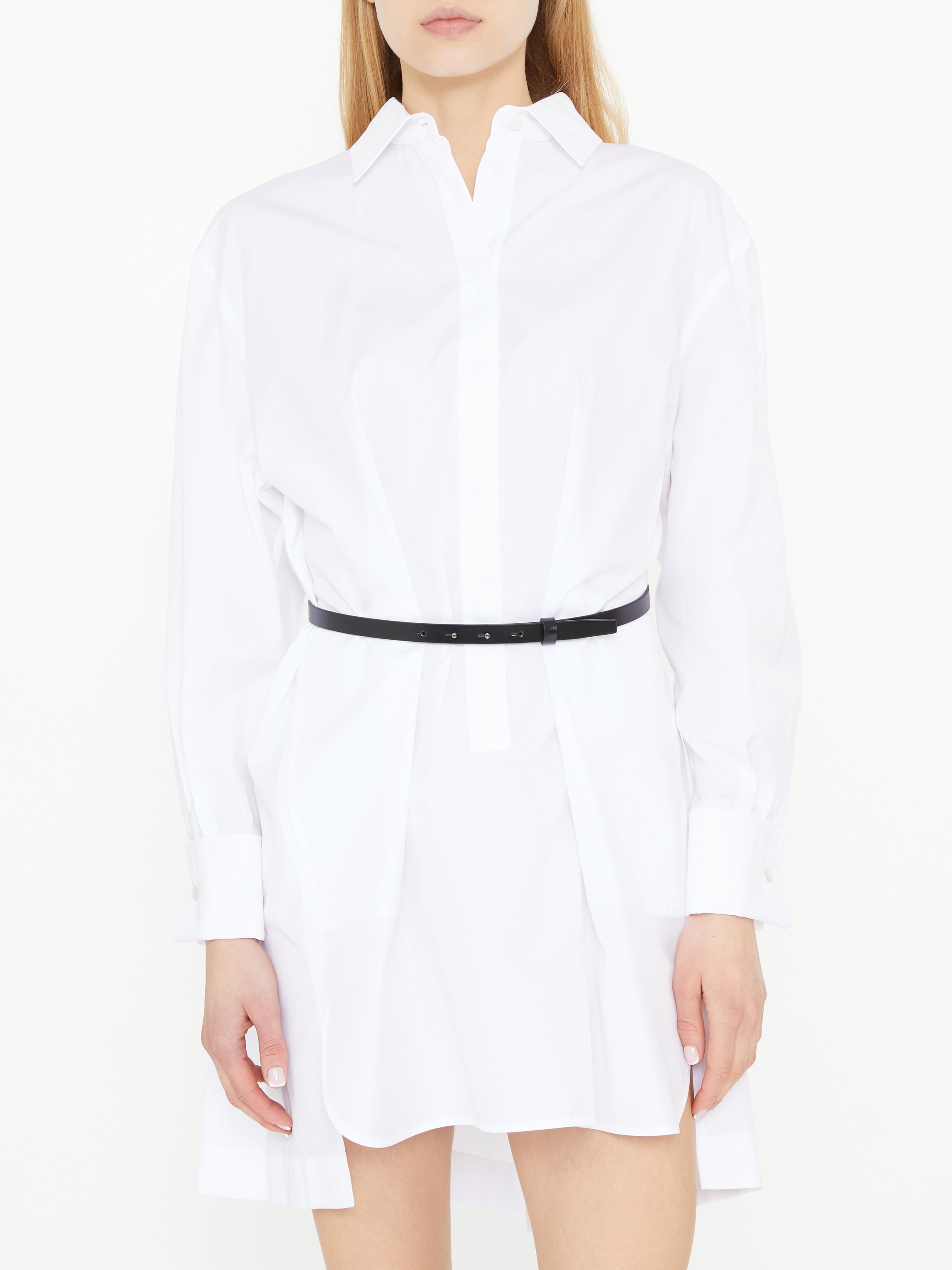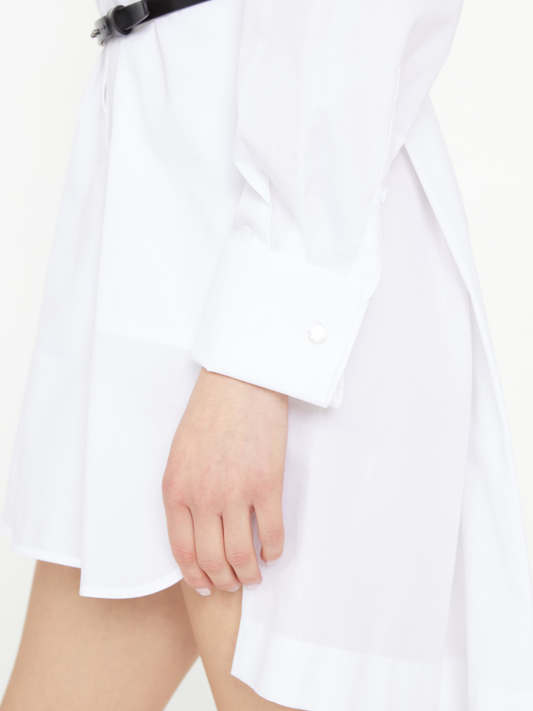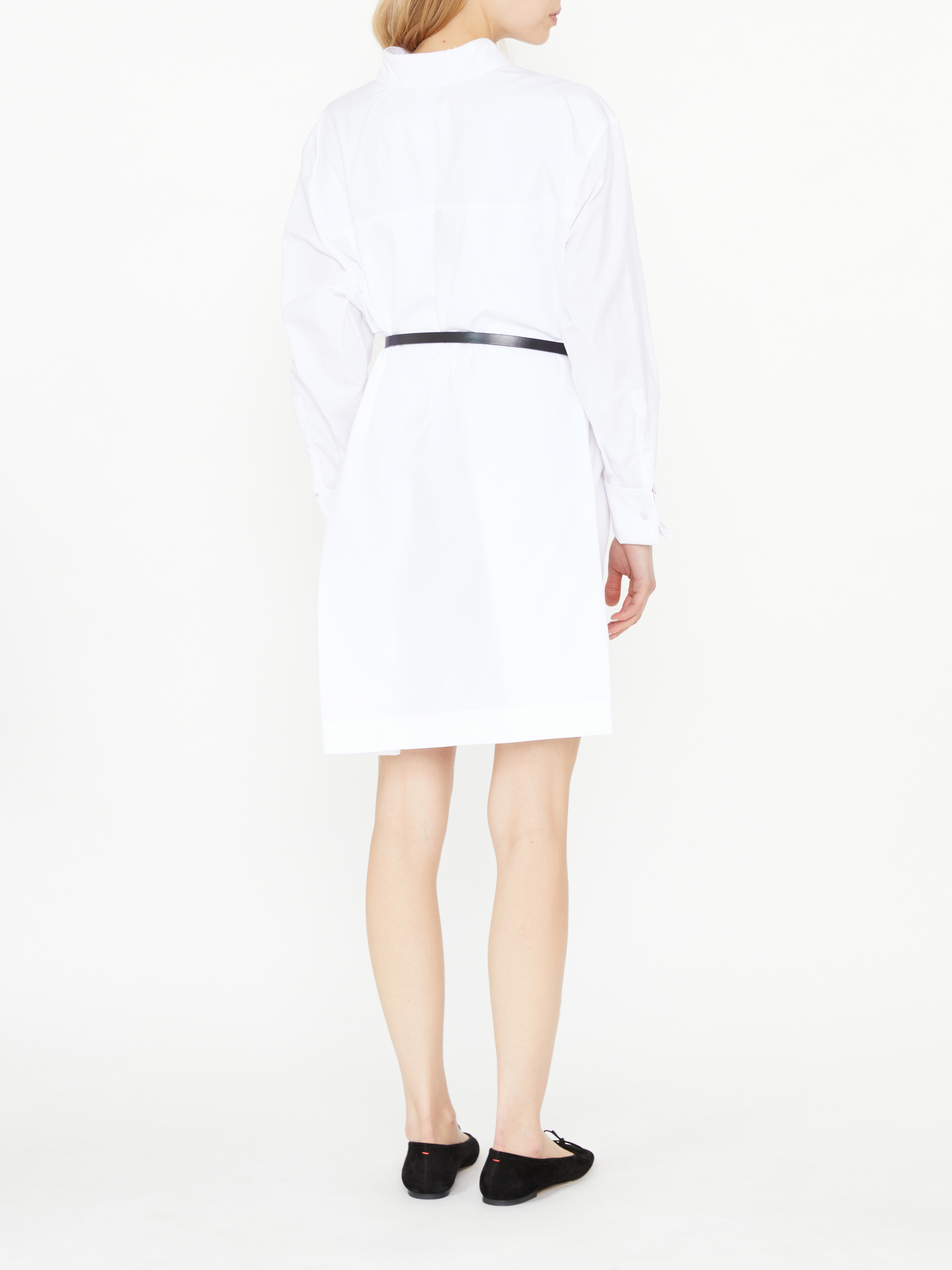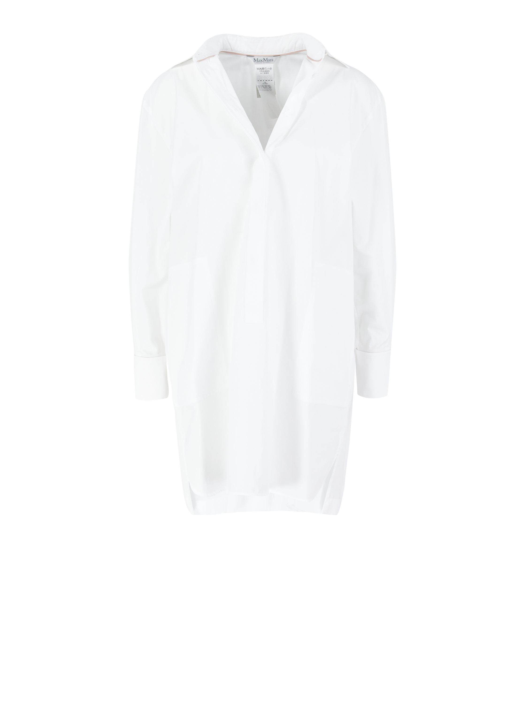 Das Kleid 'Alcade' in Weiß von Max Mara wurde aus hochwertiger Baumwolle gefertigt und besticht durch die verdeckte Knopfleiste. Die abgerundeten Seitenschlitze, der klassische Kentkragen und die lässige Passform zeichnen dieses Modell aus.