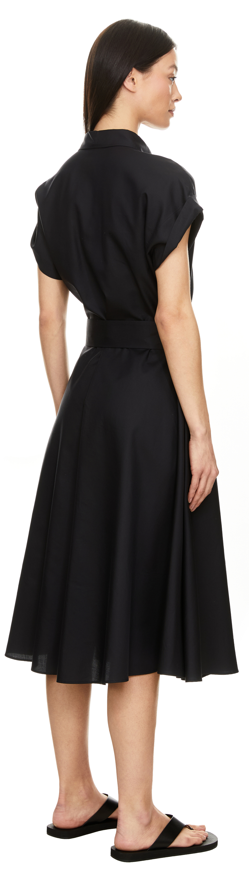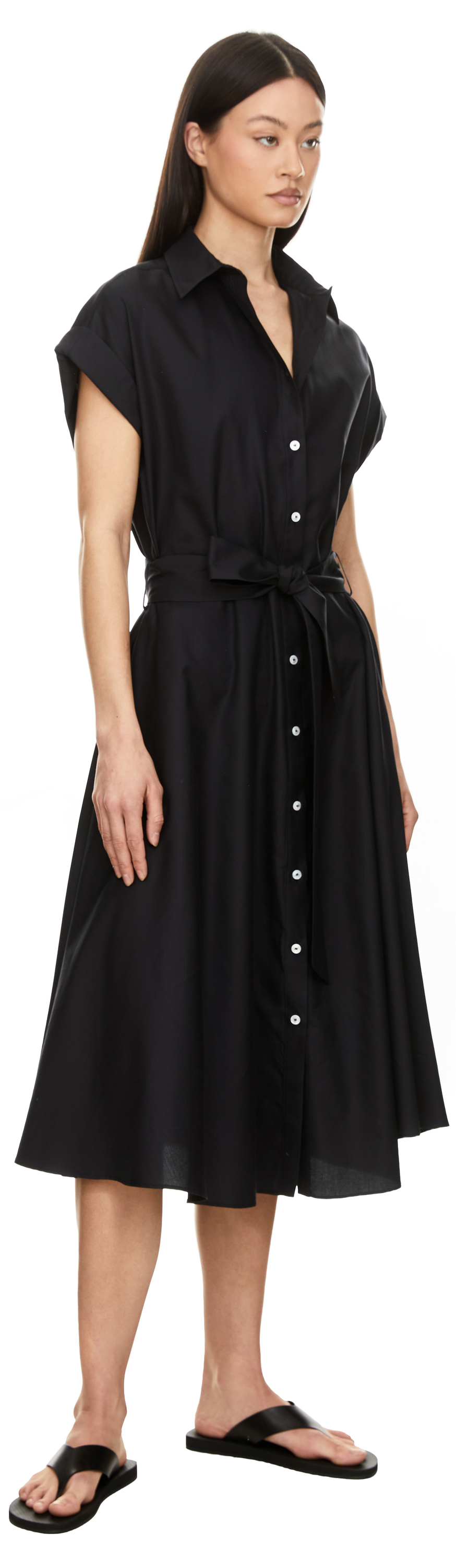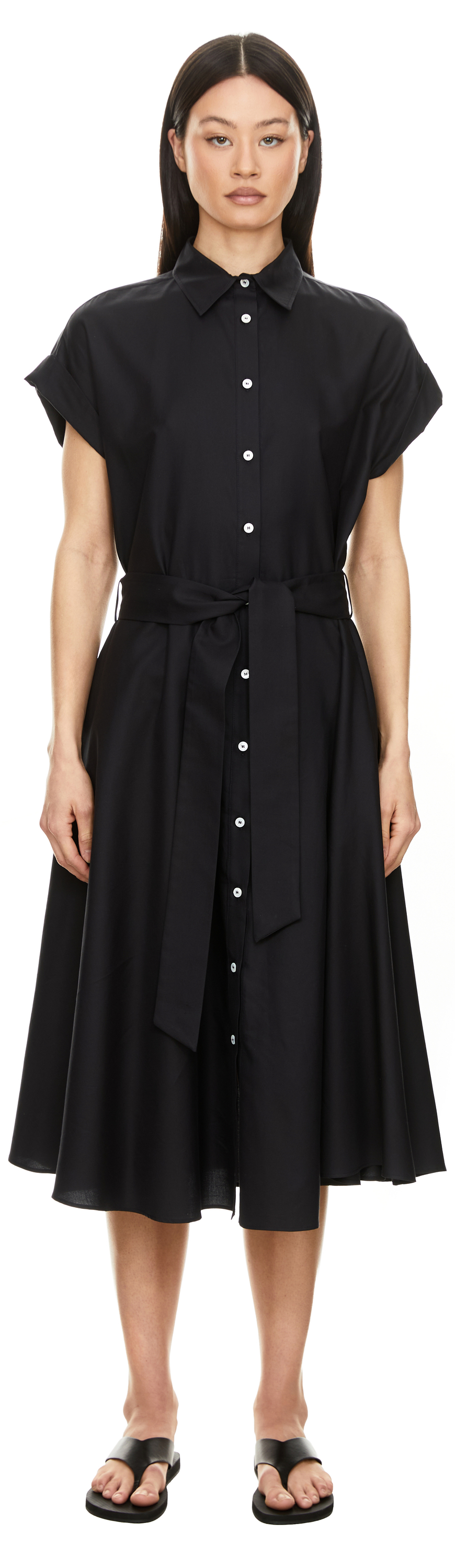 Dieses Kleid in Schwarz von Kiton wurde aus einer weichen Baumwoll-Leinenmischung gefertigt und besticht durch die trapezförmige Silhouette. Die kontrastierende Knopfleiste mit Logoprägung sowie der abnehmbare Bindegürtel an der Taille setzen elegante Akzente und unterstreichen das feine Design.