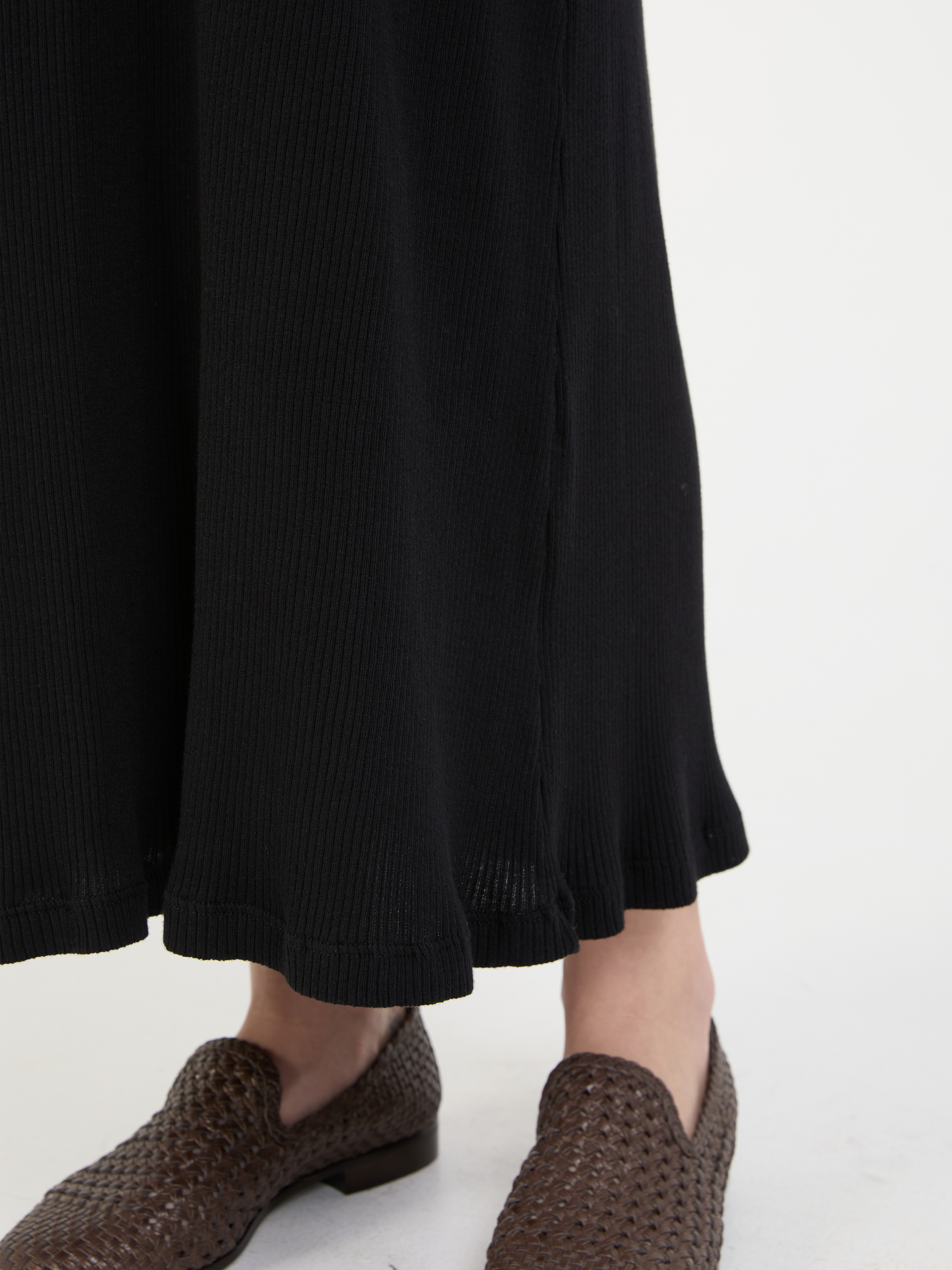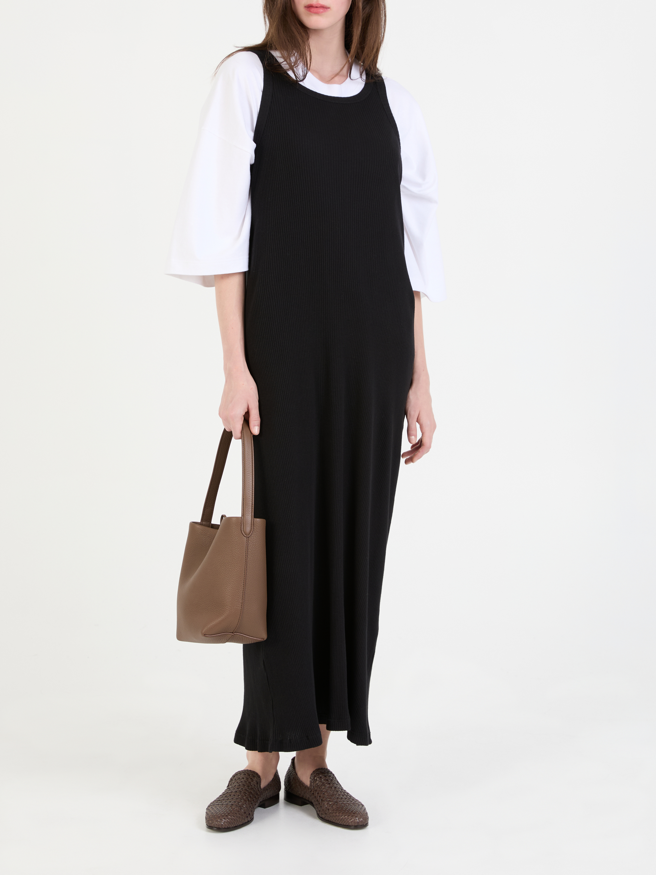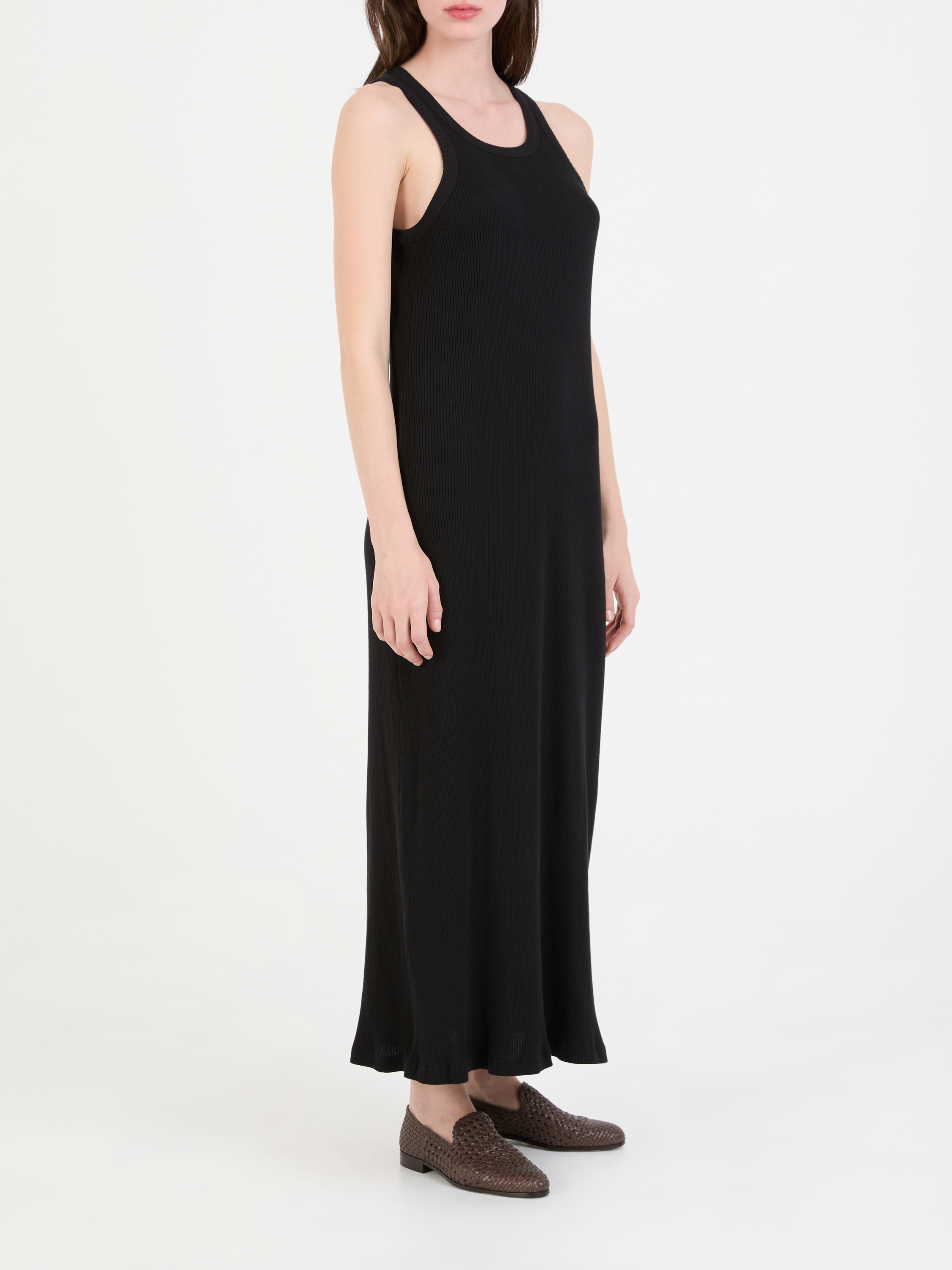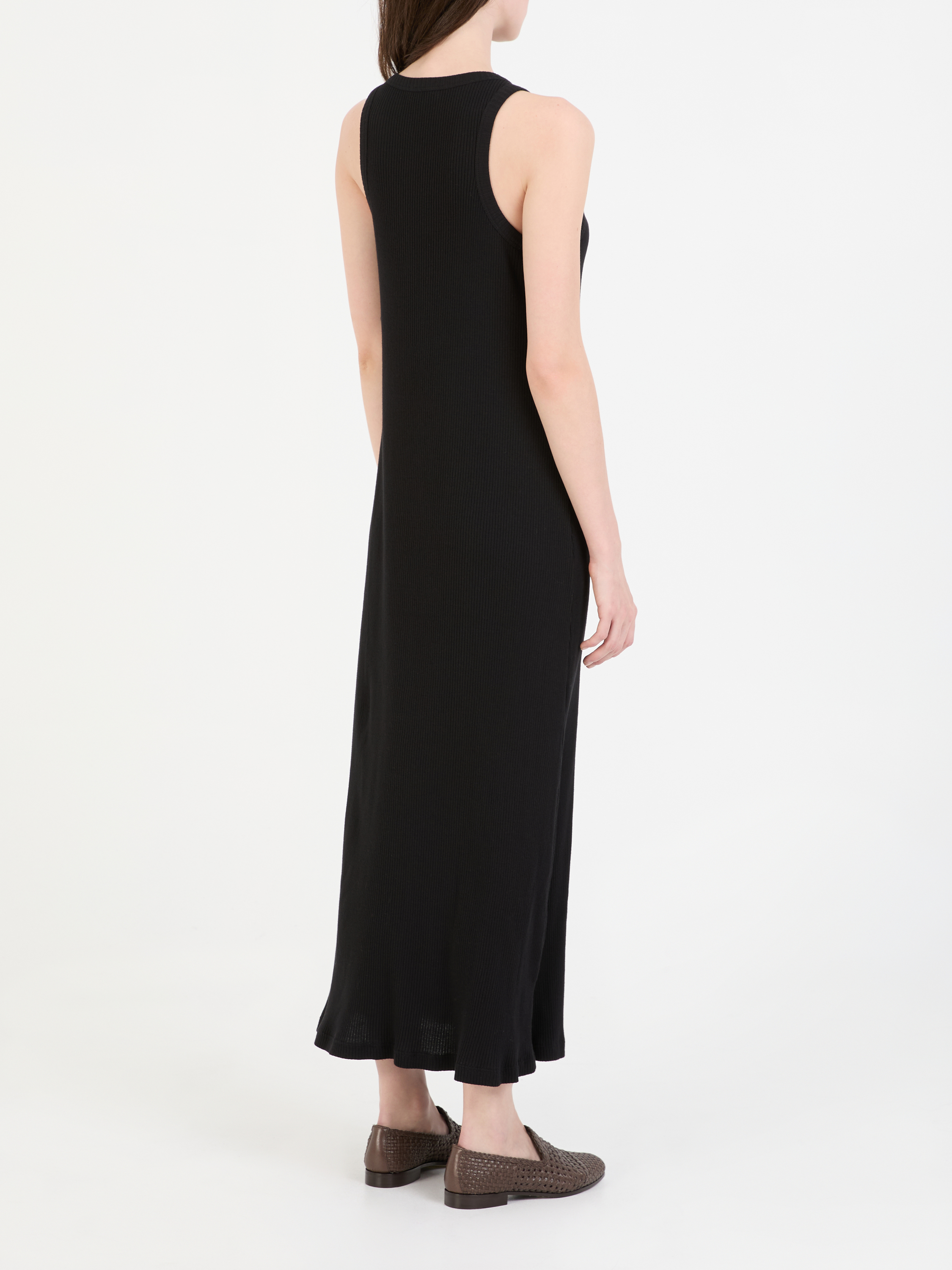 Das Kleid 'Yule' in Schwarz von The Row wurde aus reiner Baumwolle gefertigt und besticht durch die lange Passform. Das Modell wird durch das gerippte Material und den Rundhalsausschnitt perfektioniert. Abgerundet wird das elegante Design durch die schmale Passform.