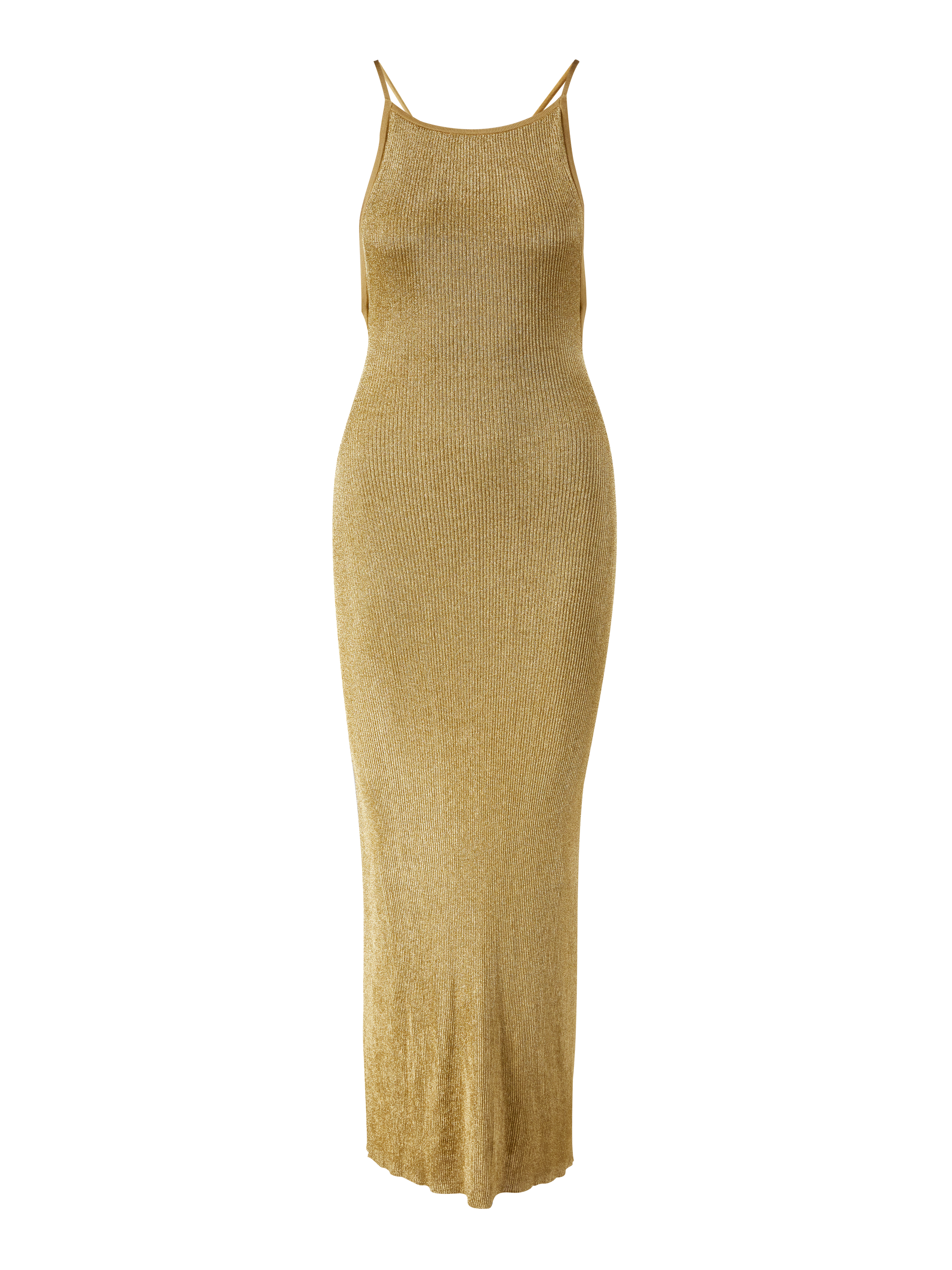 Das Kleid 'Nox' in Gold von CAMILLA AND MARC wurde aus einem hochwertigen Material gefertigt und besticht durch den Rippstrick. Die körpernahe Silhouette, der Bindeverschluss und der freie Rücken zeichnen dieses auffällige Modell aus.