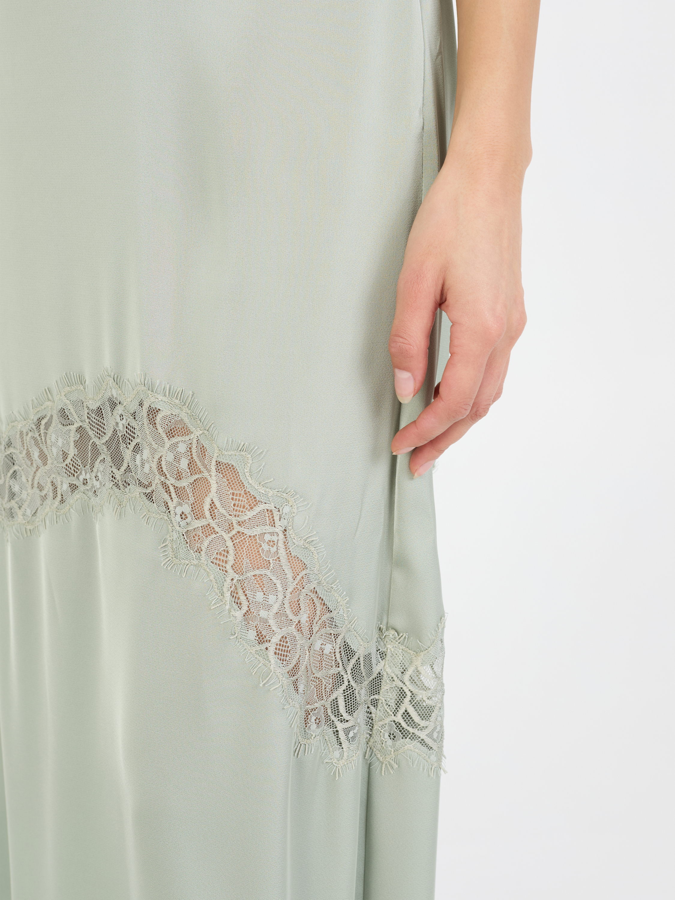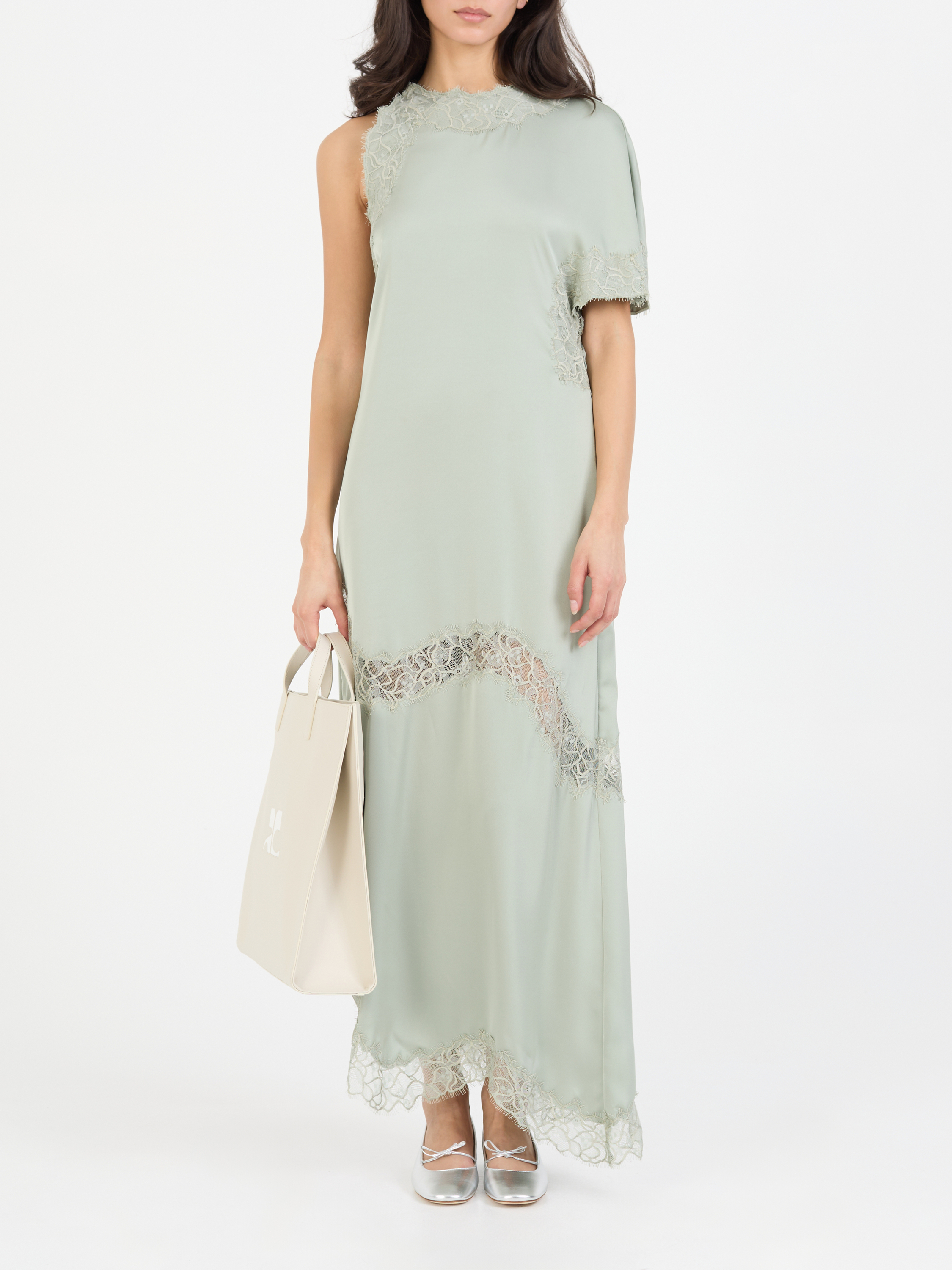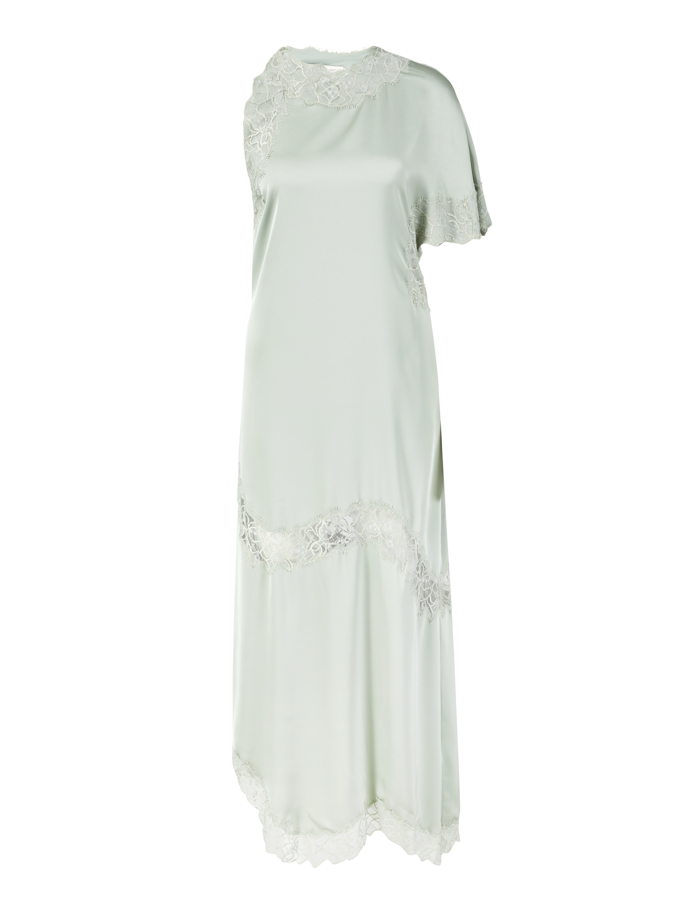 Dieses Maxikleid 'Melle' in Grün von CAMILLA AND MARC wurde aus einem leichten Material gefertigt und besticht durch einen asymmetrischen Saumabschluss und One-Shoulder-Ausschnitt. Der Einsatz von Spitze zeichnet diesen modischen Look aus.