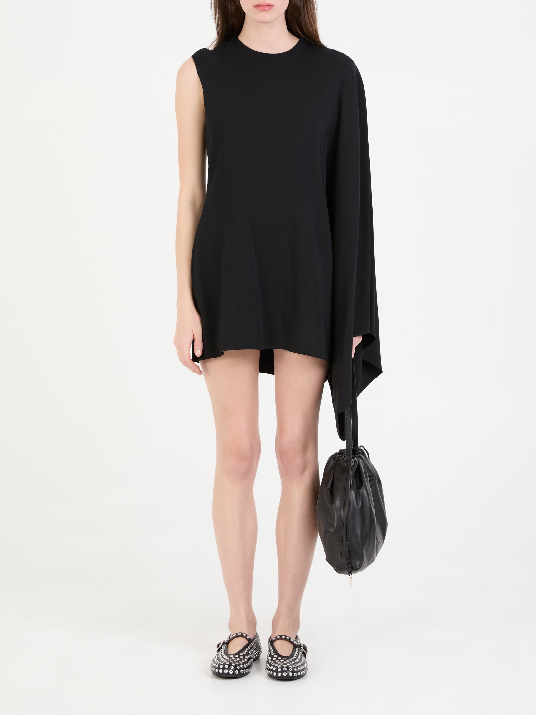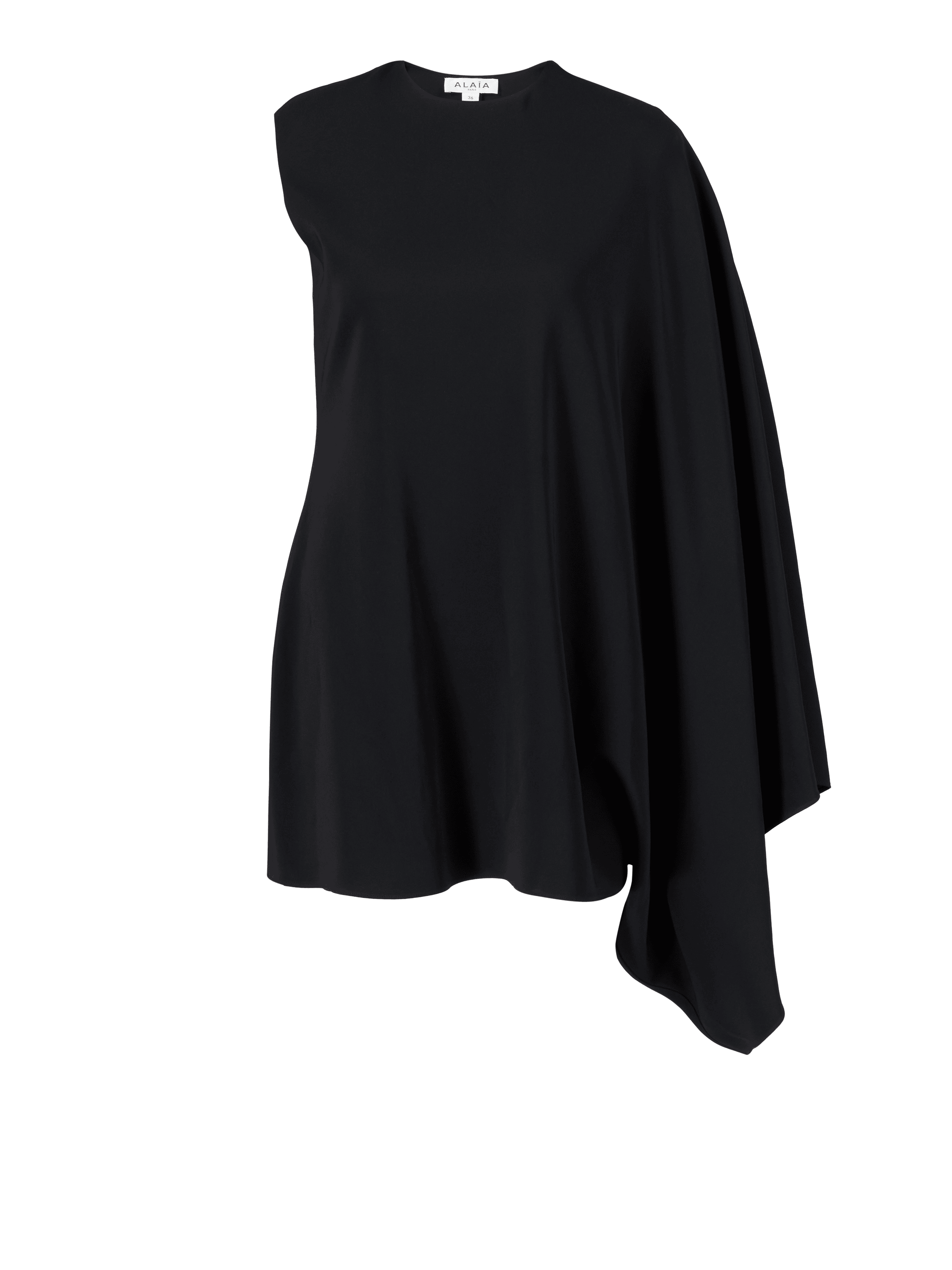 Das Kleid 'Kaftan' in Schwarz von Alaïa wurde aus hochwertigen Materialien gefertigt und besticht durch das asymmetrische Design. Die fließende Silhouette zeichnet dieses elegante Modell aus. Die Falten an der Schulter runden das Modell stilvoll ab.