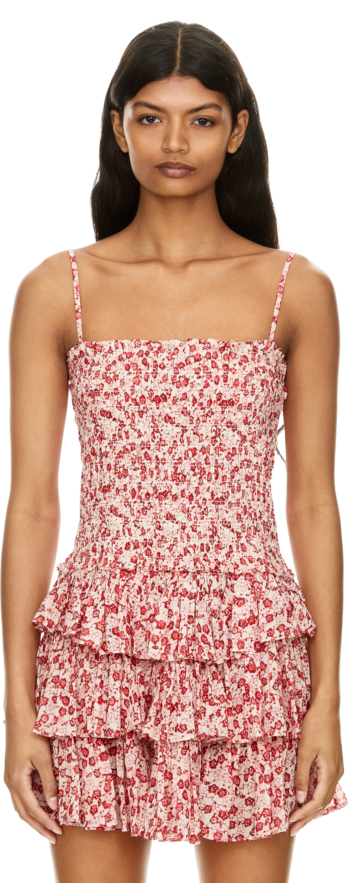 Das Kleid 'Elodie' in Rot von Marant Étoile wurde aus Baumwollvoile gefertigt und besticht durch den ausgestellten, fließenden Schnitt. Die Minilänge, der gerade Ausschnitt, die schmalen Träger sowie das gesmokte Detail zeichnen dieses charmante Modell aus.