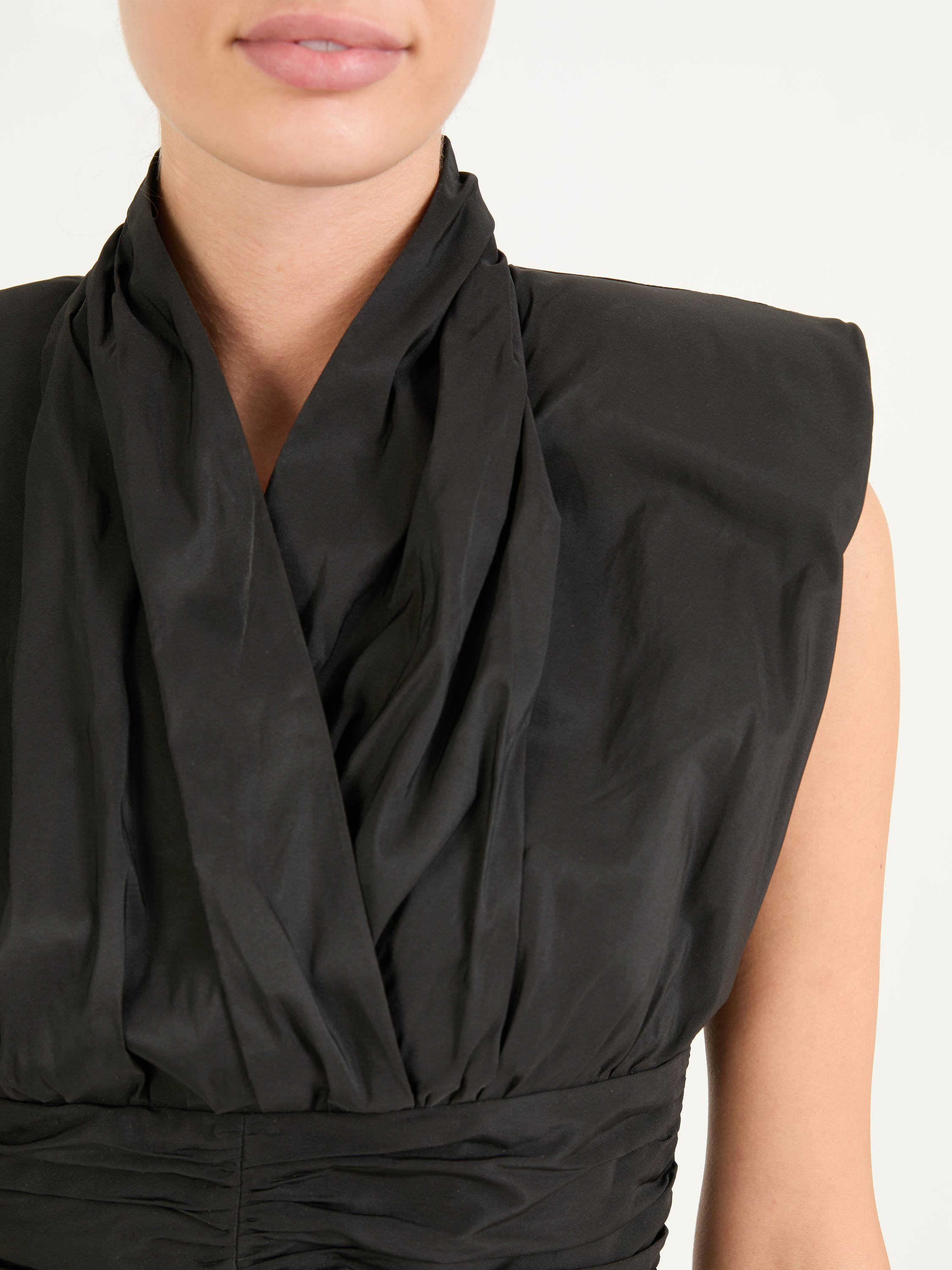 Dieses Kleid in Schwarz von PATOU wurde aus einem hochwertigen Material gefertigt und besticht durch den offenen Rückenausschnitt. Der V-Ausschnitt und die Schulterpolster zeichnen dieses modern-feminine Modell aus.