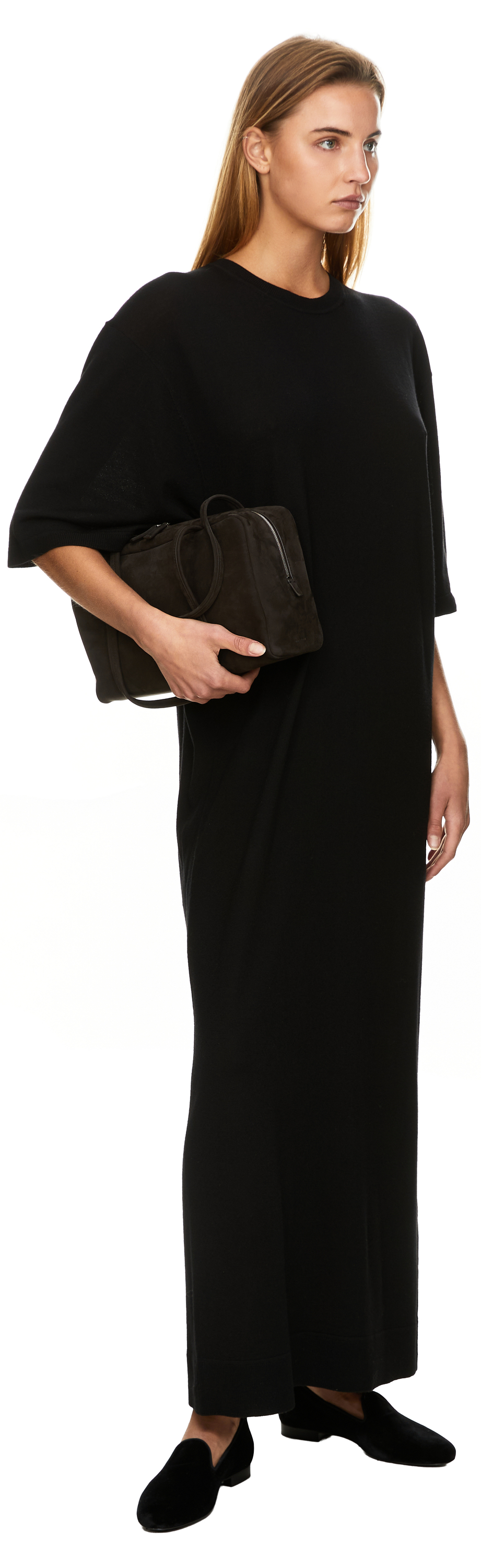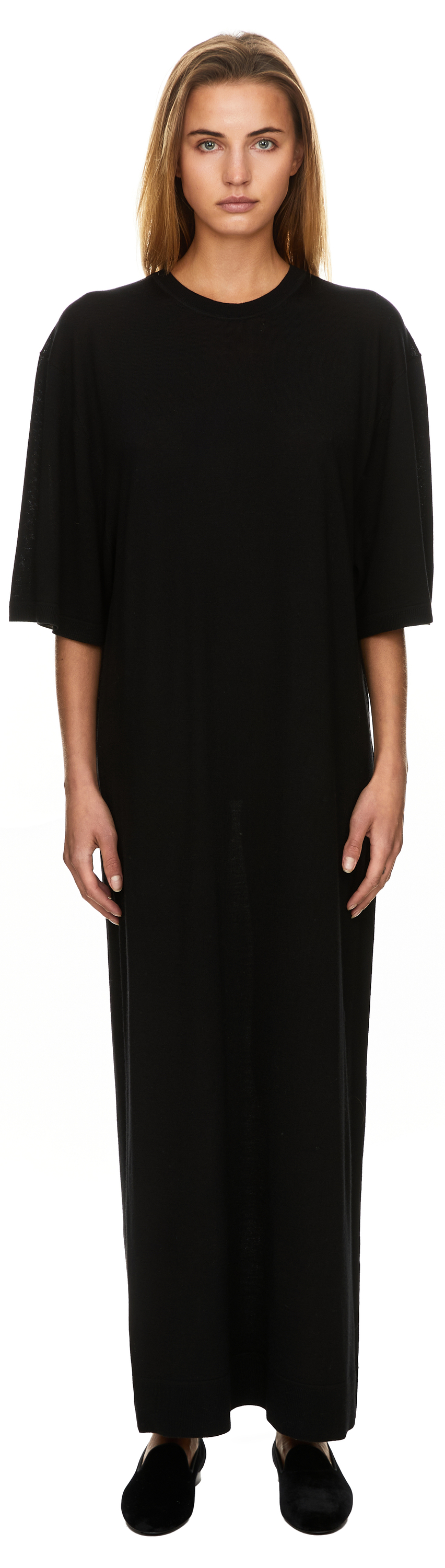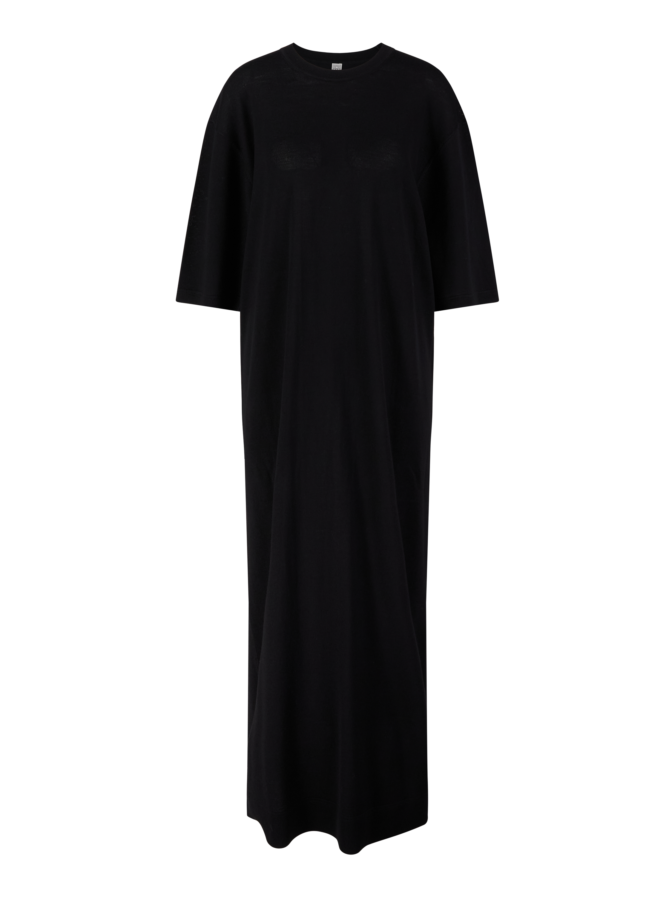 Dieses Kleid in Schwarz von TOTEME wurde aus hochwertiger Wolle gefertigt und besticht durch die Oversize-Passform. Der Rundhalsausschnitt, die überschnittenen Schultern sowie die weiten Ärmel runden dieses modische Design ab.