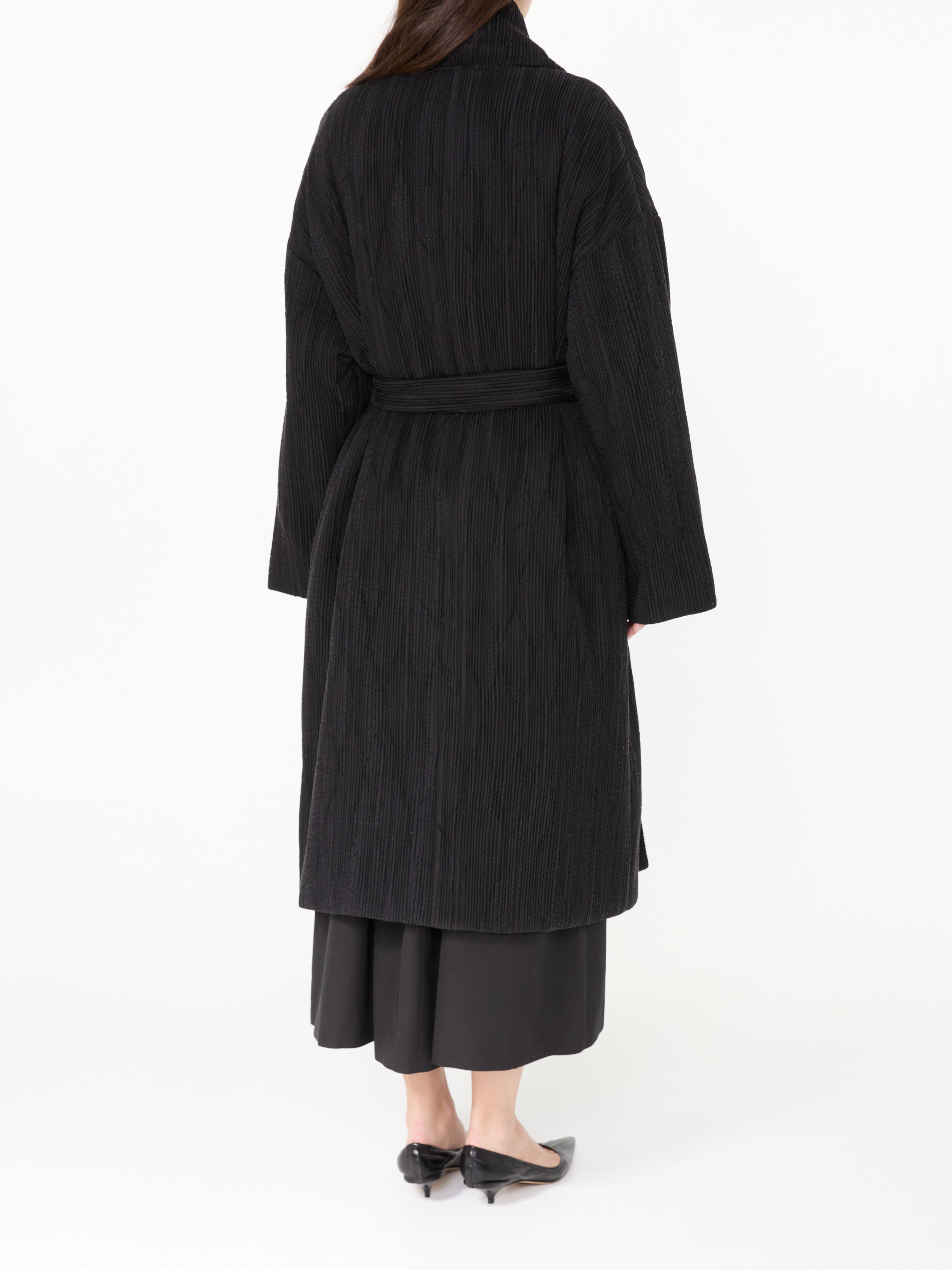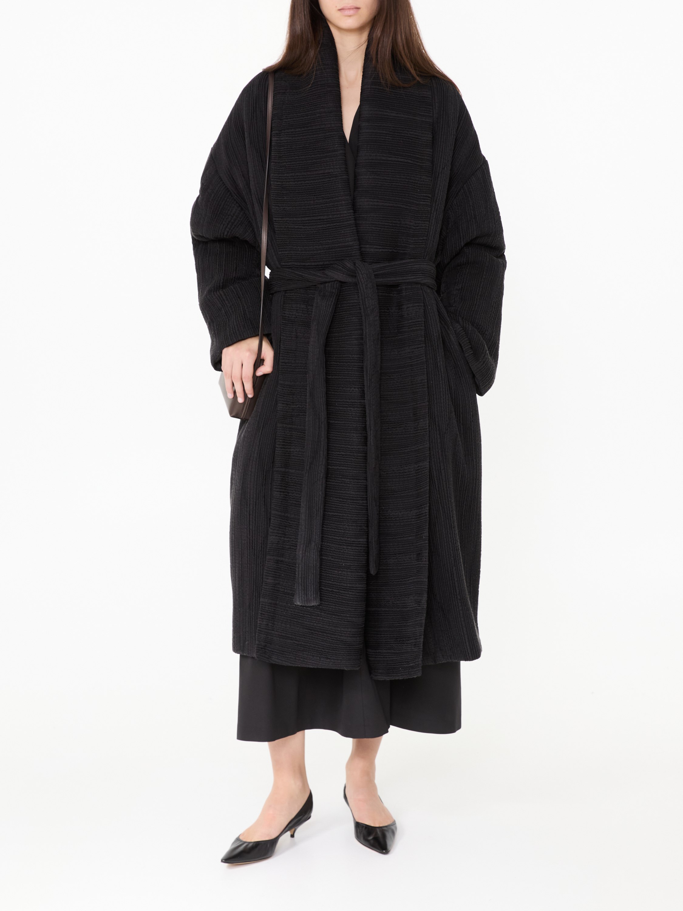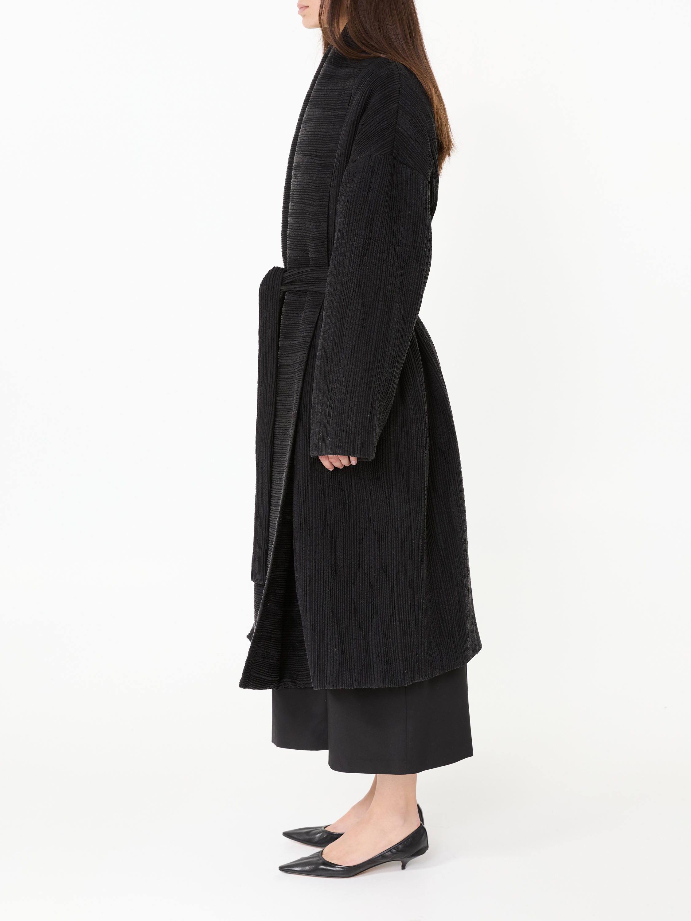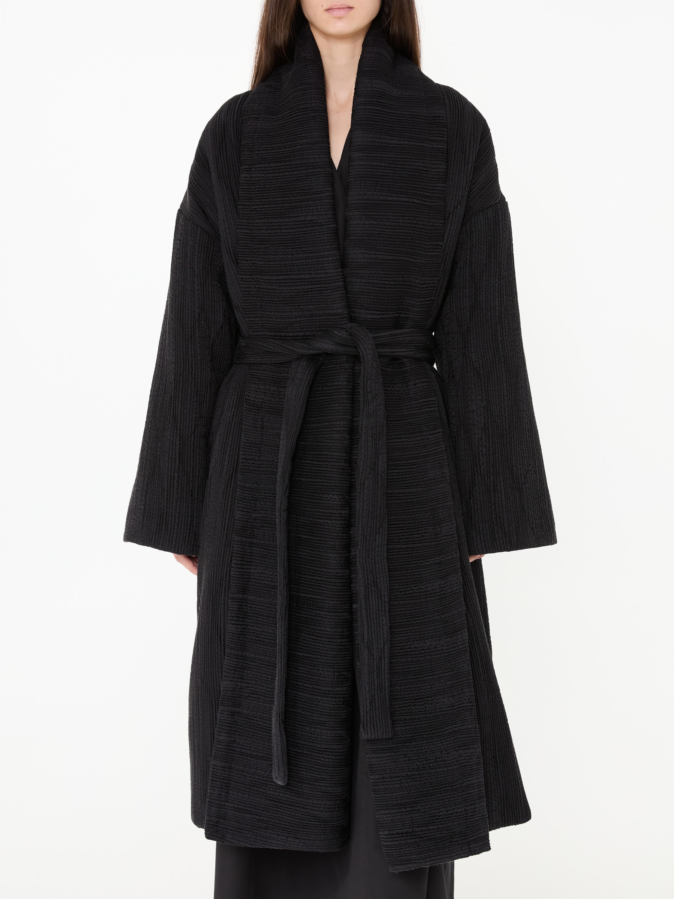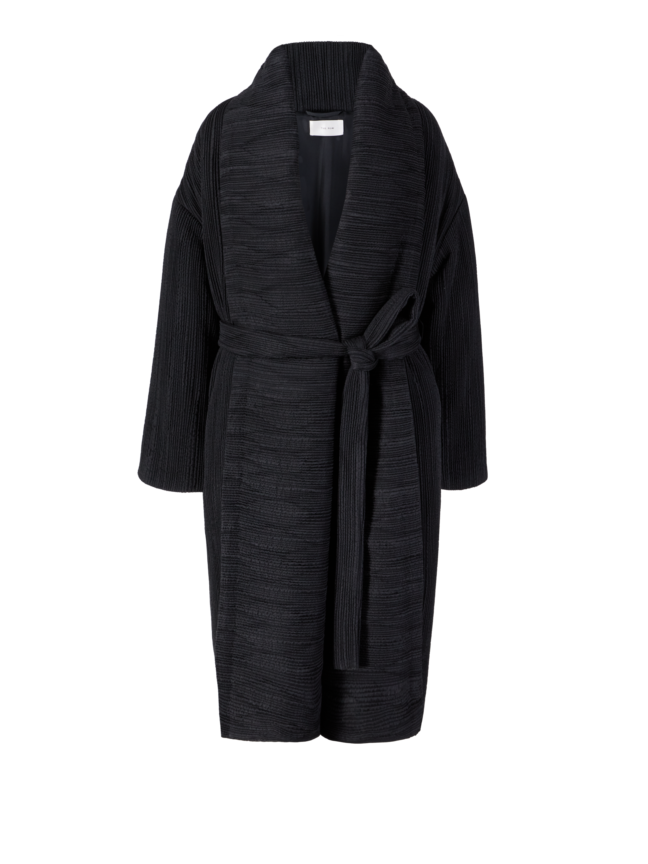 Der Mantel 'Moorea' in Schwarz von The Row wurde aus hochwertiger Seide gefertigt und besticht durch die angenehme Struktur. Die weite Passform wird durch den Schalkragen ergänzt, welcher eine komfortable Optik ermöglicht.
