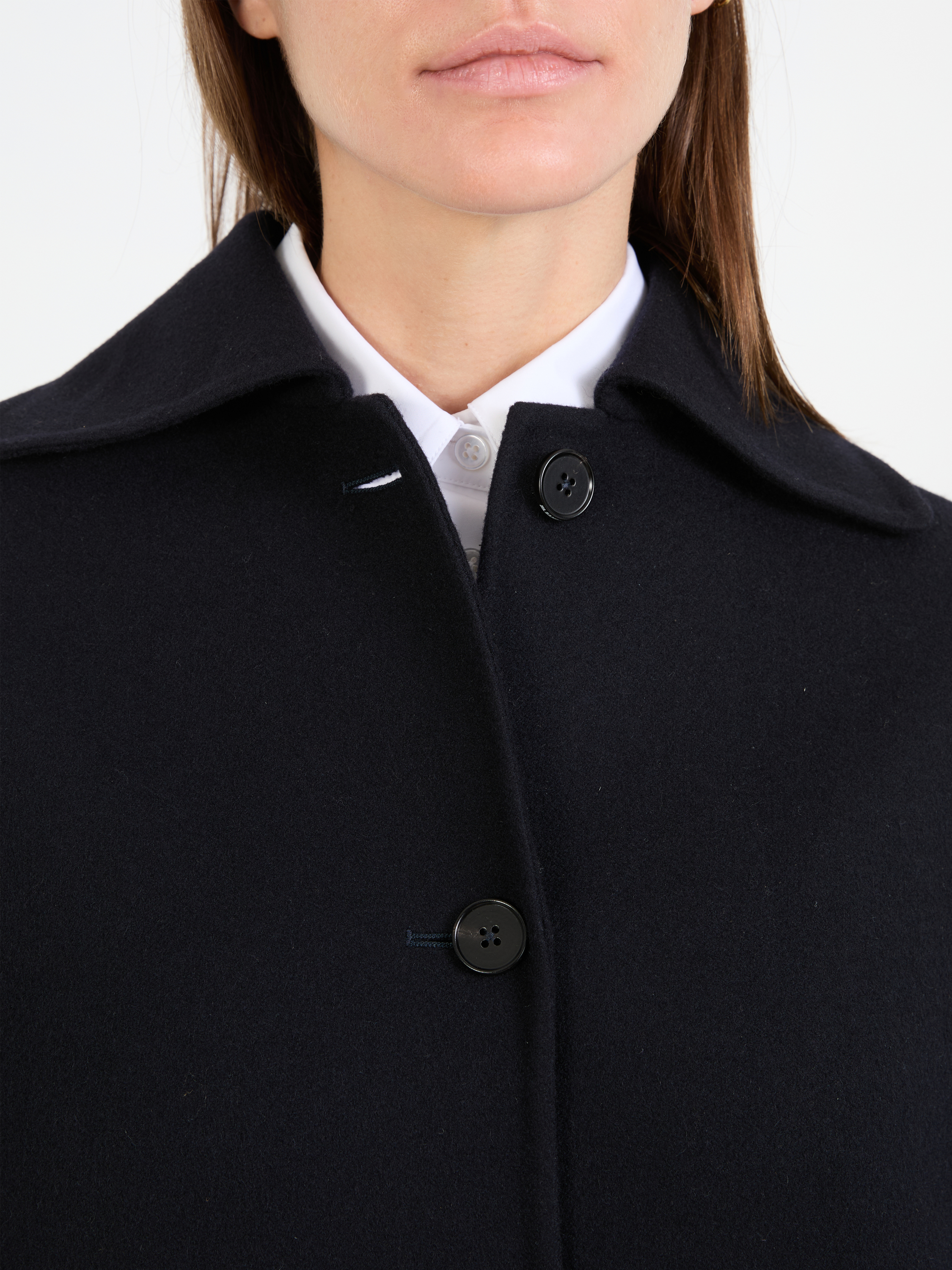 Dieser Mantel in Marineblau von JIL SANDER wurde aus Cashmere gefertigt und besticht durch das klassische Design. Die gerade Silhouette wird durch eine einreihige Knopfleiste ergänzt, welcher eine taillierte Passform ermöglicht. Der abgerundete Saum und die Manschetten vollenden dieses hochwertige Design.