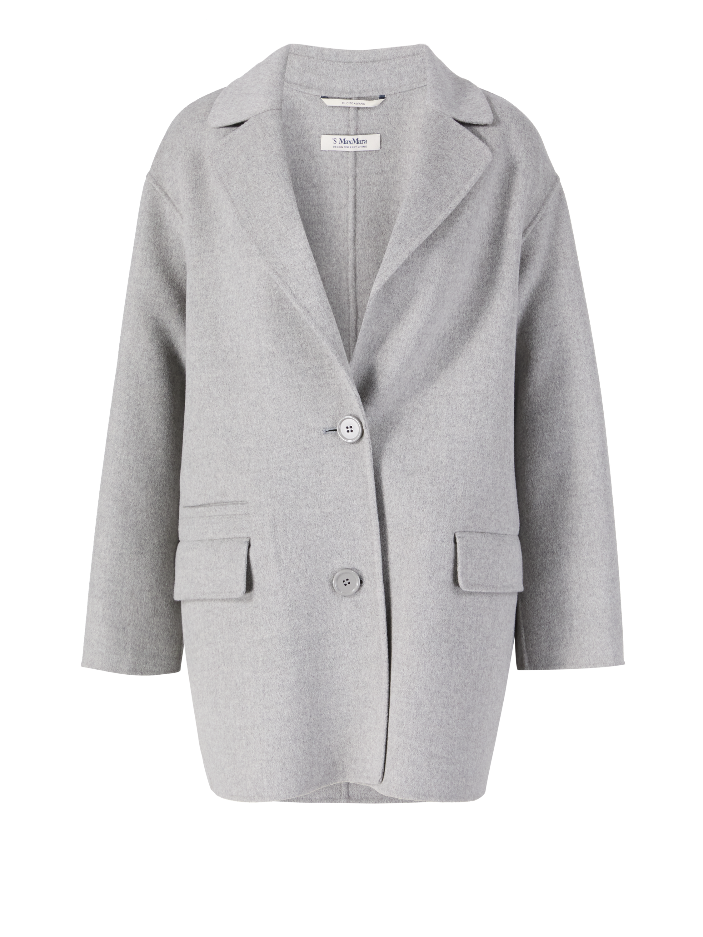 Der Mantel 'Florian' in Grau von 'S Max Mara wurde aus reiner Schurwolle gefertigt und besticht durch die ausgestellte Silhouette. Der aufsteigende Reverskragen sowie die Pattentaschen runden das Design stilvoll ab.