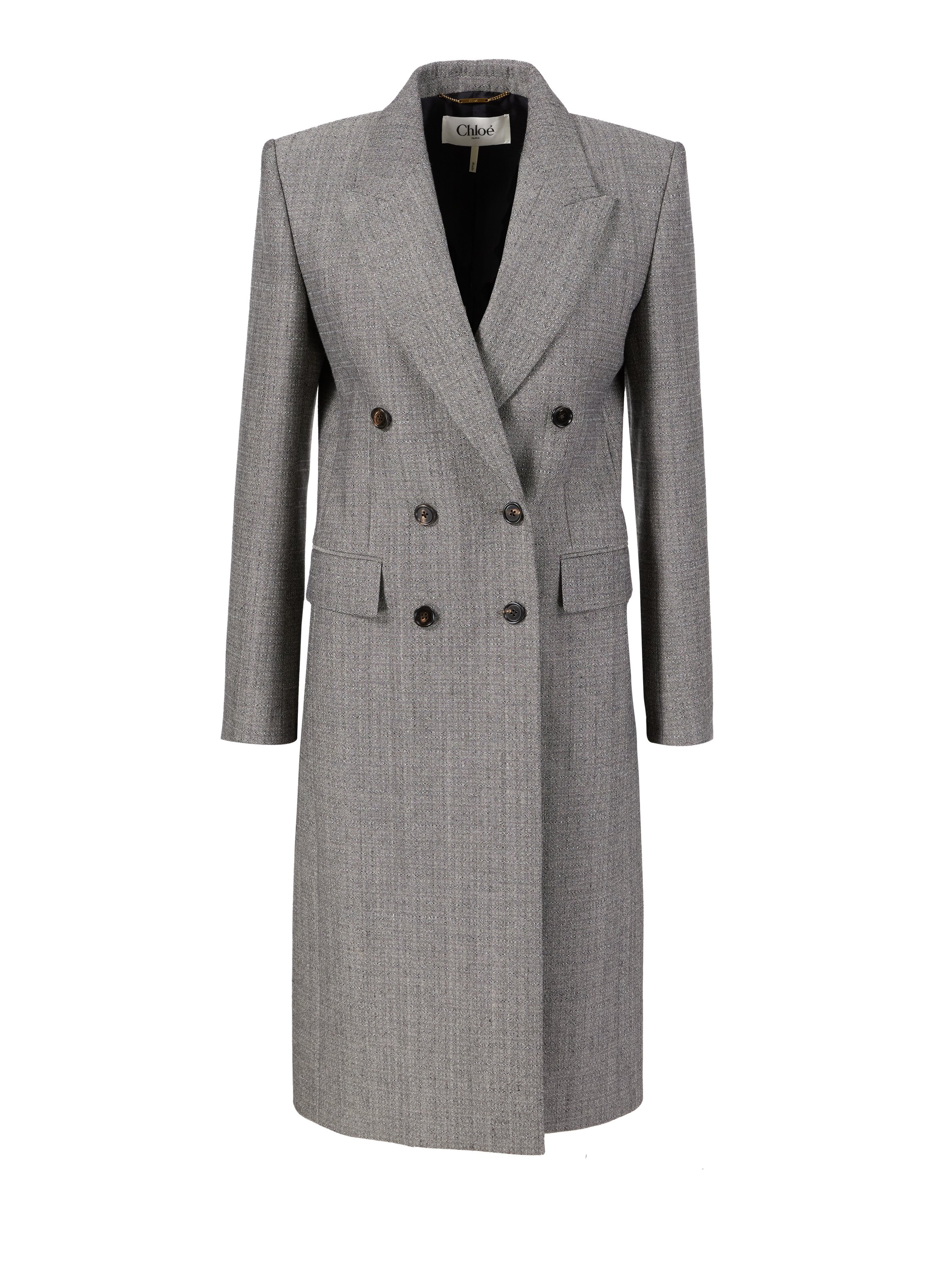 Dieser Mantel in Grau von Chloé wurde aus einem hochwertigen Wollgemisch gefertigt und besticht durch die gerade Silhouette. Der steigende Reverskragen und die Paspeltaschen mit Patte zeichnen dieses hochwertige Modell aus. Der Gehschlitz und die angenehme Haptik vollenden das elegante Design.