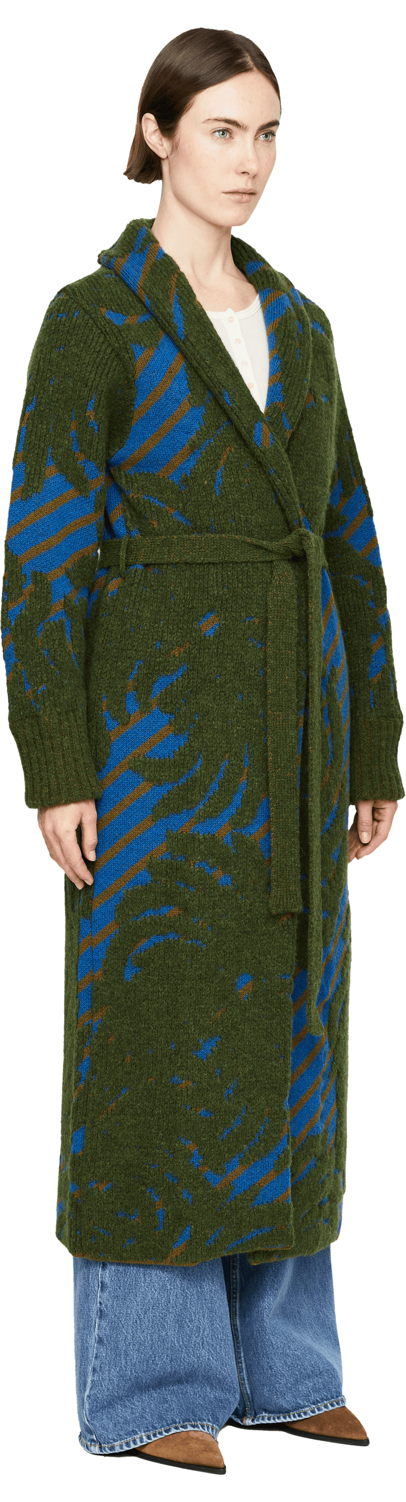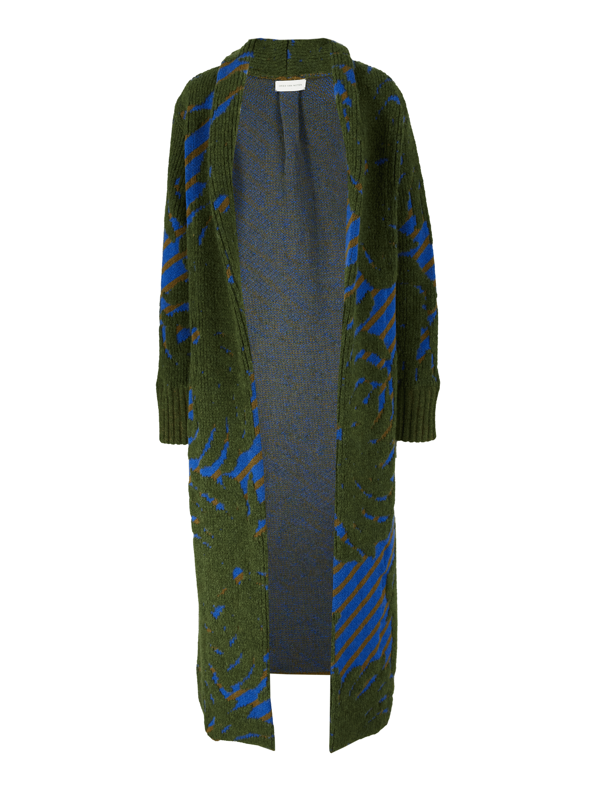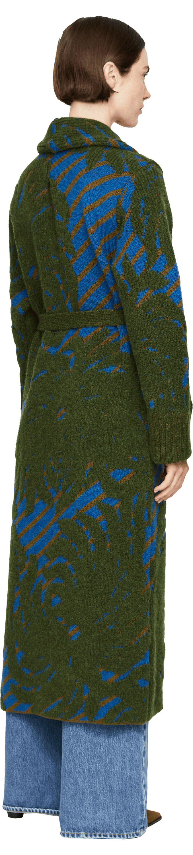 Der Mantel 'Tegal' in Grün/Blau von Dries van Noten wurde aus einer hochwertigen Wollmischung gefertigt und besticht durch die lässige Passform. Das dicke, weiche Material sowie der Bindegürtel runden das Design stilvoll ab.