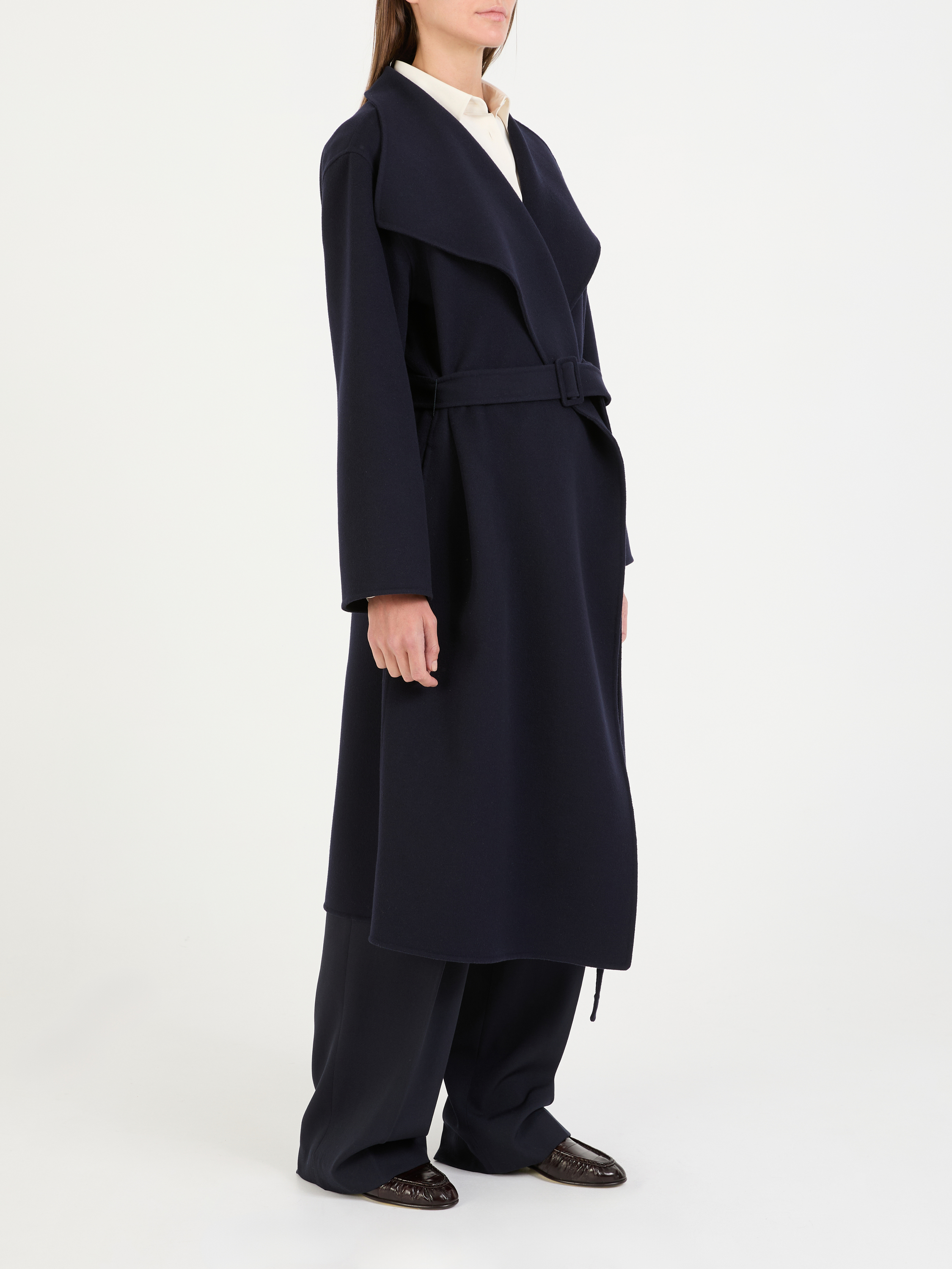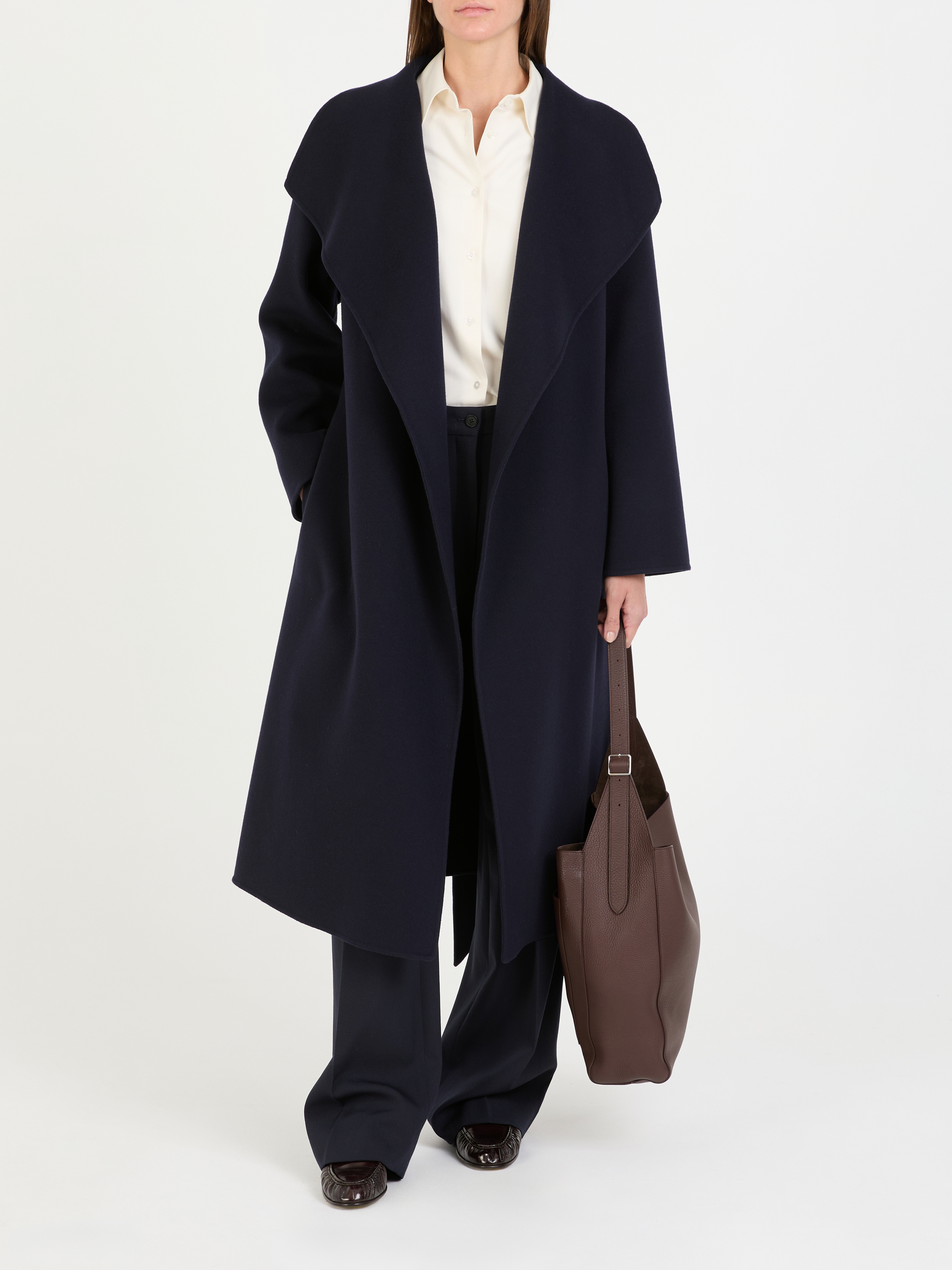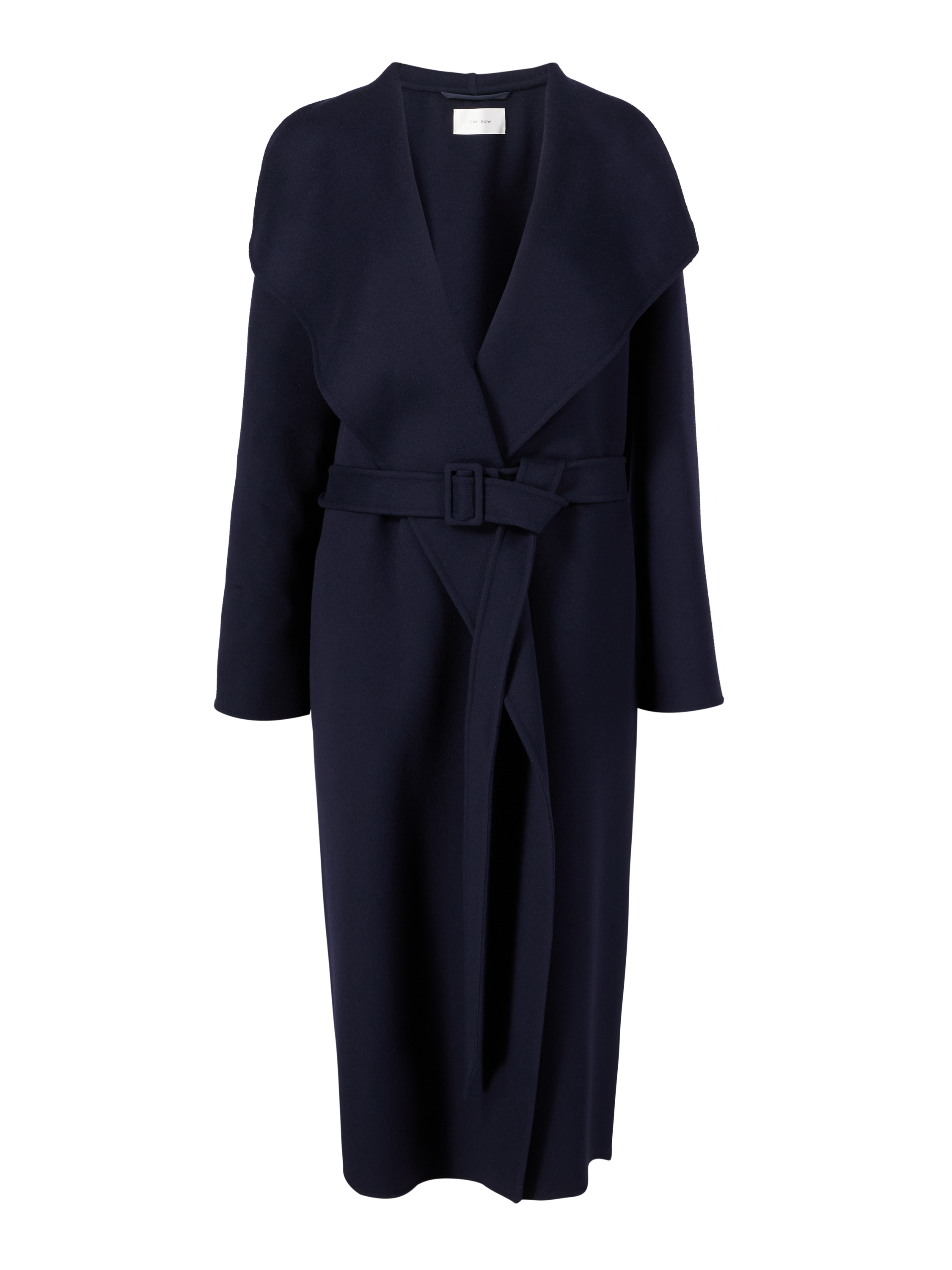 Der Mantel 'Hailey' in Marineblau von The Row wurde aus Woll-Cashmere-Gemisch gefertigt. Die gerade Passform und die offene Front zeichnen dieses Modell aus. Der extra lange Gürtel vollendet dieses zeitlose Design.
