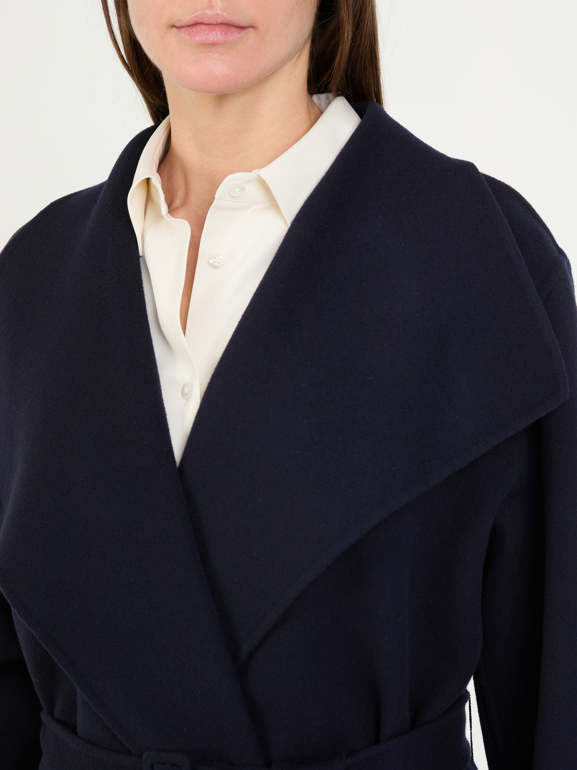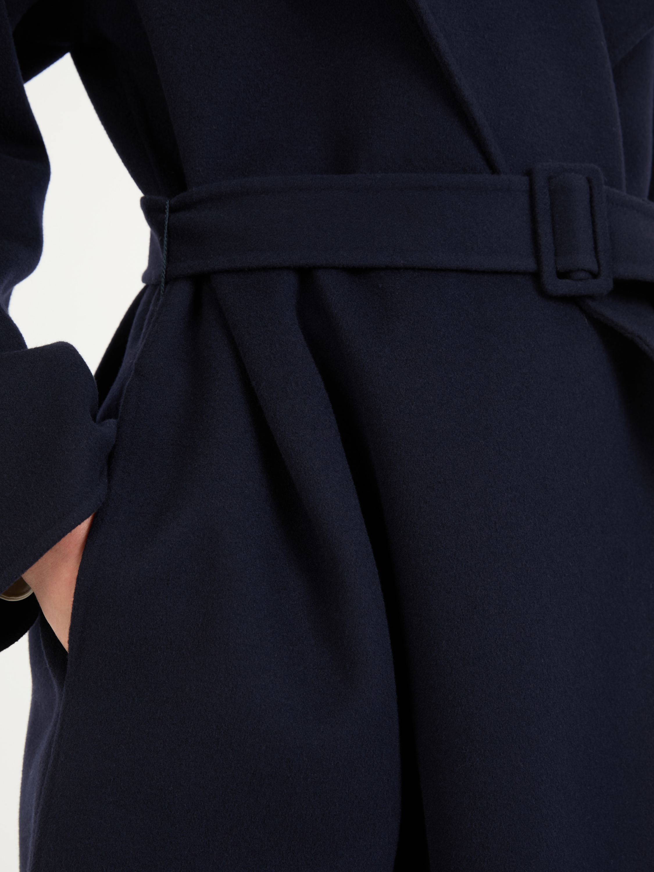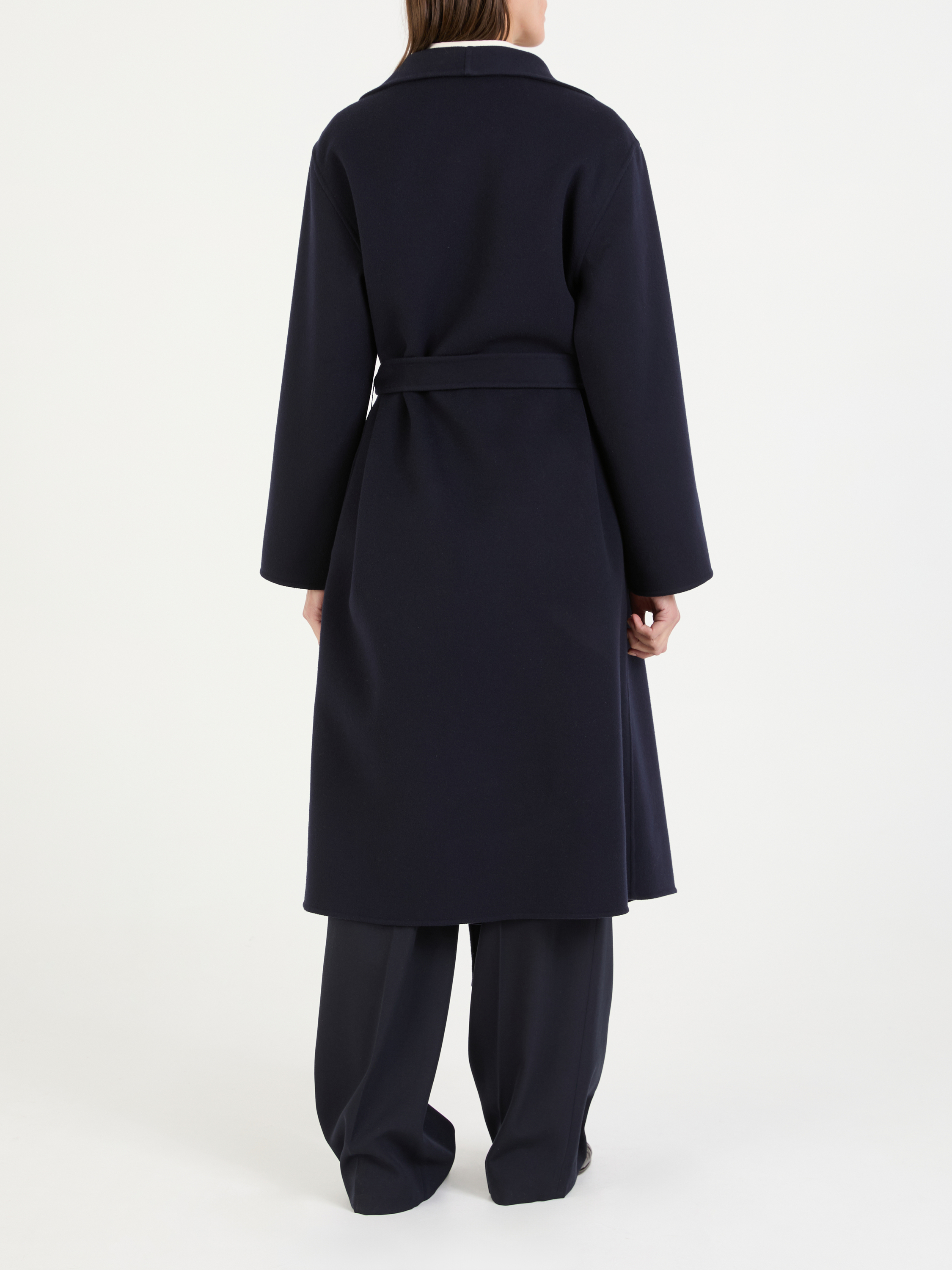 Der Mantel 'Hailey' in Marineblau von The Row wurde aus Woll-Cashmere-Gemisch gefertigt. Die gerade Passform und die offene Front zeichnen dieses Modell aus. Der extra lange Gürtel vollendet dieses zeitlose Design.