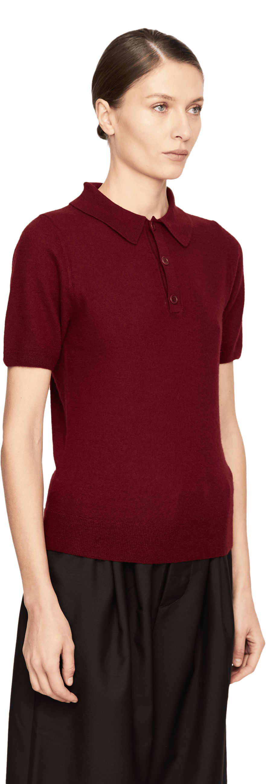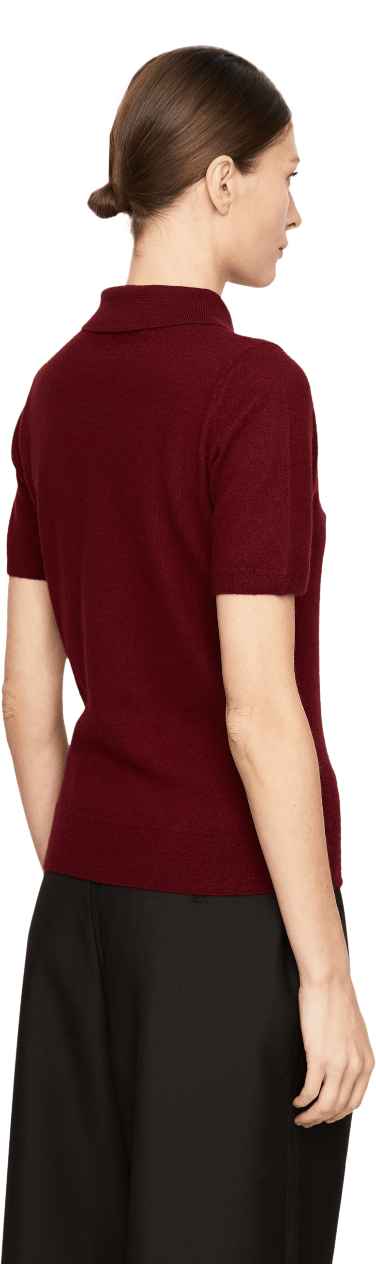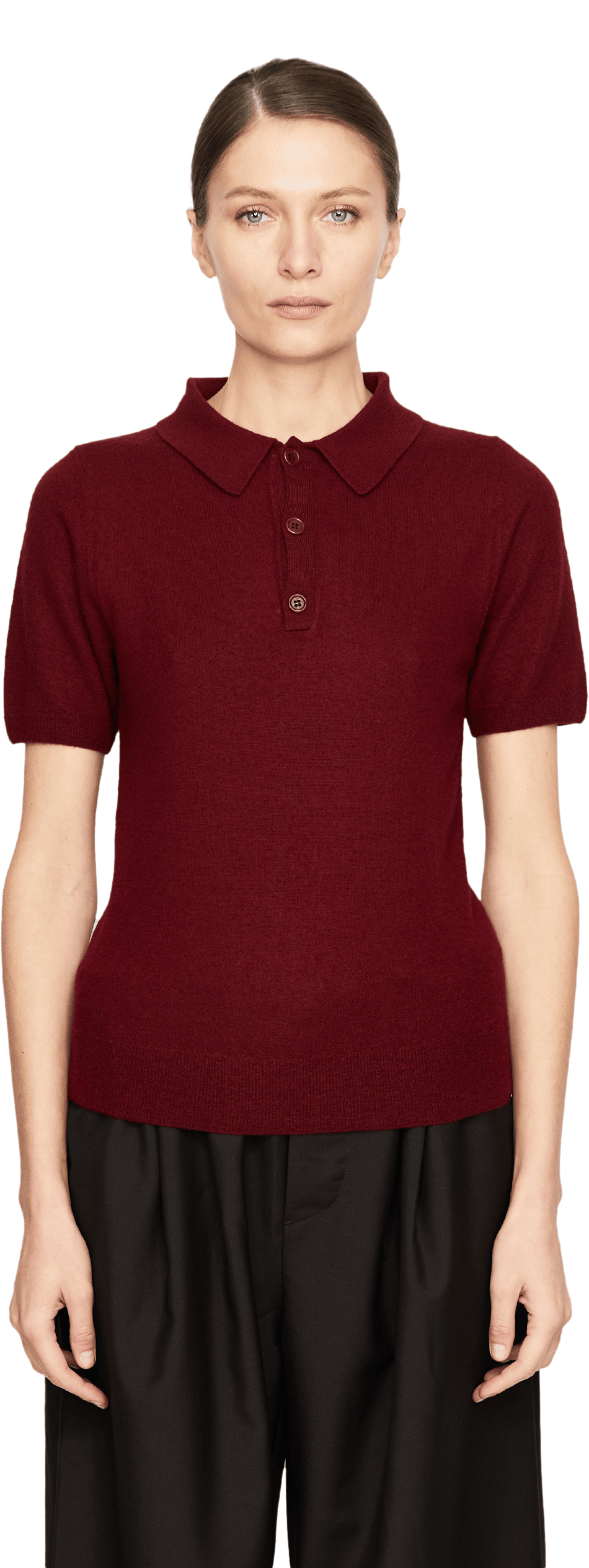 Dieser Pullover in Bordeaux von META CAMPANIA COLLECTIVE wurde aus reinem Cashmere gefertigt und besticht durch die weiche Haptik. Der Polokragen, die gerade Passform und die kurzen Ärmel setzten einen eleganten Akzent.