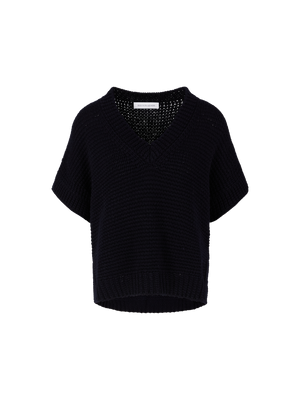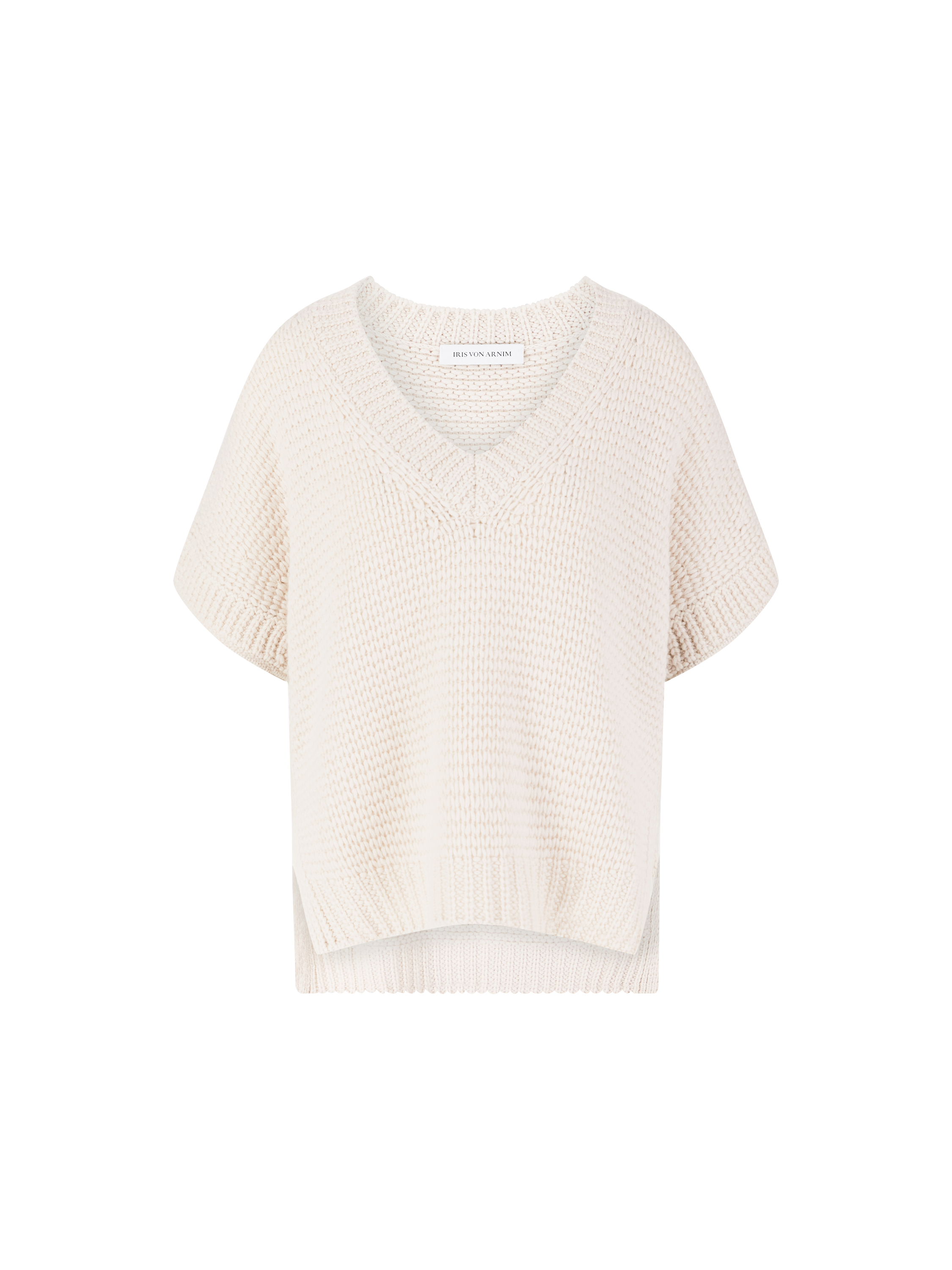 Der Pullunder 'Marcelline' in Alabaster von Iris von Arnim wurde aus weichem Cashmere gefertigt und besticht durch die lockere Passform. Der feminine V-Ausschnitt, die seitlichen Schlitze sowie der verlängerte Rückensaum verleihen dem Modell eine stillvolle Note.