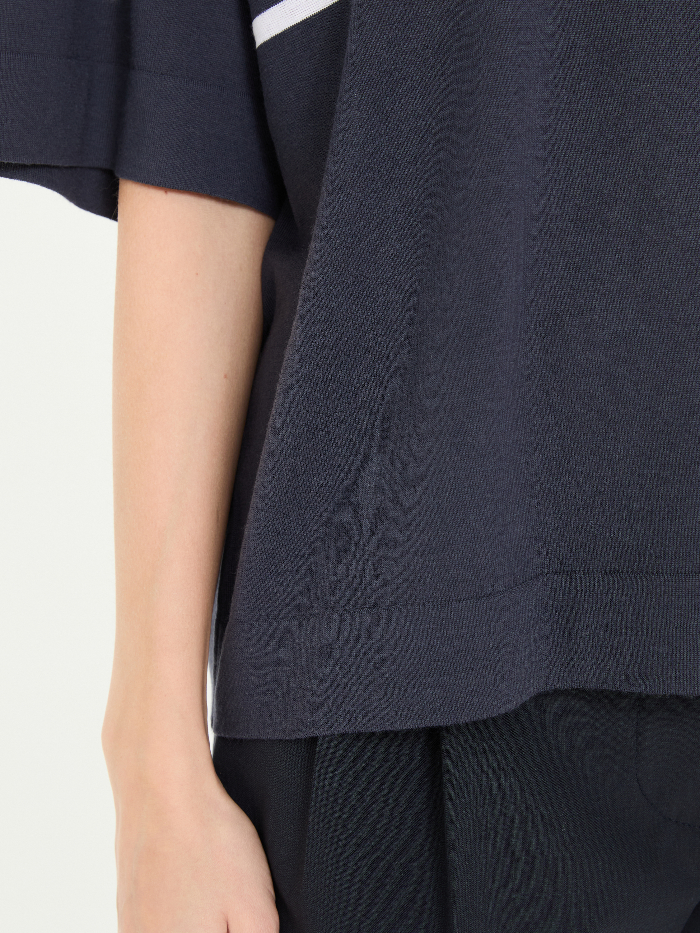 - Kurzarmpullover in Marineblau/Weiß