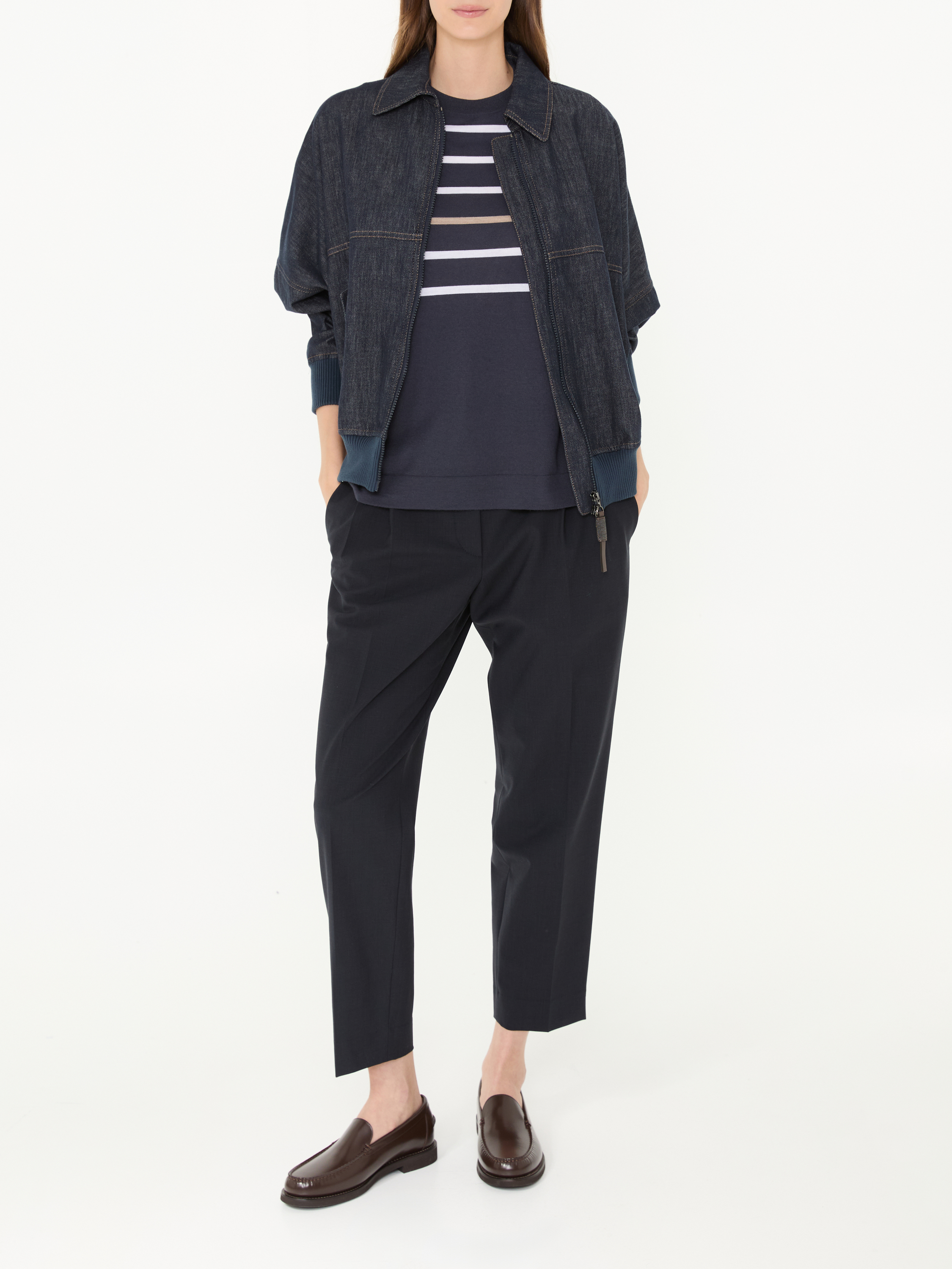 Brunello Cucinelli ist eine italienische Luxusmarke, die 1978 von Brunello Cucinelli in dem malerischen Dorf Solomeo gegründet wurde. Die Marke steht für hochwertige Mode und vereint traditionelle Handwerkskunst mit modernem Design. Seine Mode ist weltweit bekannt für ihre exklusive Qualität und die Verwendung luxuriöser Materialien. Das Unternehmen hat seinen Hauptsitz nach wie vor in Solomeo, einem Ort, der für die Philosophie der "humanistischen Kapitalismus" steht, die von Brunello Cucinelli selbst propagiert wird. Diese Philosophie betont die Bedeutung von Menschlichkeit und ethischer Verantwortung in der Geschäftswelt.