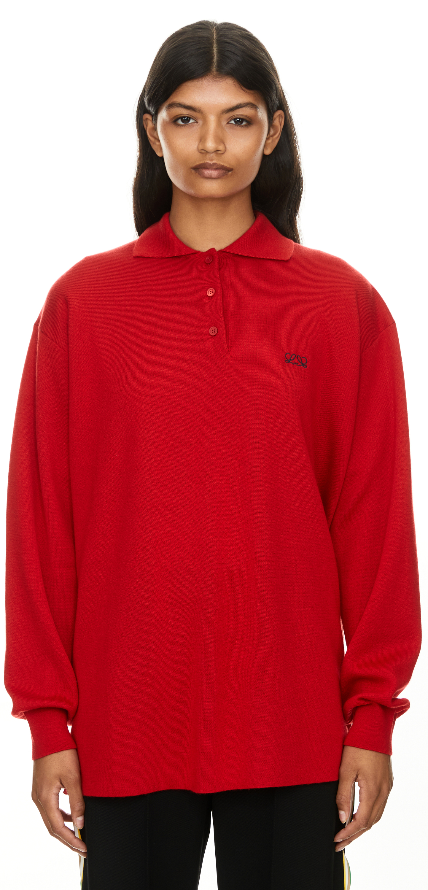 Dieser Pullover in Rot von LOEWE wurde aus einer leichten Doubleface-Cashmere- und Seidenmischung gefertigt und besticht durch die entspannte Passform. Der Polokragen sowie die Doppel-L-Stickerei auf der Brusttasche verleihen diesem Modell einen besonderen Charakter.