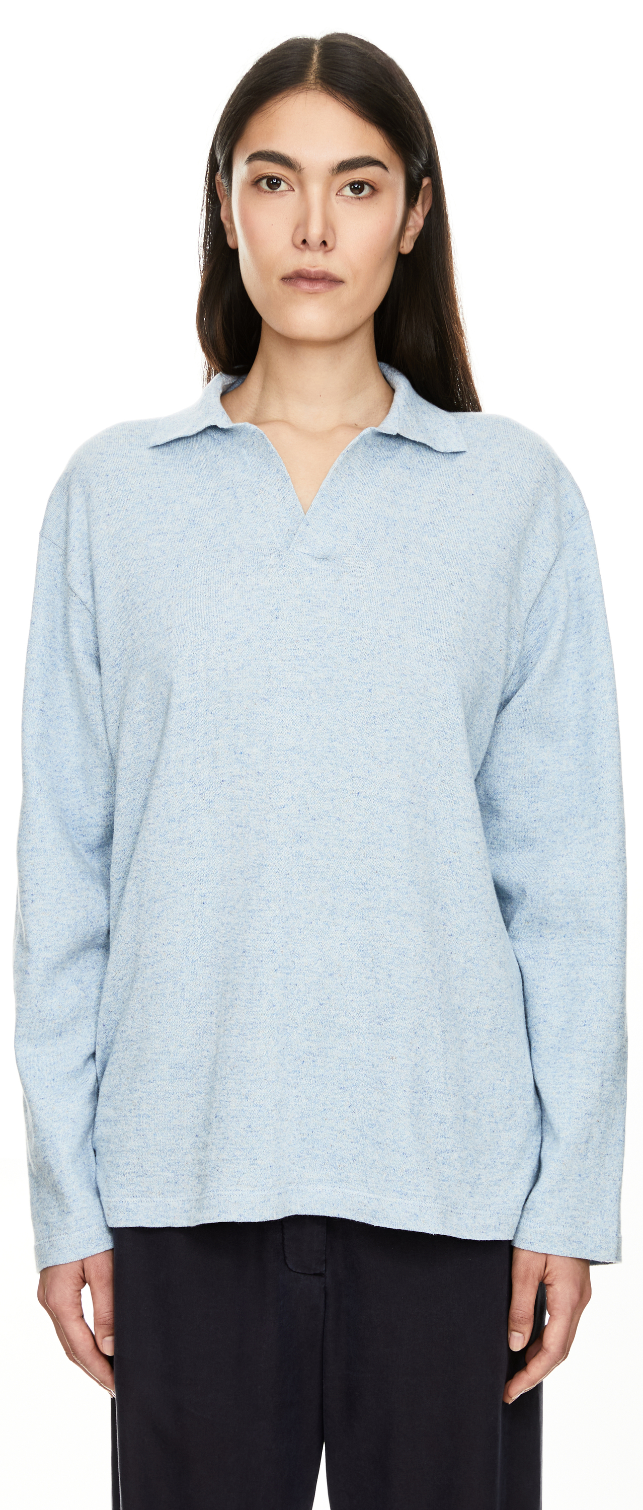 Der Pullover 'Niosa' in Hellblau von The Row wurde aus leicht strukturierter Melange-Baumwolle gefertigt und besticht durch den Oversized Fit. Der Polokragen mit knopflosem Fronteinsatz sowie die saubere Kantenverarbeitung mit verdeckten Ziernähten prägen das reduzierte Design. Das natürliche Leinen sorgt für ein leichtes, dennoch formstabiles Tragegefühl und verleiht dem Modell eine lässig-elegante Optik.