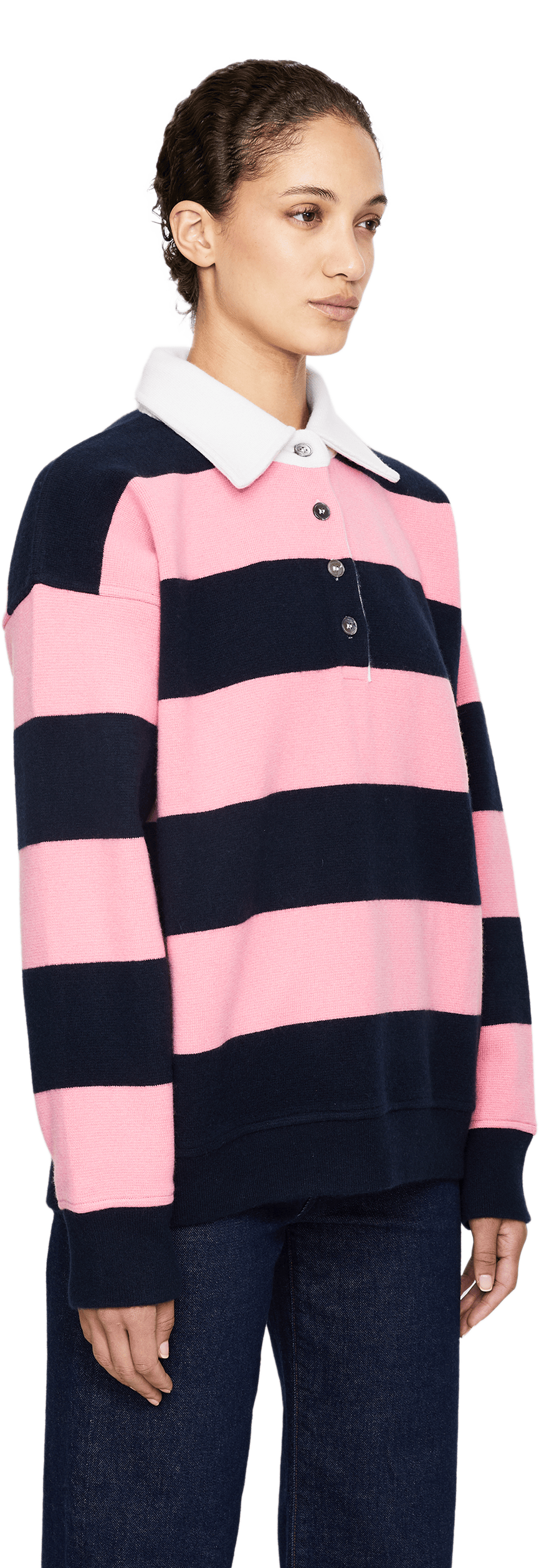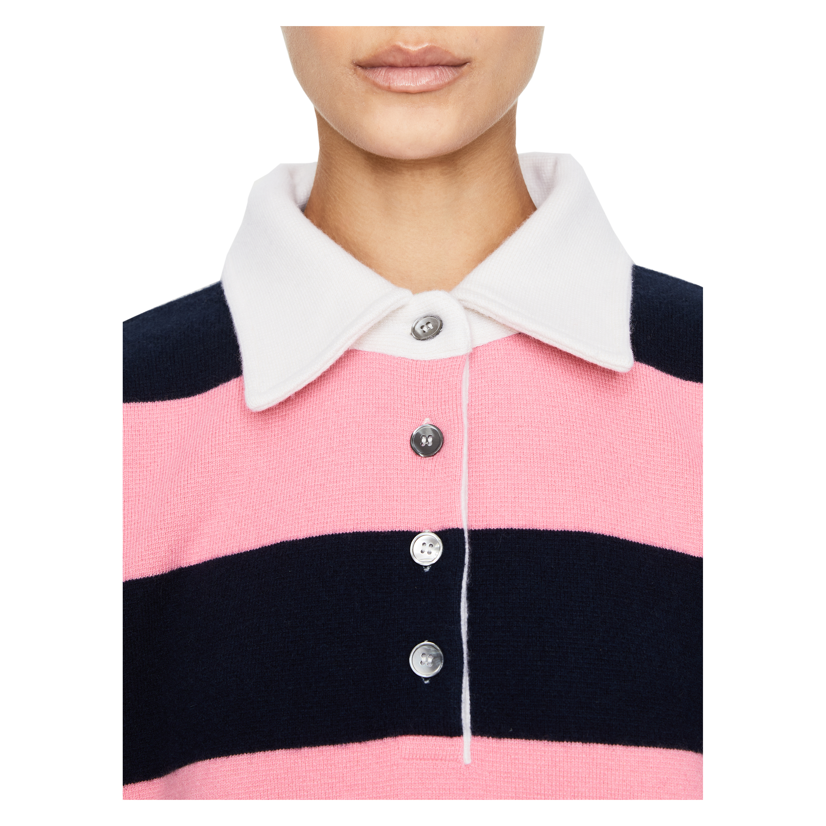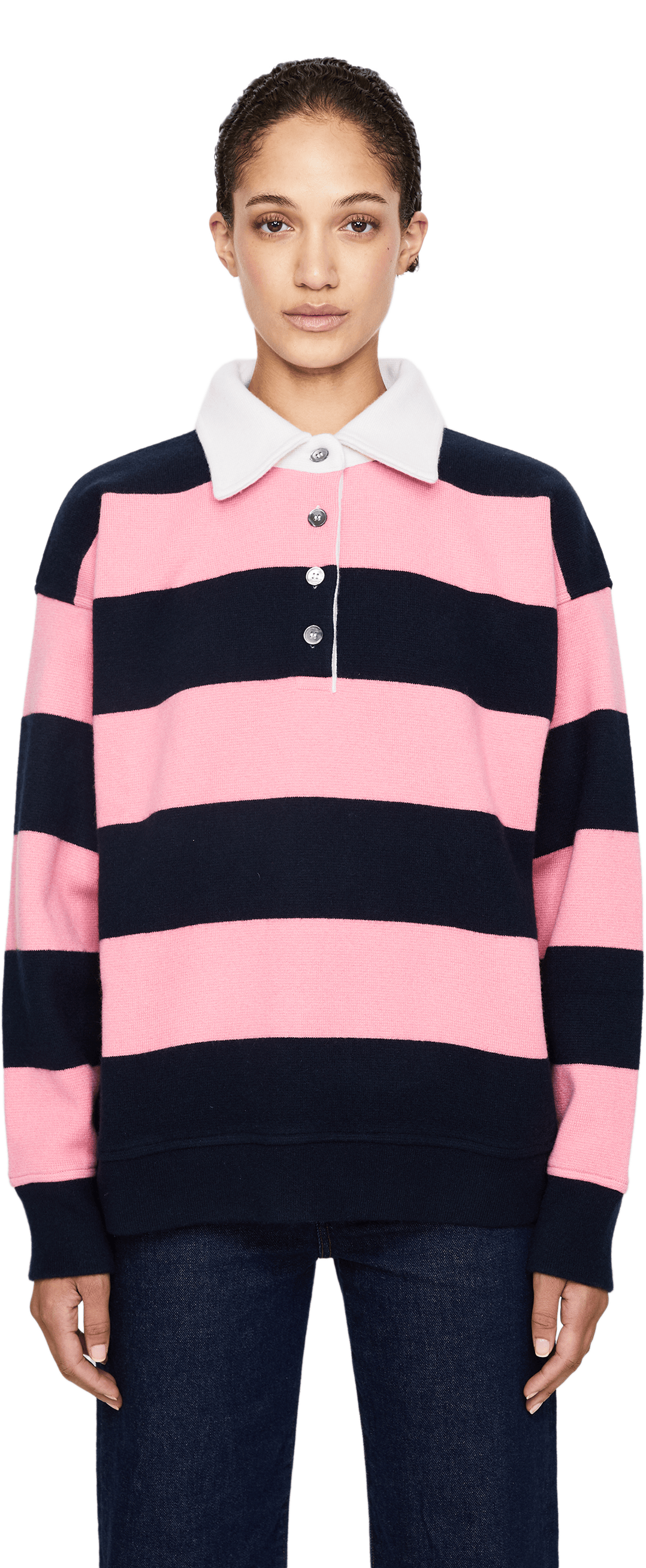 Ella Silla x UNGER Collection Unisex Rugby-Poloshirt aus Cashmere Pink/Marineblau