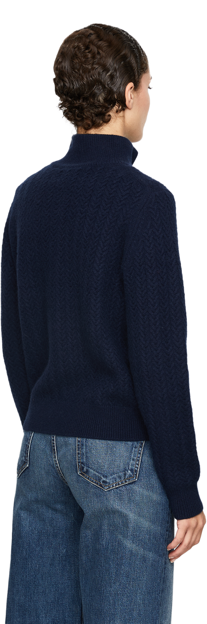 Dieser Pullover in Marineblau von UNGER Collection wurde aus weichem Cashmere gefertigt und mit einem modischen, markanten Zopfstrick abgerundet, der dem Look Struktur und einen trendigen Twist verleiht. Ob als Twin-Set mit der passenden Strickjacke oder im Stilbruch mit anderen Strickmustern: Cable ist das neue Key-Piece für moderne Layering-Looks.