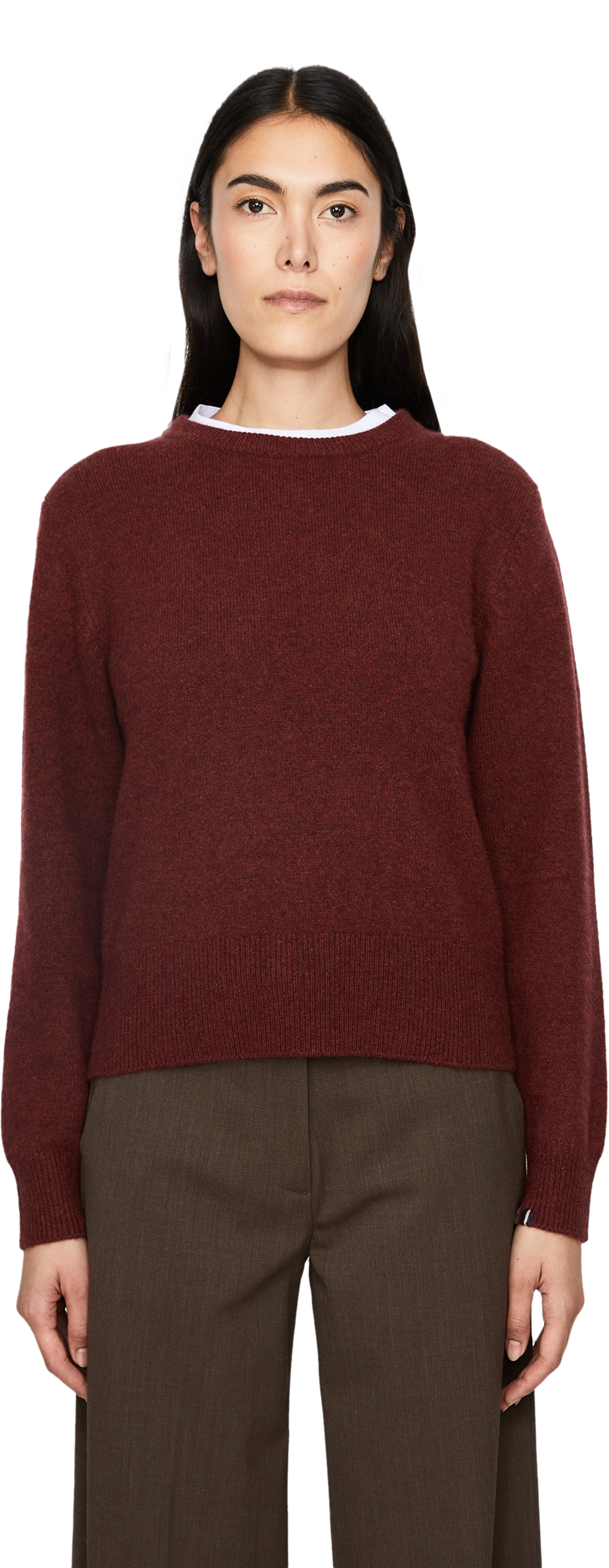 Der Pullover 'n°430 Jeanne' in Rot von extreme cashmere x wurde aus einer Cashmere-Mischung gefertigt und besticht durch die fließende Silhouette. Der Rundhalsausschnitt, die langen Ärmel sowie der Rippstrick am Ärmel und Saum vollenden diesen Klassiker.