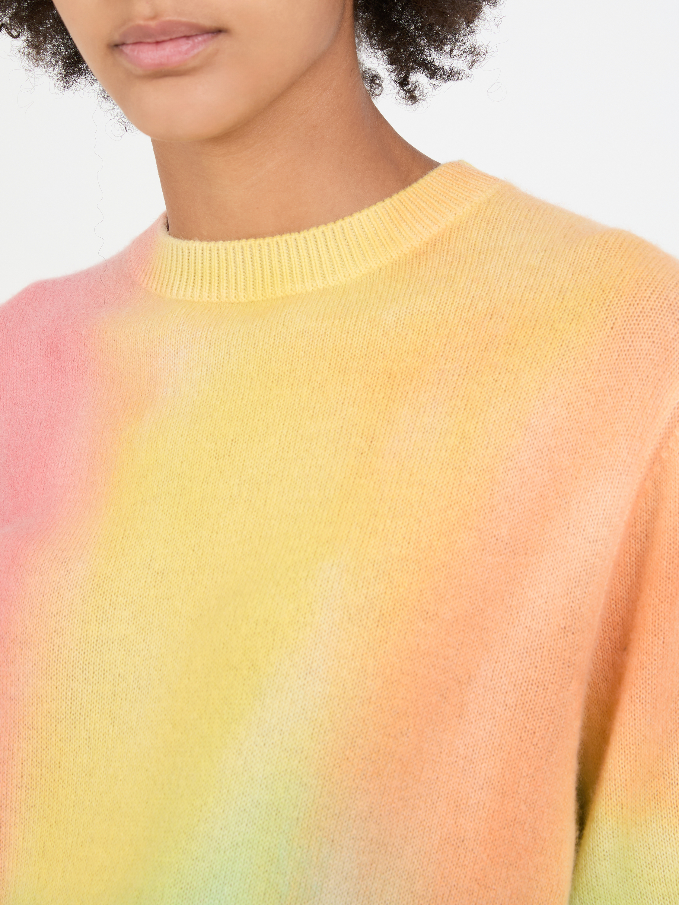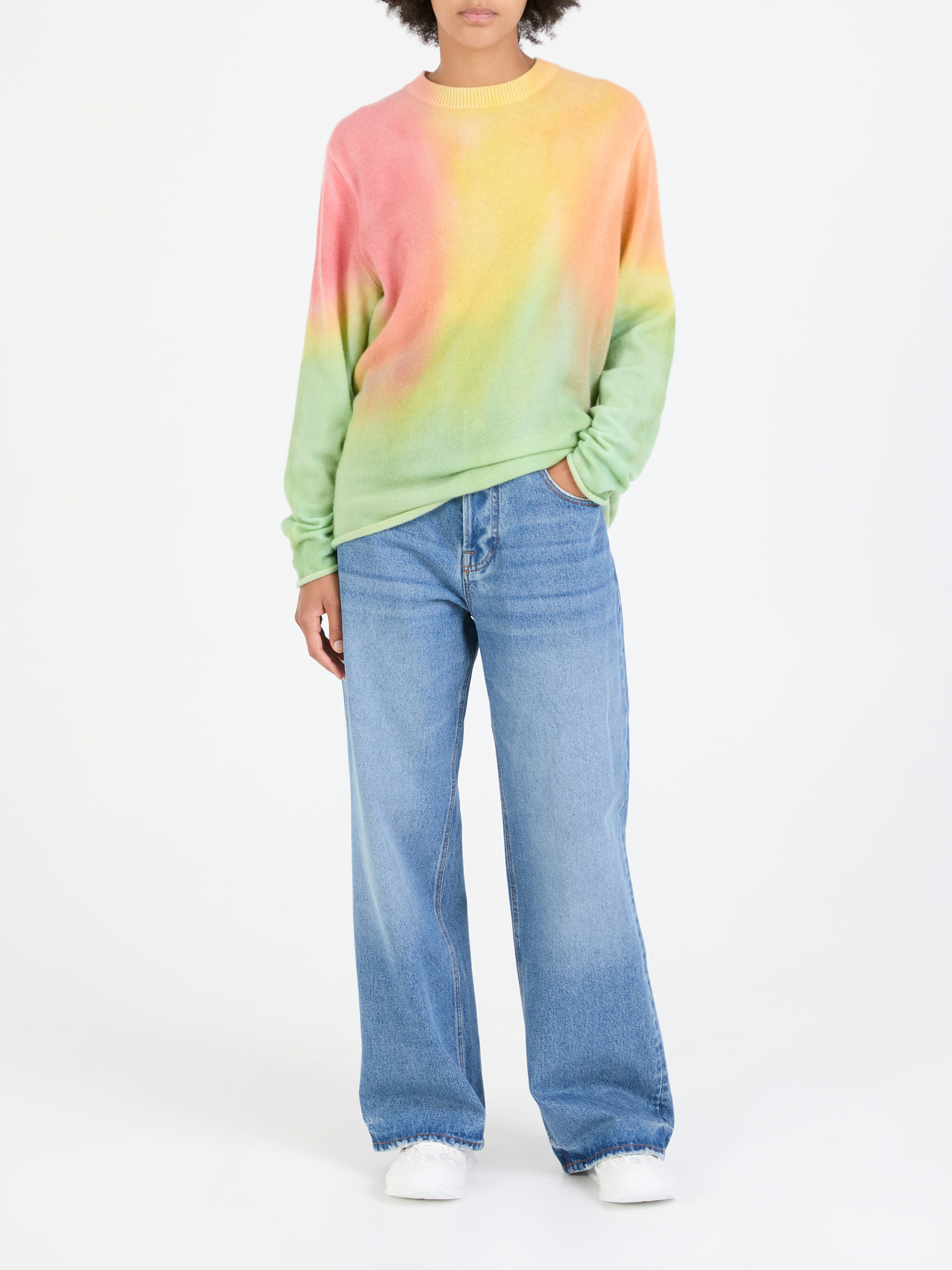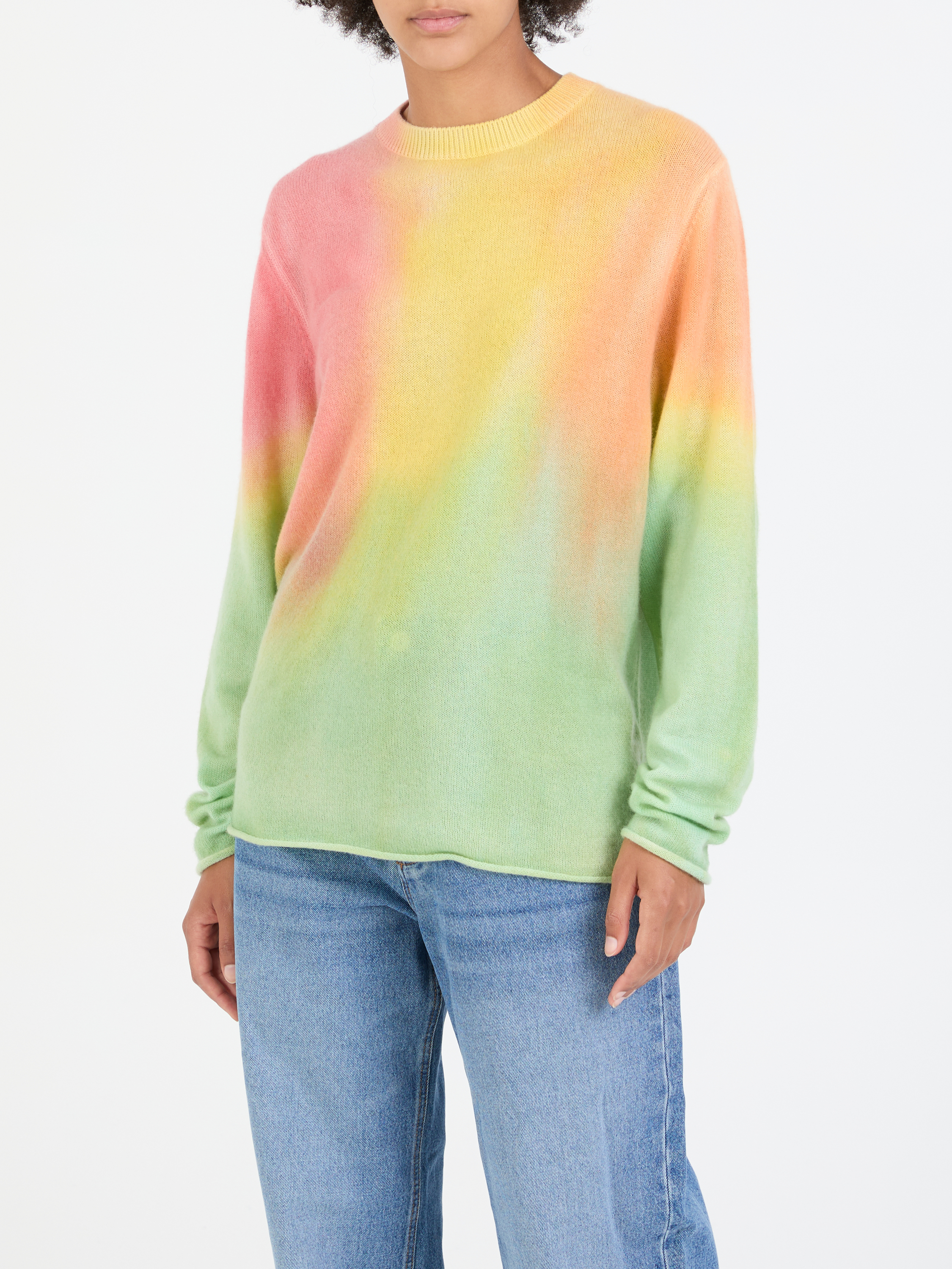 Der Pullover 'Wave Aura' in Multi von The Elder Statesman wurde aus reinem Cashmere gefertigt und besticht durch den sanften Farbverlauf. Der Rundhalsausschnitt, die langen Ärmel und die lockere Passform zeichnen dieses hochwertige Design aus. Ein großes Intarsienmuster am Rücken rundet dieses Design ab.