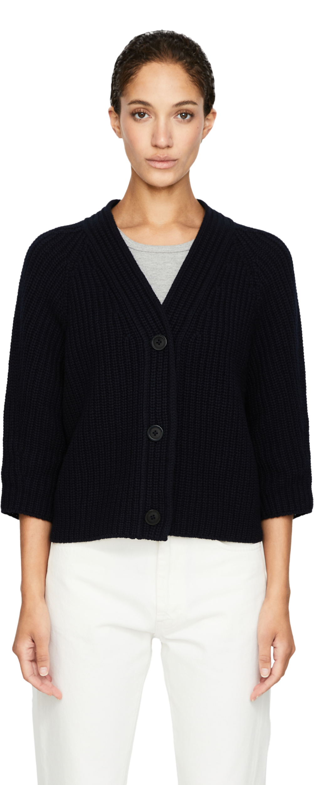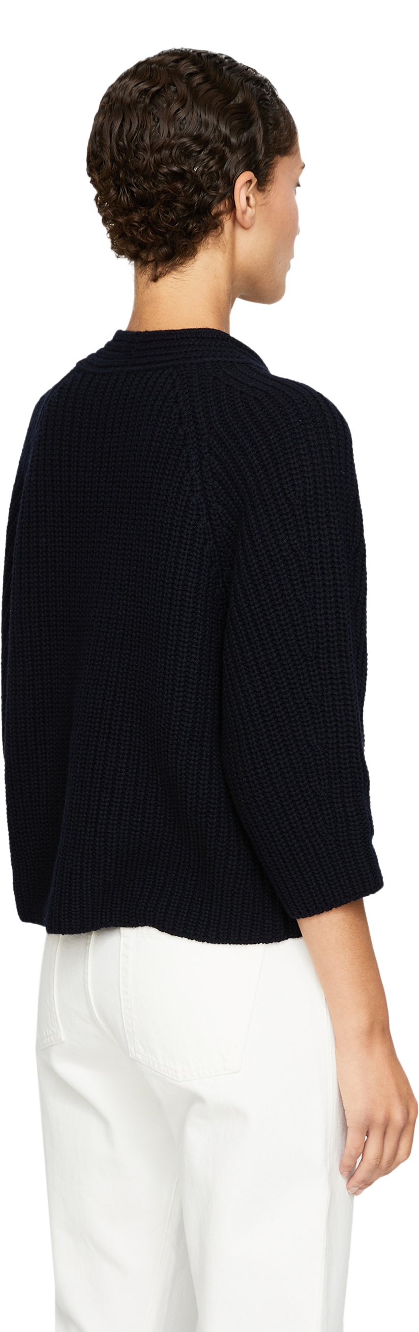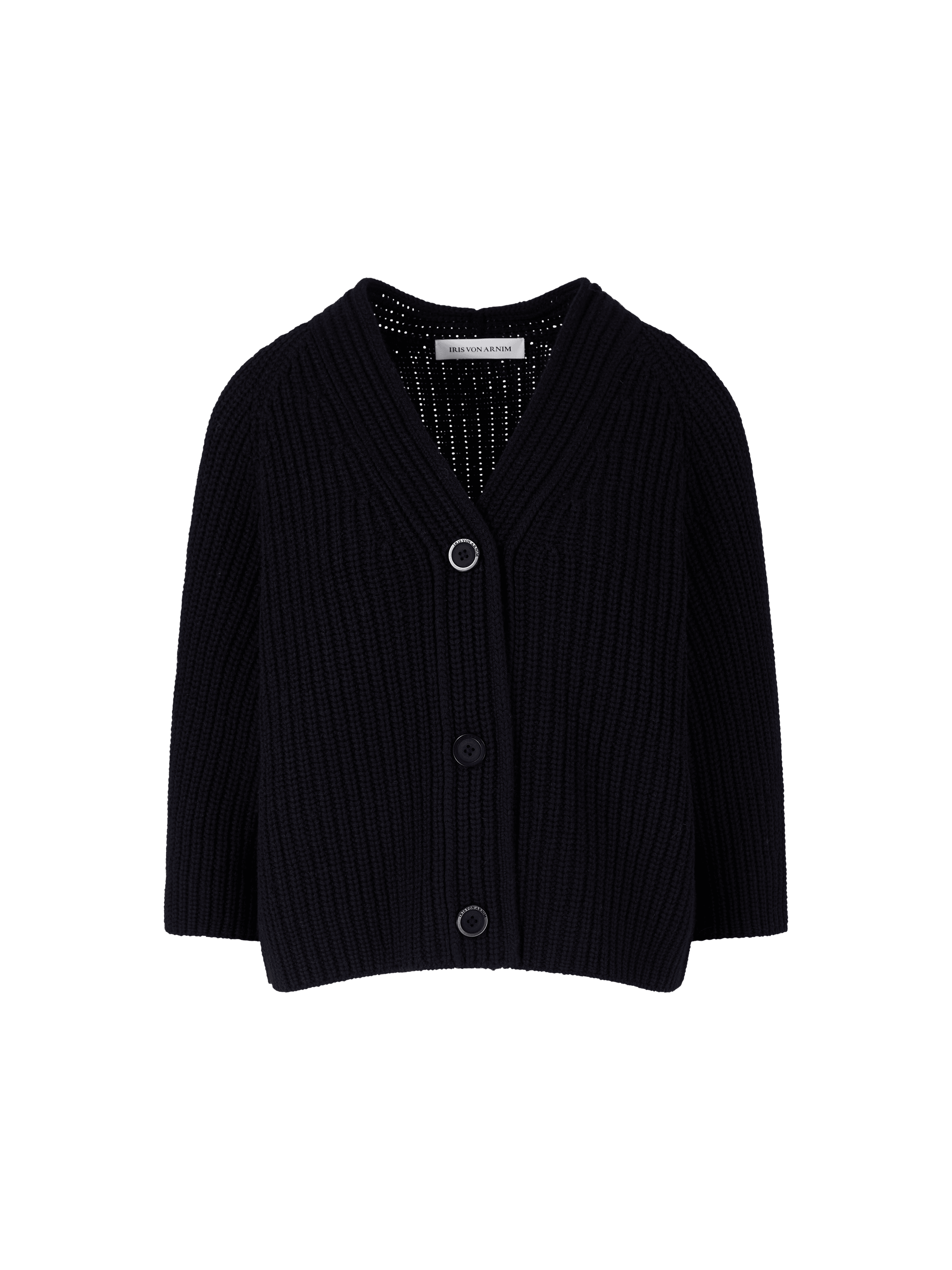 Die Strickjacke 'Fallou Button' in Navy von Iris von Arnim wurde aus reinem Cashmere gefertigt und besticht durch die verkürzte Länge. Der V-Ausschnitt und die plakative Knopfleiste mit Logoprägung zeichnen dieses hochwertige Modell aus.