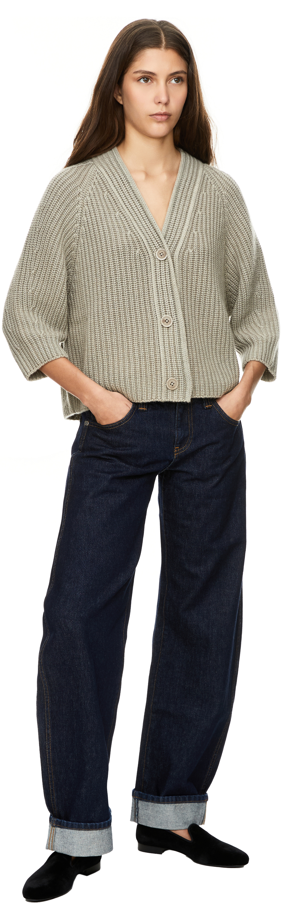 - Strickjacke 'Fallou Button' in Schilf Stonewashed