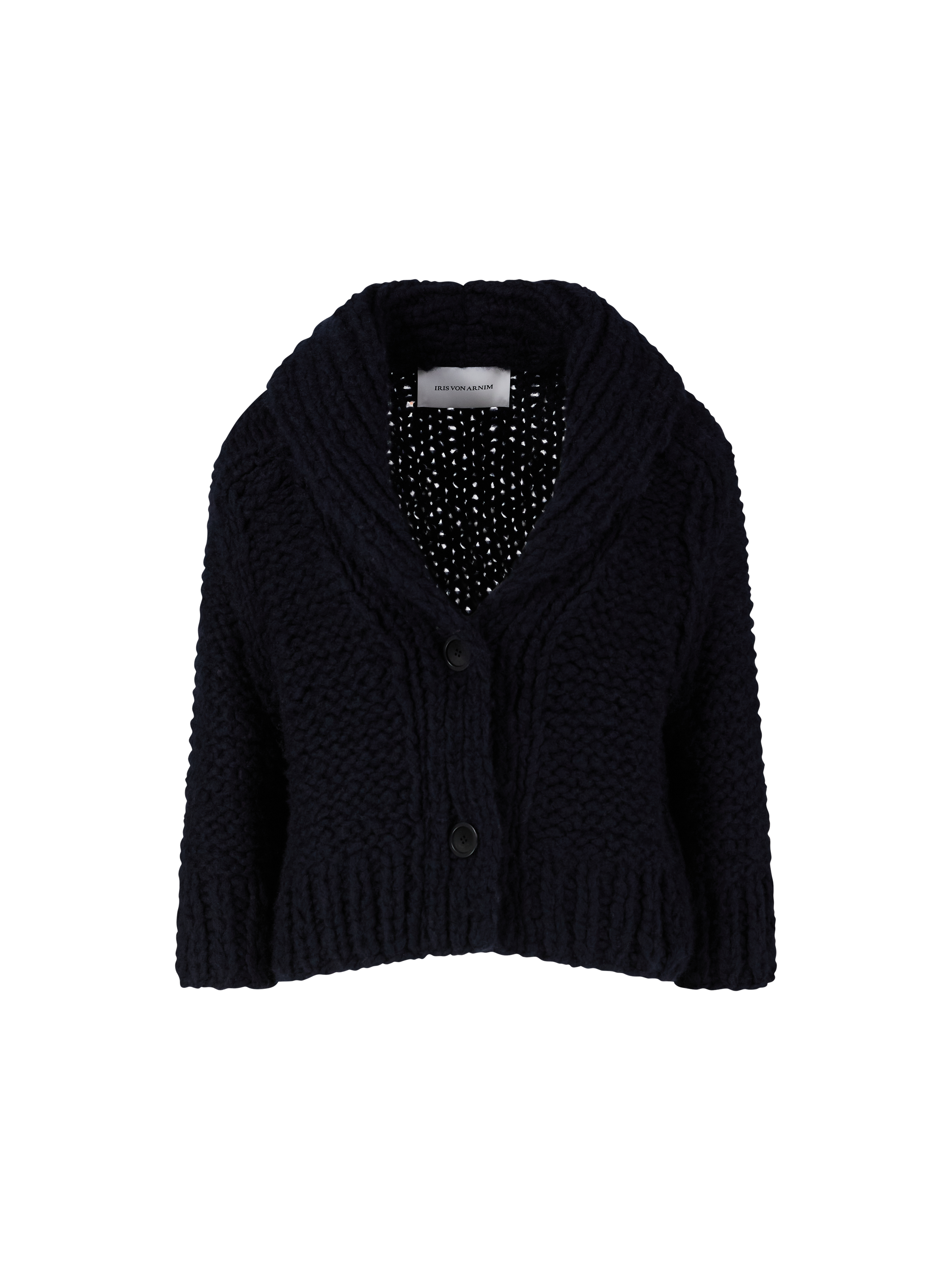 Die Strickjacke 'Jonara Handstrick' in Navy von Iris von Arnim wurde aus hochwertigem Cashmere von Hand gefertigt und besticht durch die besonders weiche Haptik. Sorgfältig und mit viel Liebe zum Detail handgestrickt, verleiht der Grobstrick dem Modell eine charakteristische, individuelle Note. Das Design zeichnet sich durch die lockere Passform und die verkürzte Silhouette aus. Der rückseitige Kragenumschlag setzt dabei einen stilvollen Akzent und rundet den Look harmonisch ab.
