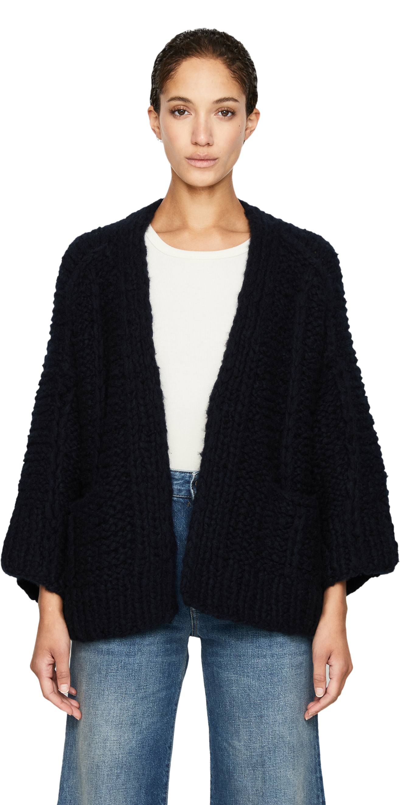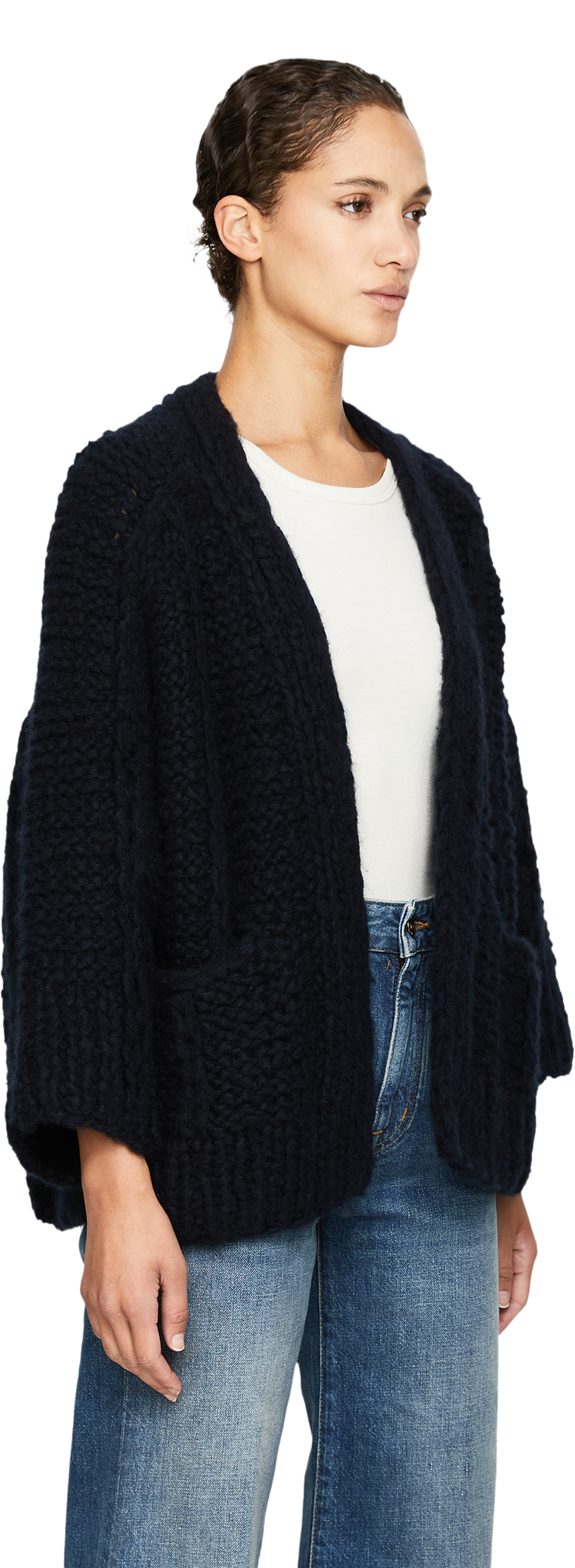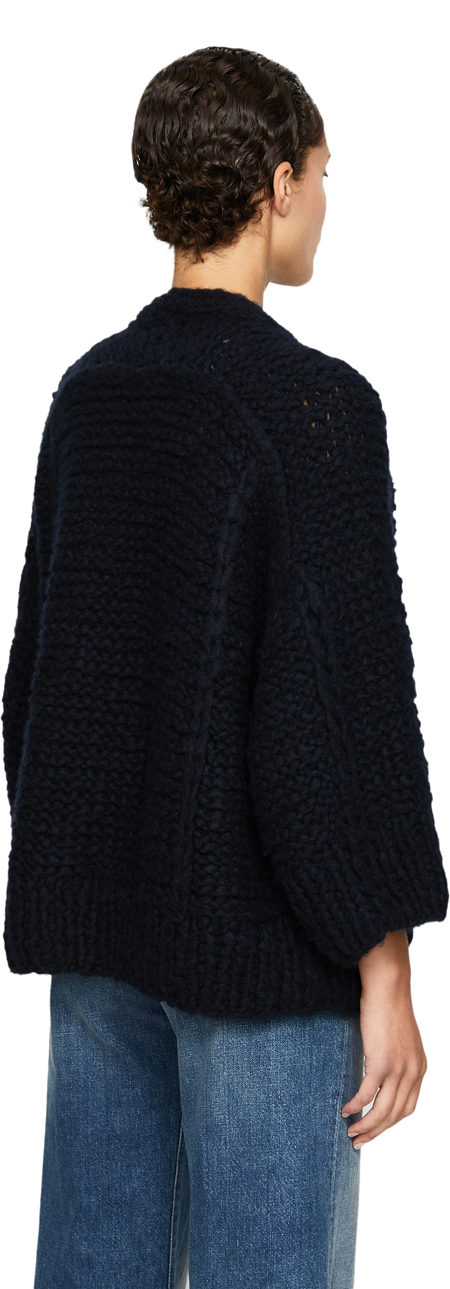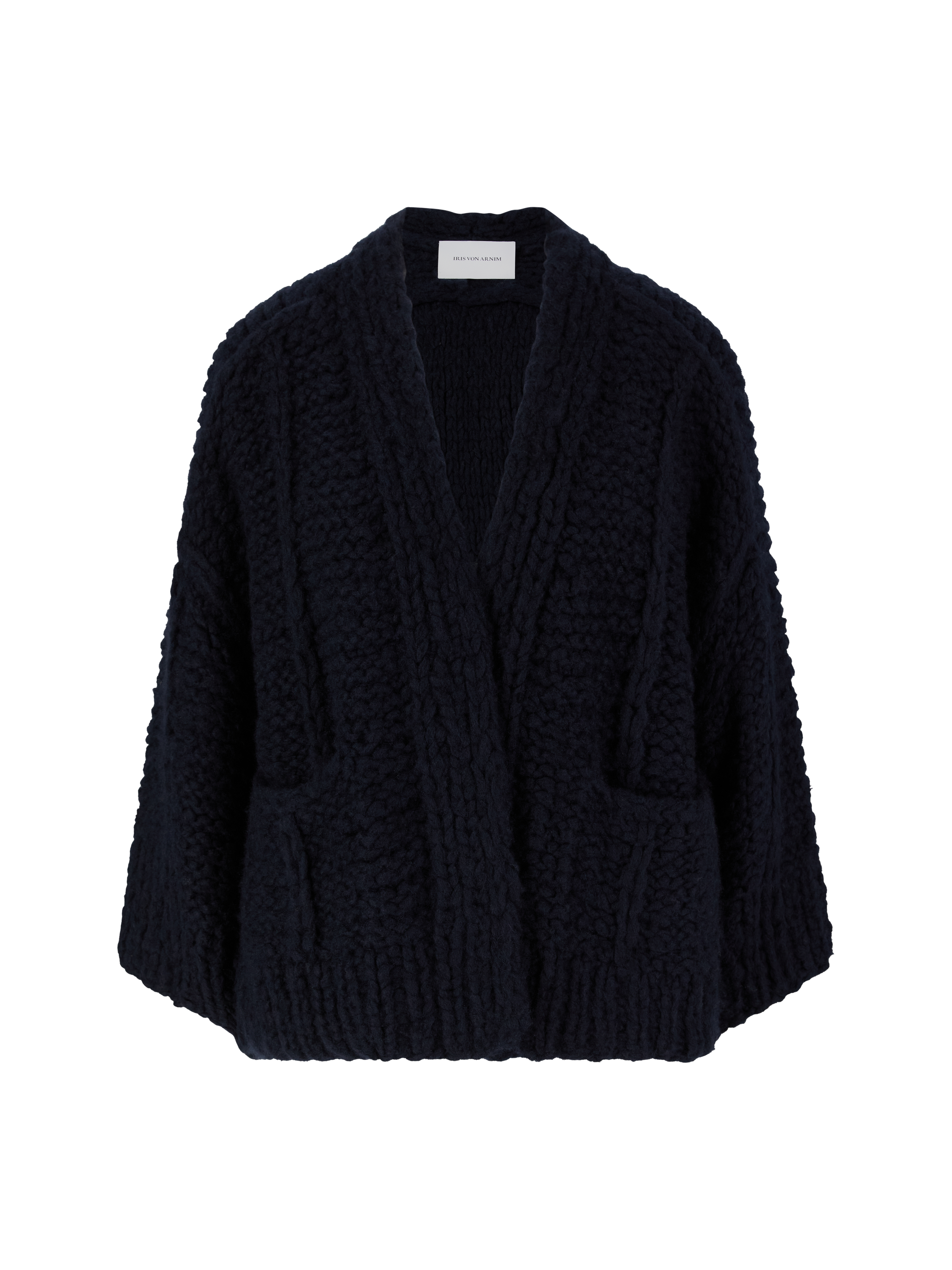 Die Strickjacke 'Junia Handstrick' in Navy von Iris von Arnim wurde aus hochwertigem Cashmere von Hand gefertigt und besticht durch die besonders weiche Haptik. Sorgfältig und mit viel Liebe zum Detail handgestrickt, verleiht der Grobstrick dem Modell eine charakteristische, individuelle Note. Das Design zeichnet sich durch die lockere Passform und die überschnittenen Schultern aus.