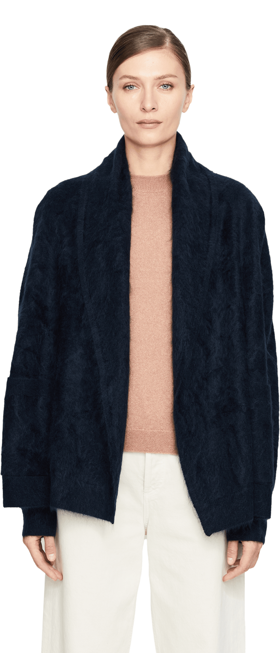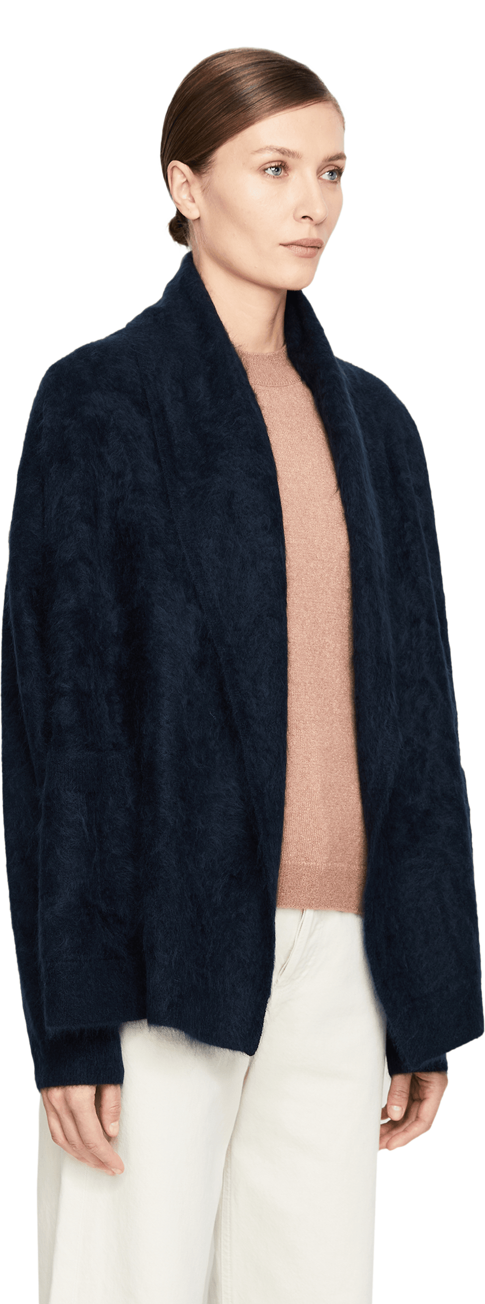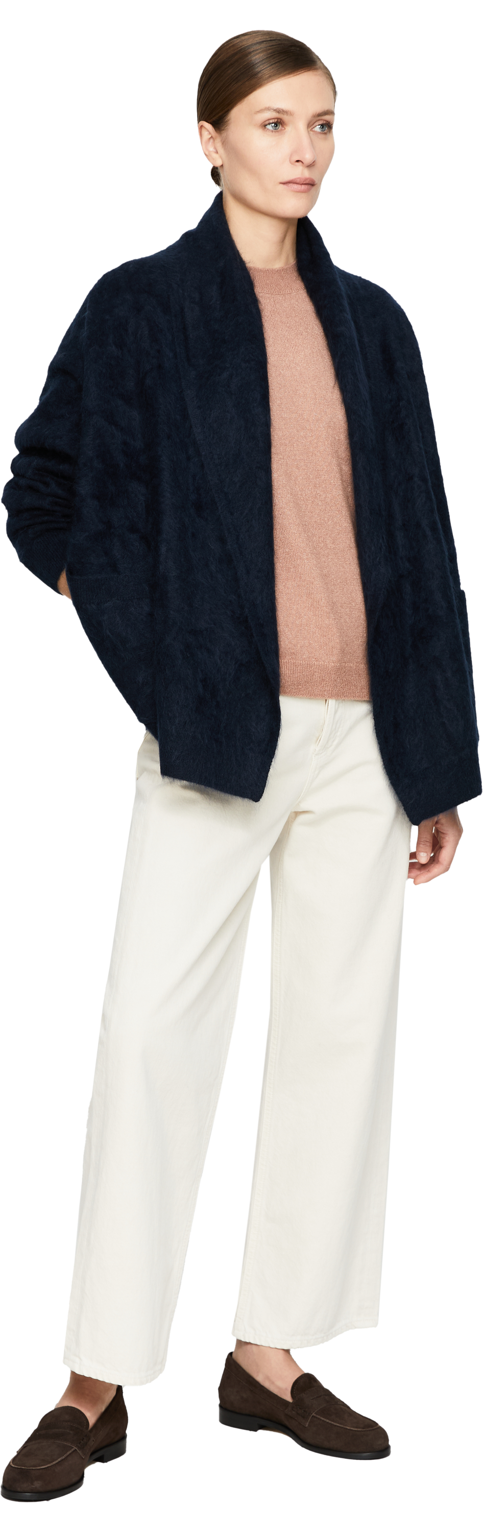 Die Strickjacke 'Kamelia' in Navy von Iris von Arnim wurde aus reinem Cashmere gefertigt und besticht durch die weiche Haptik. Der gebürstete Flachstrick und die zwei aufgesetzten Taschen zeichnen dieses hochwertige Modell aus.