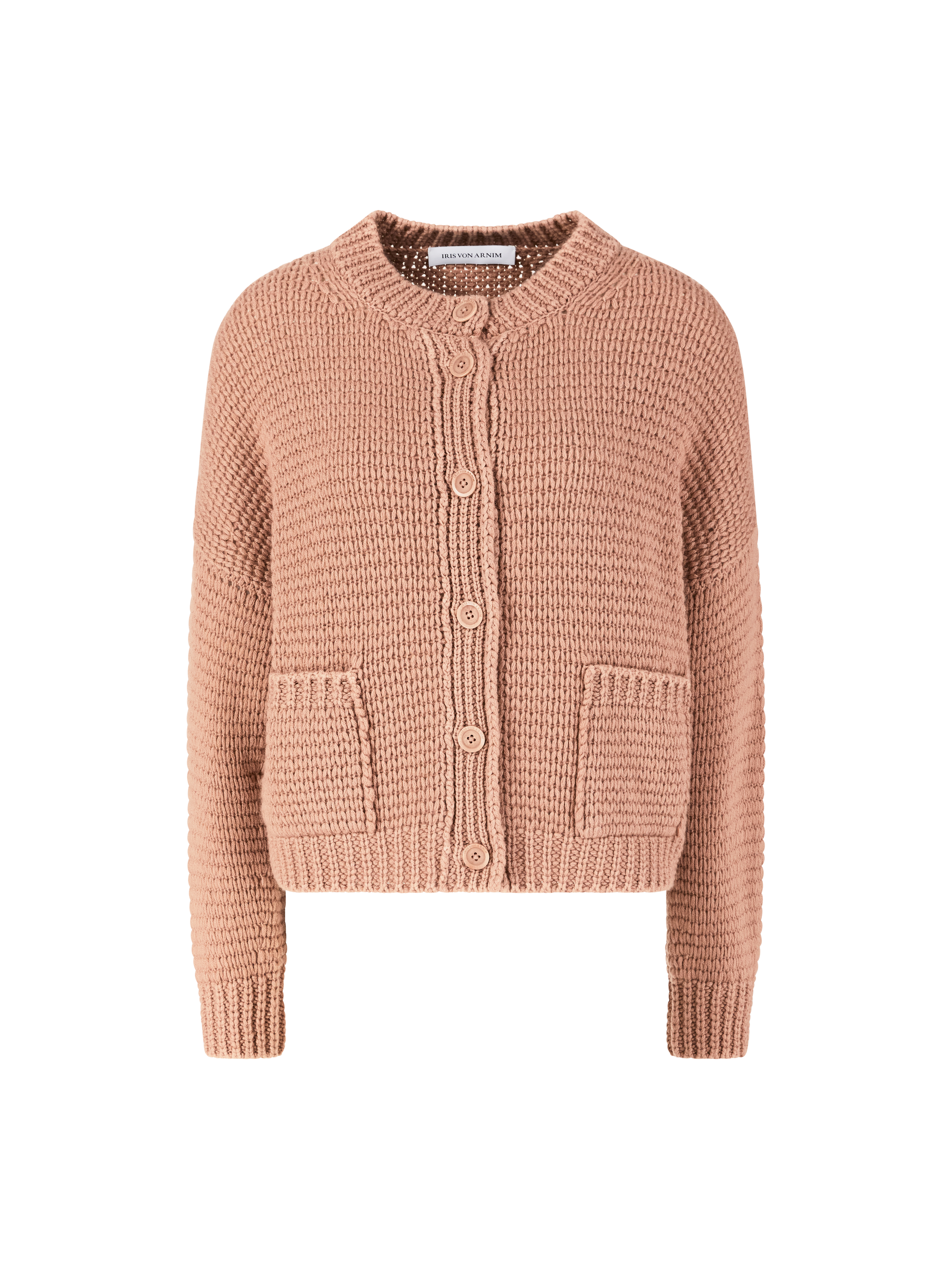 Die Strickjacke 'Marjorie' in Rosenholz Stonewashed von Iris von Arnim wurde aus hochwertigem Cashmere gefertigt und besticht durch die lässige Passform. Der Rundhalsausschnitt, die aufgesetzten Taschen, die Logo-Prägung auf den Knöpfen und die Hornknöpfe zeichnen dieses hochwertige Modell aus.