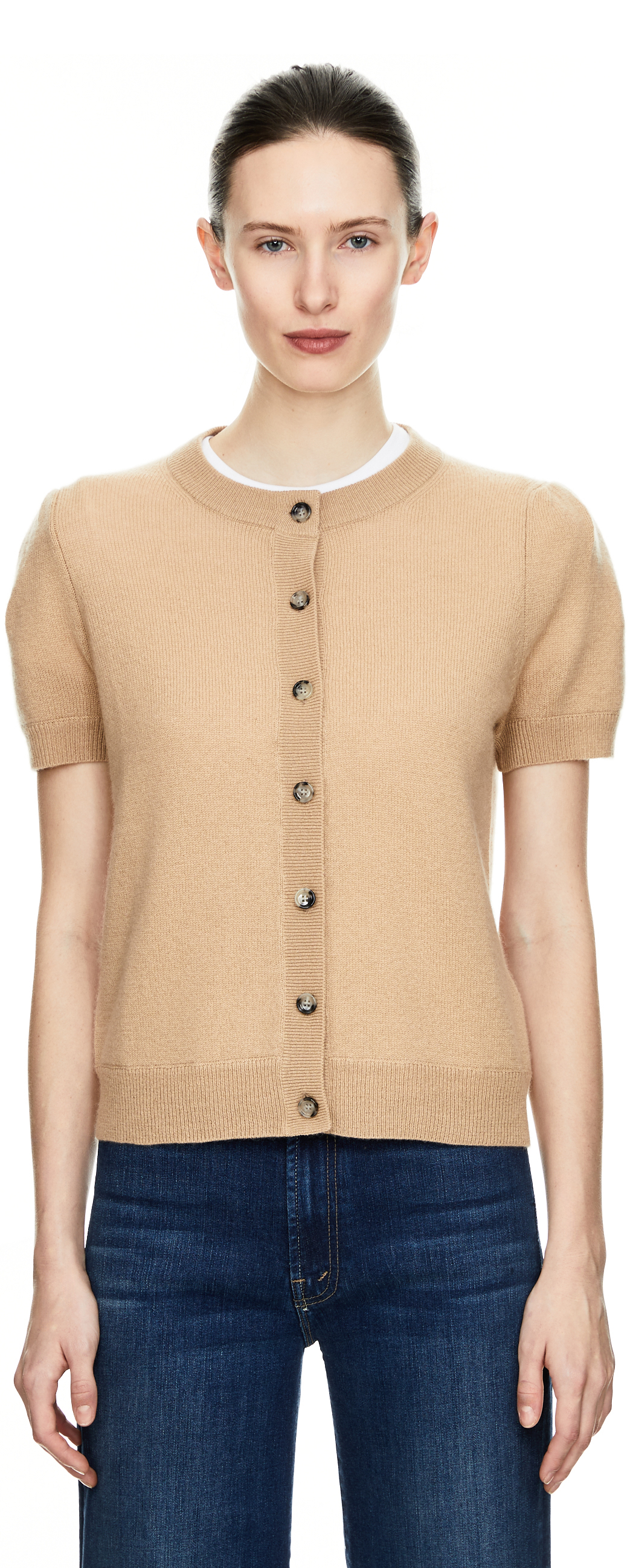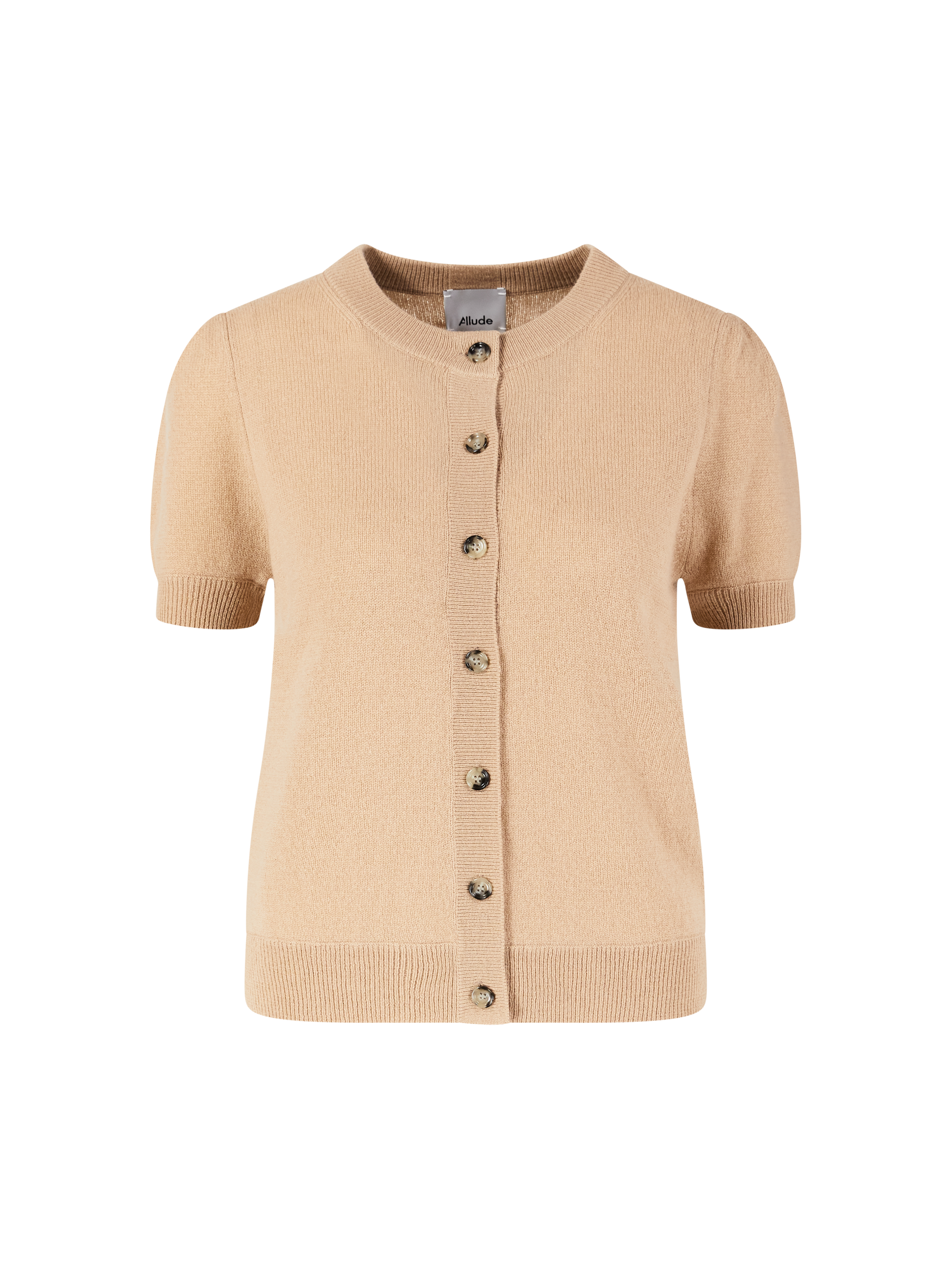 Diese Strickjacke in Beige von Allude wurde aus reinem Cashmere gefertigt und besticht durch das klassische Design. Der Rundhalsausschnitt, die Kombination aus Ripp- und Feinstrick sowie die Puffärmel zeichnen dieses Modell aus. Die einreihige Knopfleiste, die 3/4-Ärmel und die weiche Haptik runden dieses Design stilvoll ab.