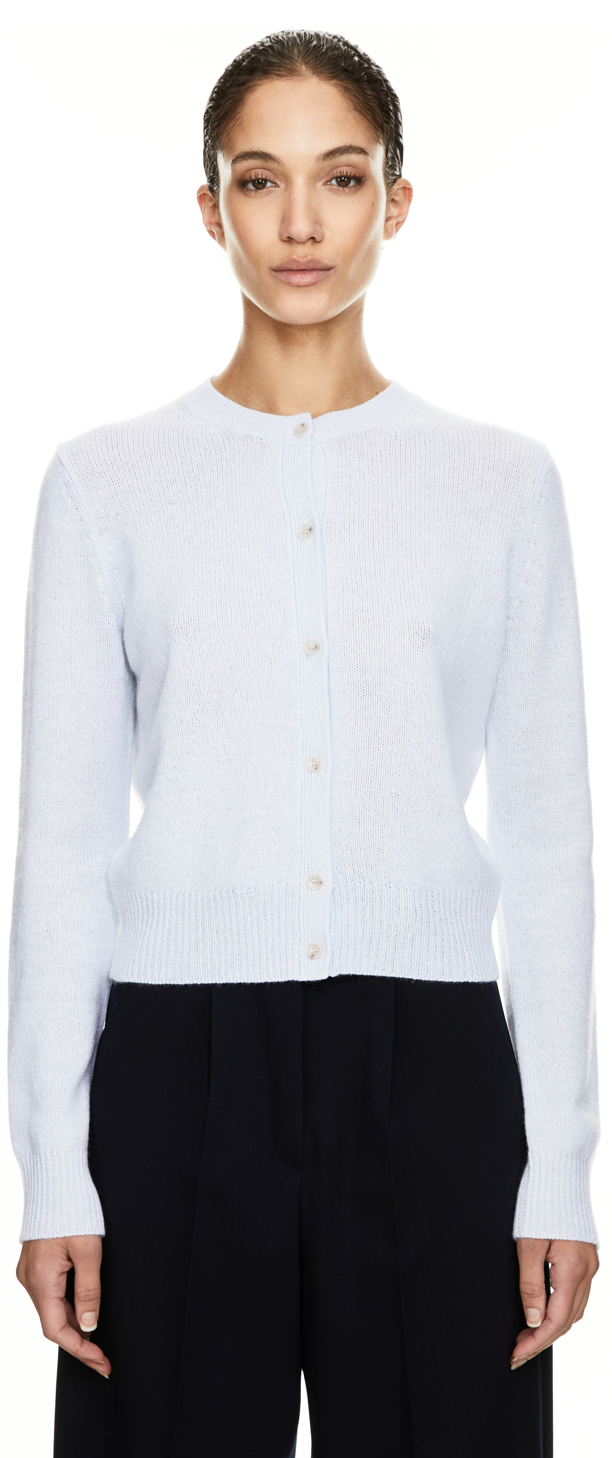 Diese Strickjacke in Hellblau von Allude wurde aus reinem Cashmere gefertigt und besticht durch das edles Mouliné-Garn, das dem Modell eine dezente Struktur und besondere Tiefe verleiht. Der klassische Rundhalsausschnitt, die langen Ärmel sowie die fein gearbeitetem Rippstrickabschlüsse an Ärmeln und Saum vollenden das zeitlose Design und machen die Strickjacke zu einem vielseitigen Begleiter für jede Garderobe.