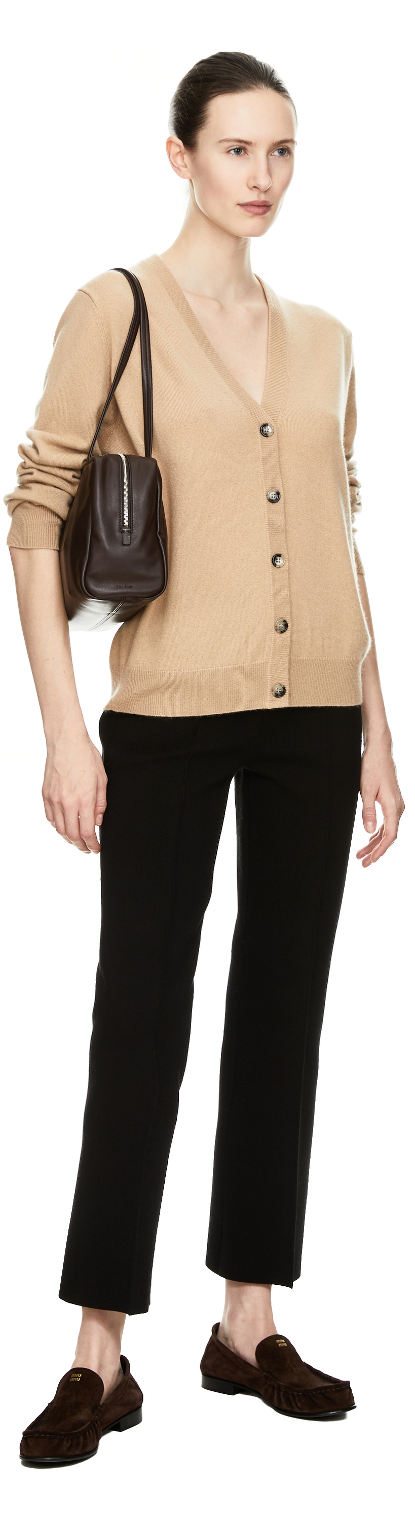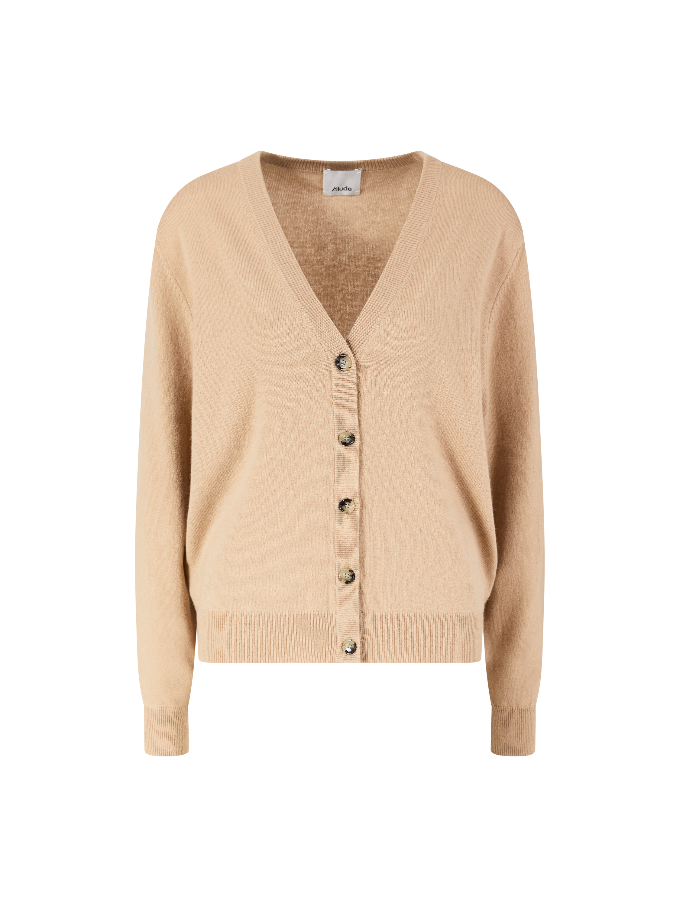 Diese Strickjacke in Beige von Allude wurde aus feinstem Cashmere gefertigt und besticht durch die klassische Passform. Der V-Ausschnitt und die Kombination aus Ripp- und Feinstrick zeichnen dieses Modell aus. Die einreihige Knopfleiste und die weiche Haptik runden dieses Design stilvoll ab.