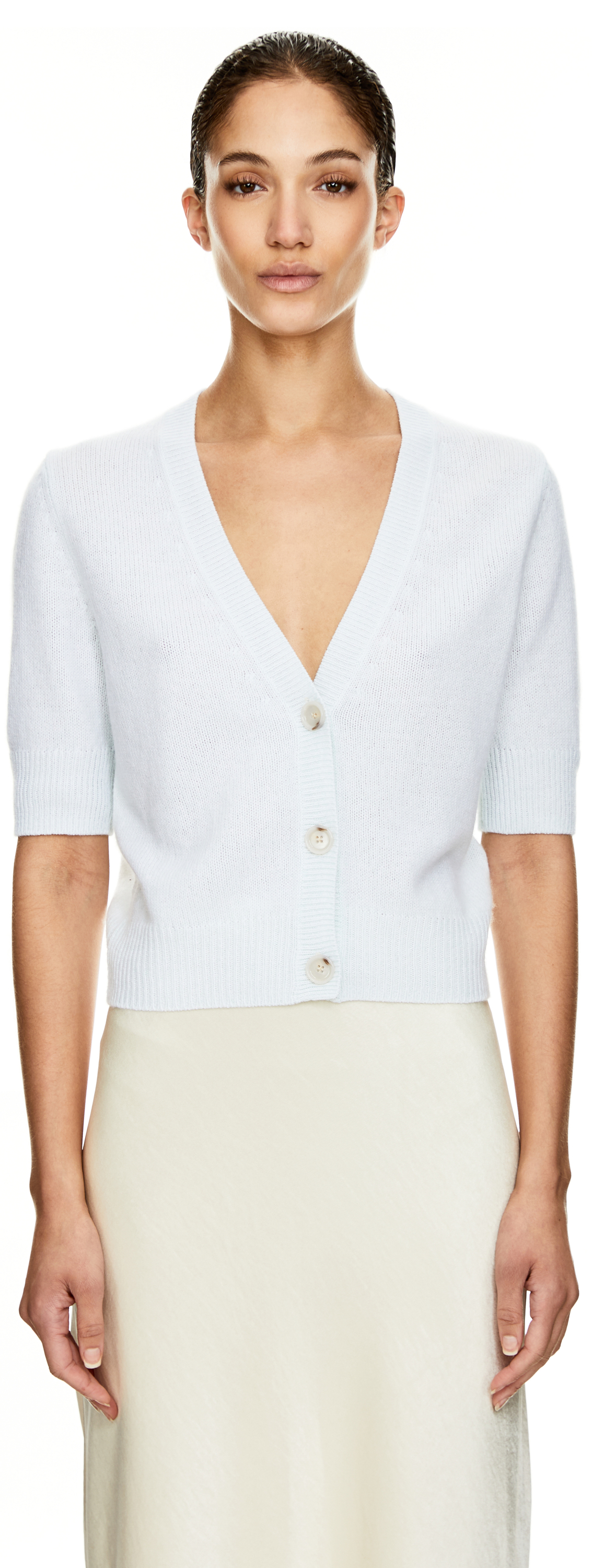 Diese Strickjacke in Hellgrün von Allude wurde aus reinem Cashmere gefertigt und besticht durch die weite Silhouette. Der tiefe V-Ausschnitt, die markanten Knöpfe und die 3/4 Ärmel zeichnen dieses Modell aus. Die weiche Haptik rundet dieses Design stilvoll ab.