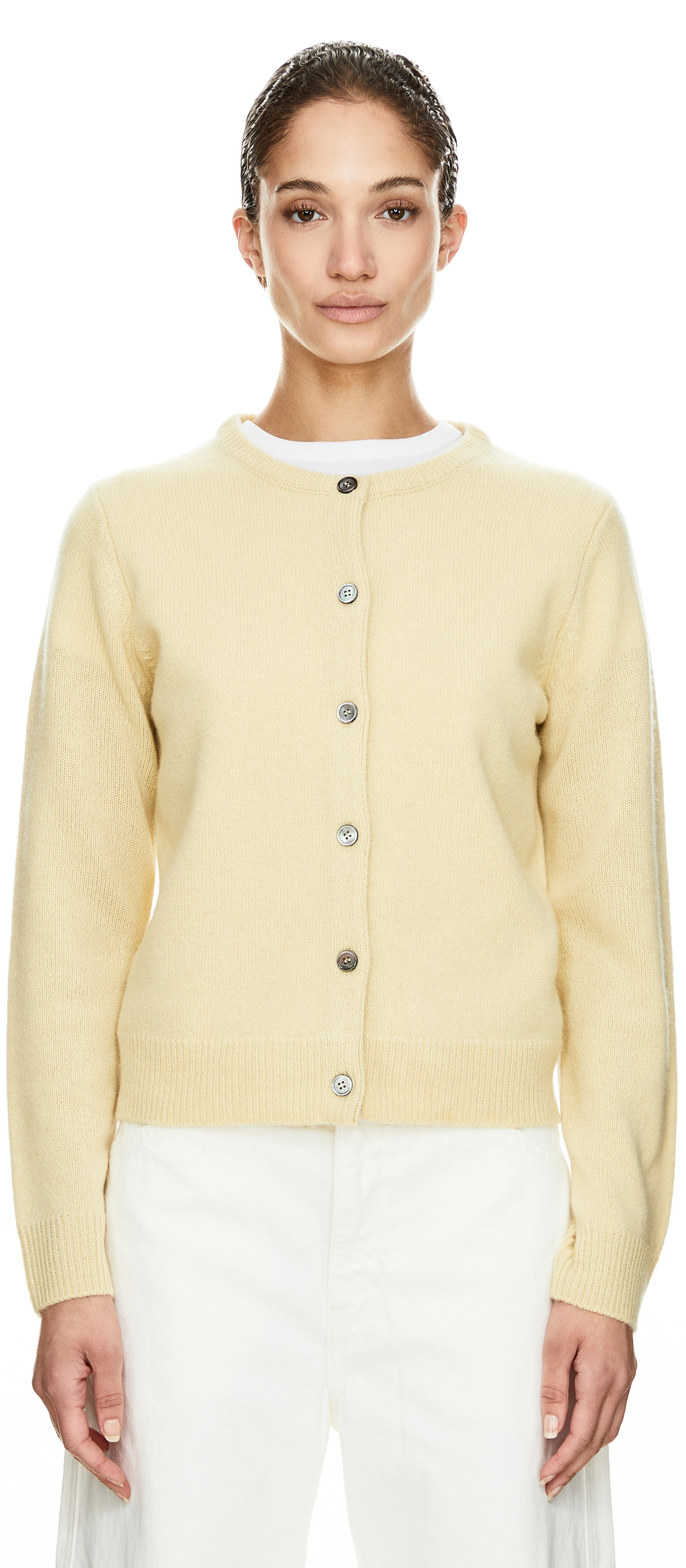 Diese Strickjacke in Lemondrop von UNGER Collection wurde aus hochwertigem Cashmere gefertigt und besticht durch die weiche Haptik, die langen Ärmel und die durchgehenden Perlmuttknöpfe. Der verkürzte Schnitt verleiht dem Design einen modernen Touch und macht das Modell zu einer hervorragenden Ergänzung für hoch geschnittene Hosen und Röcke.