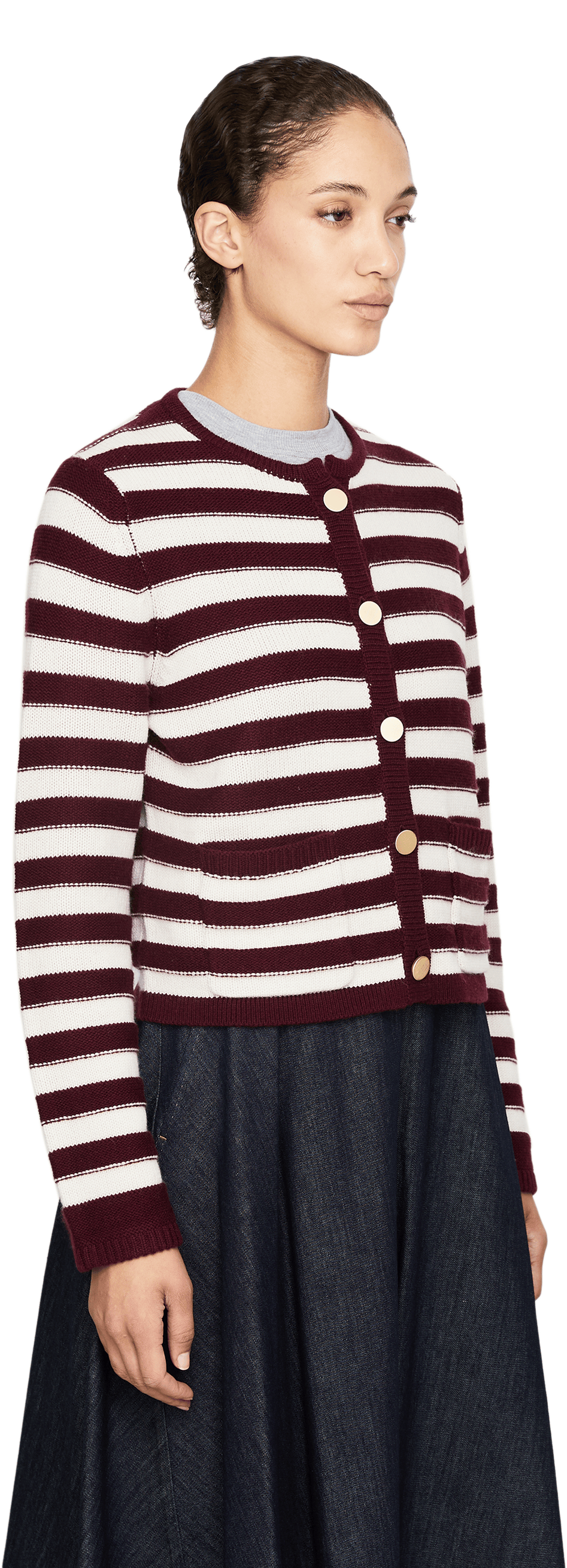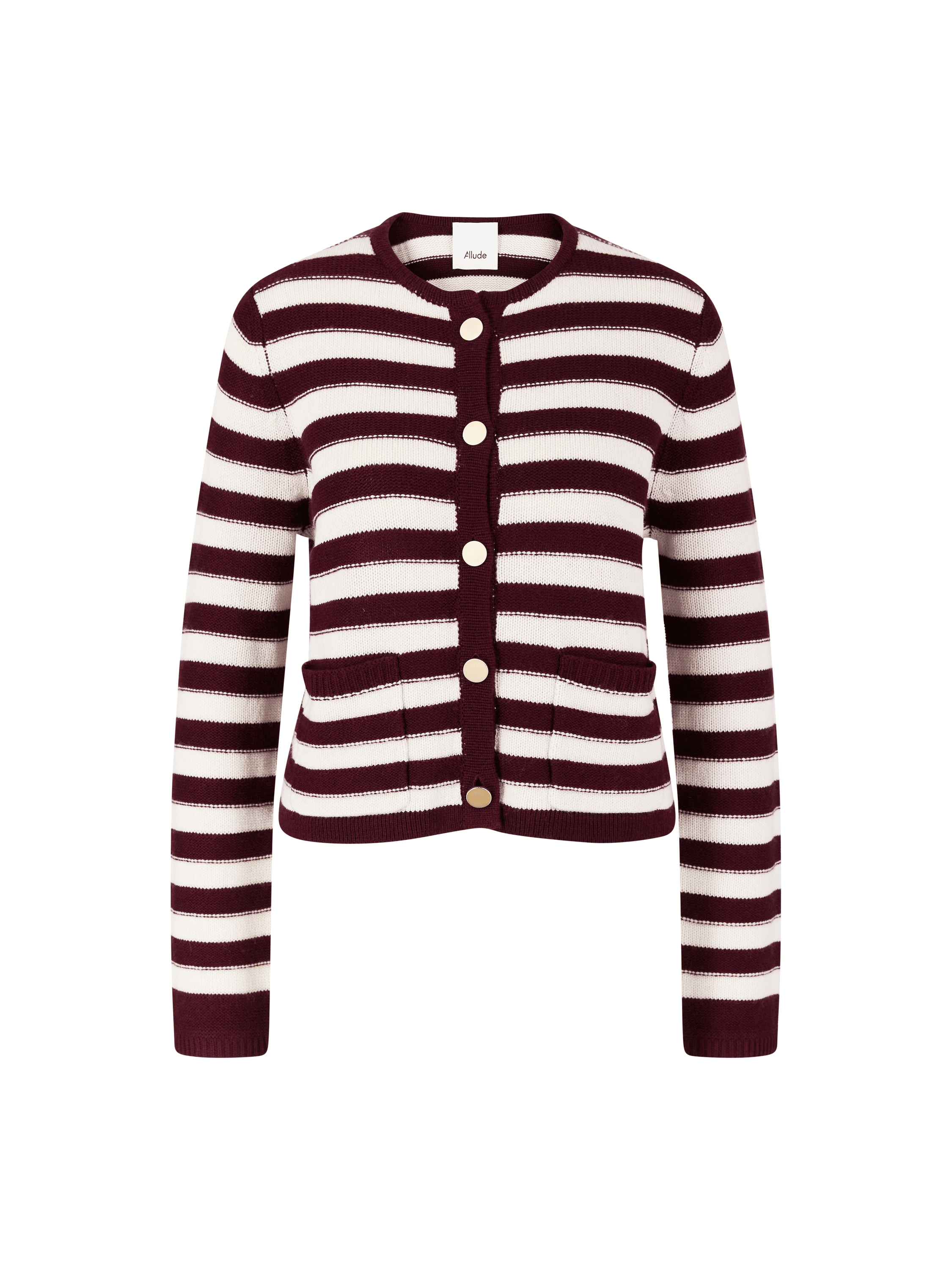 Diese Strickjacke in Rot von Allude wurde aus einer Woll-Cashmere-Mischung gefertigt und besticht durch die verkürzte Silhouette. Der Rundhalsausschnitt, die einreihige Knopfleiste mit goldfarbenen Knöpfen und die aufgesetzten Taschen runden dieses Design stilvoll ab.